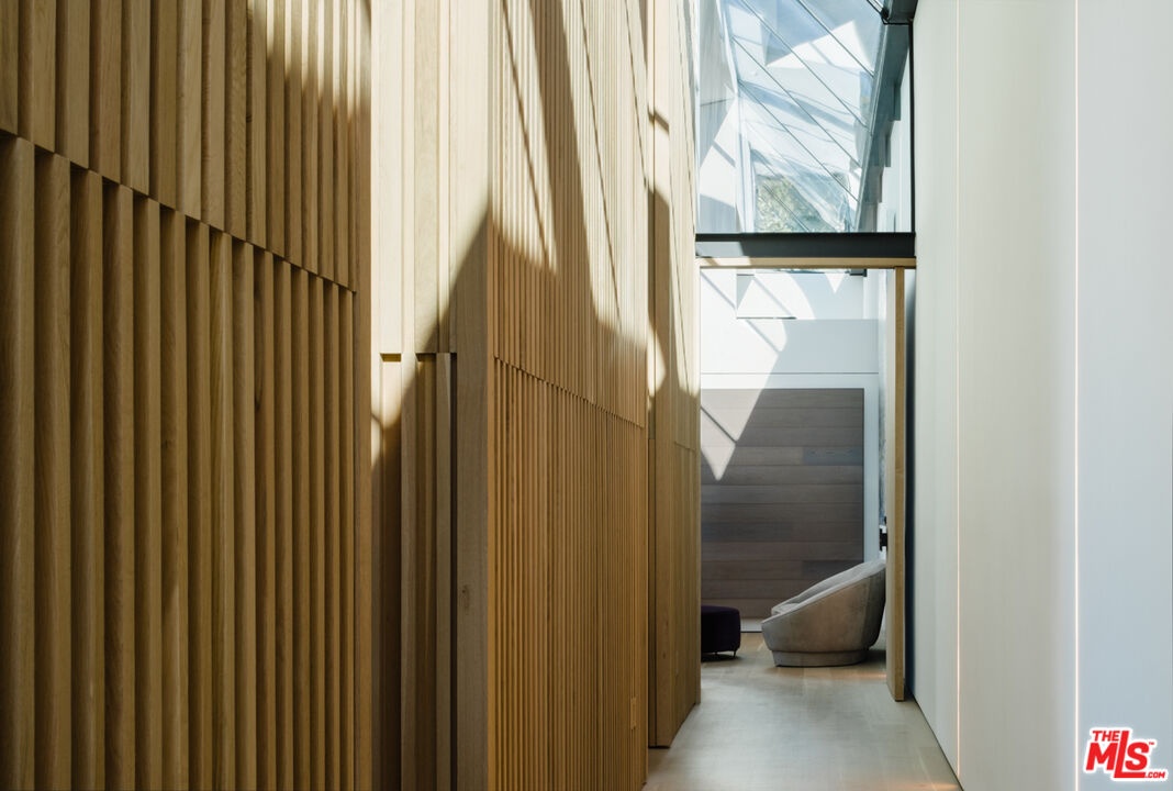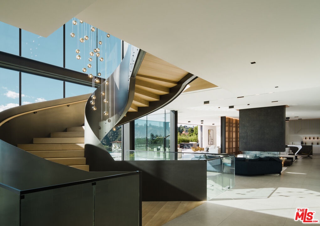 Step inside Horizon Estate, a masterclass in contemporary luxury, privacy, and architectural refinement. Designed with a seamless indoor outdoor philosophy, the residence is defined by clean lines, soaring volumes, and walls of glass that frame verdant canyon views while flooding the interiors with natural light. At the heart of the home, a breathtaking curved floating staircase serves as both functional art and architectural center piece, crowned by a cascading custom chandelier. The interiors unfold with a serene sophistication white oak wood floors, bespoke Italian porcelain tile finishes, and curated materials create an atmosphere of understated elegance. Living and entertaining spaces flow effortlessly with a top of the line kitchen and chef's kitchen by Poliform and Gaggenau, a state of the art bar with custom Corian backdrop anchored by a dramatic glass-enclosed wine cellar and expansive lounges that open directly to the grounds. The home theater is a love letter to the artistry of sound and picture with an immersive experience as you host your screenings. A spa-inspired primary suite offers a private sanctuary, complete with two sculptural soaking tubs, refined wood detailing, ample walk-in closets and tranquil garden outlooks. Outdoors, the estate transforms into a private resort. A striking infinity-edge pool and spa appears to float above the lush landscape, offering breathtaking canyon views. Thoughtfully designed terraces provide the perfect setting for both intimate relaxation and grand-scale entertaining.Horizon Estate is not just a residence; it is a statement of lifestyle a rare Bel Air offering that blends cutting-edge design, warmth, and timeless sophistication in one of Los Angeles' most prestigious enclaves.