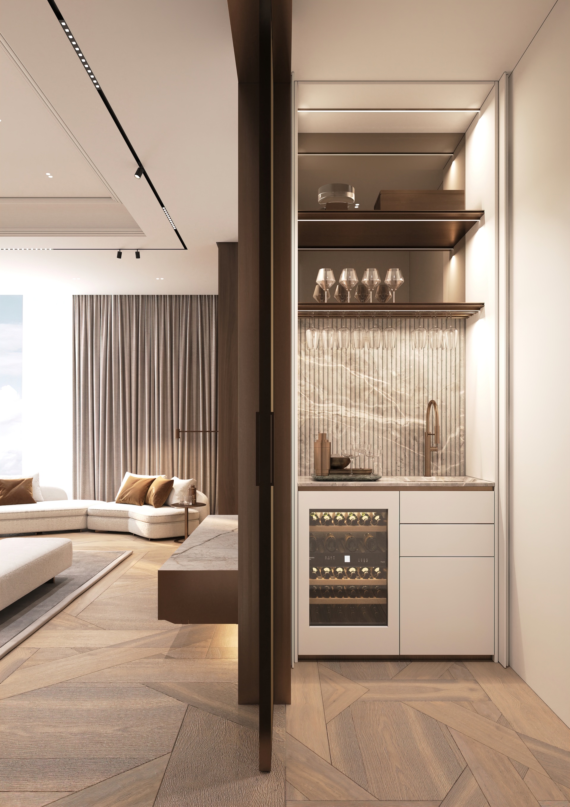The development comprises a limited collection of just 38 residences, ranging from elegantly proportioned two- and three-bedroom apartments through to expansive penthouses and landmark sky palaces. Each residence is thoughtfully designed to maximise light, space, and views, with floor-to-ceiling glazing, generous terraces, bespoke cabinetry, premium finishes, and advanced smart home systems forming a consistent hallmark throughout the collection.