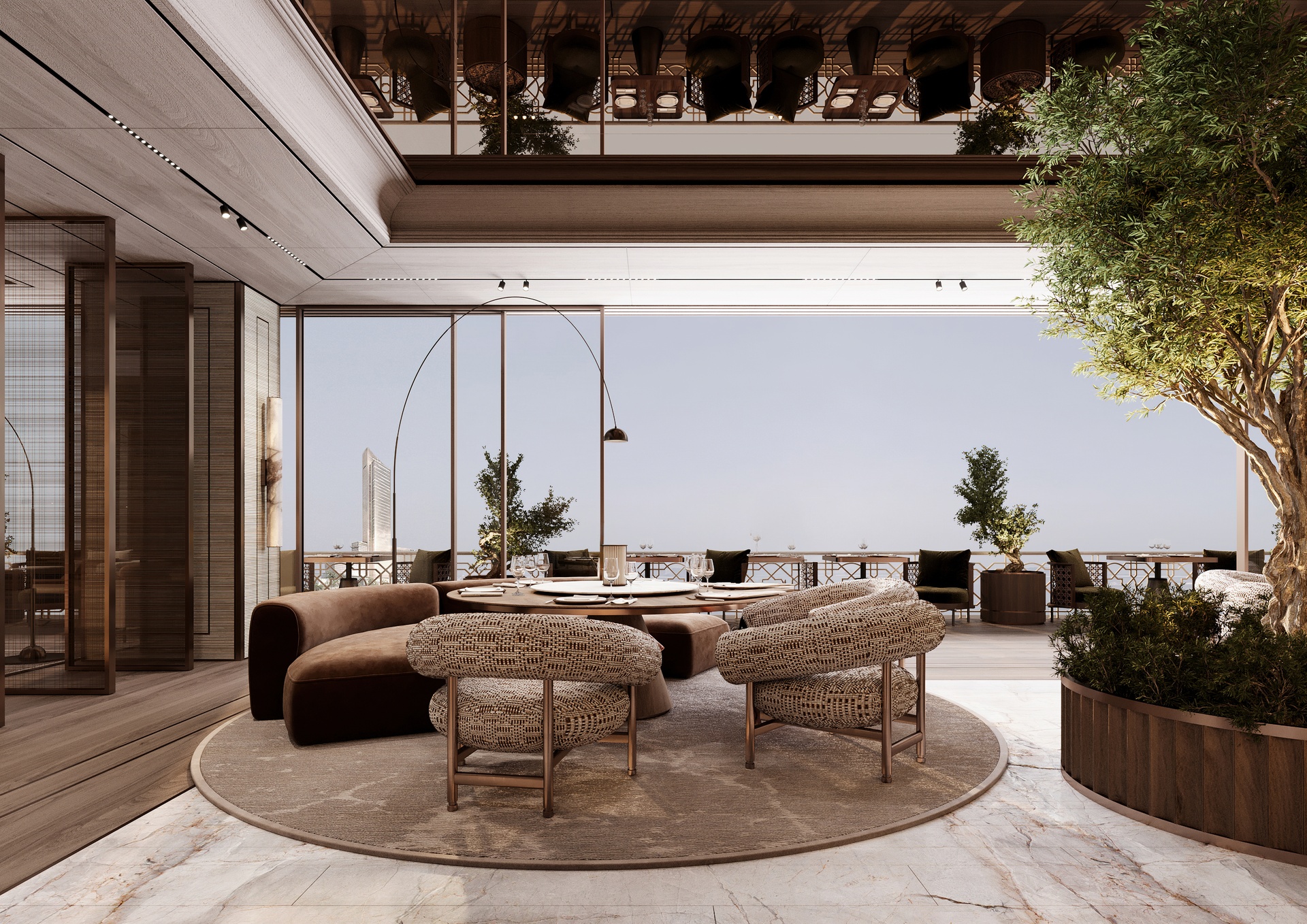 At the pinnacle of the development sit a small number of exceptional penthouse and sky palace residences, offering panoramic 360-degree views across the Arabian Gulf, Marjan Island, and the Al Hamra Golf Club. These trophy homes set the architectural and experiential benchmark for the entire project, while every residence benefits from the same level of craftsmanship and access to Waldorf Astoria’s legendary service standards.