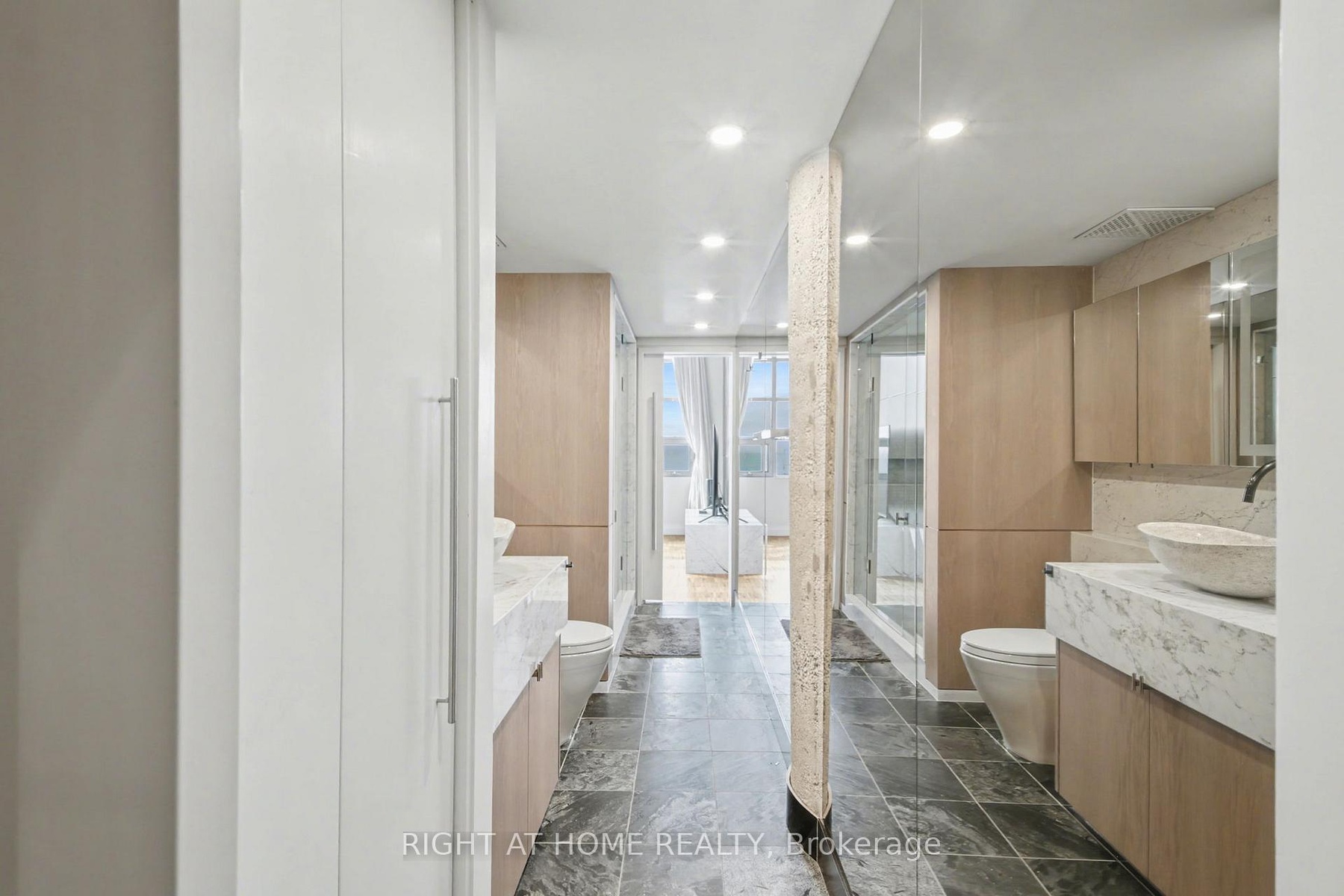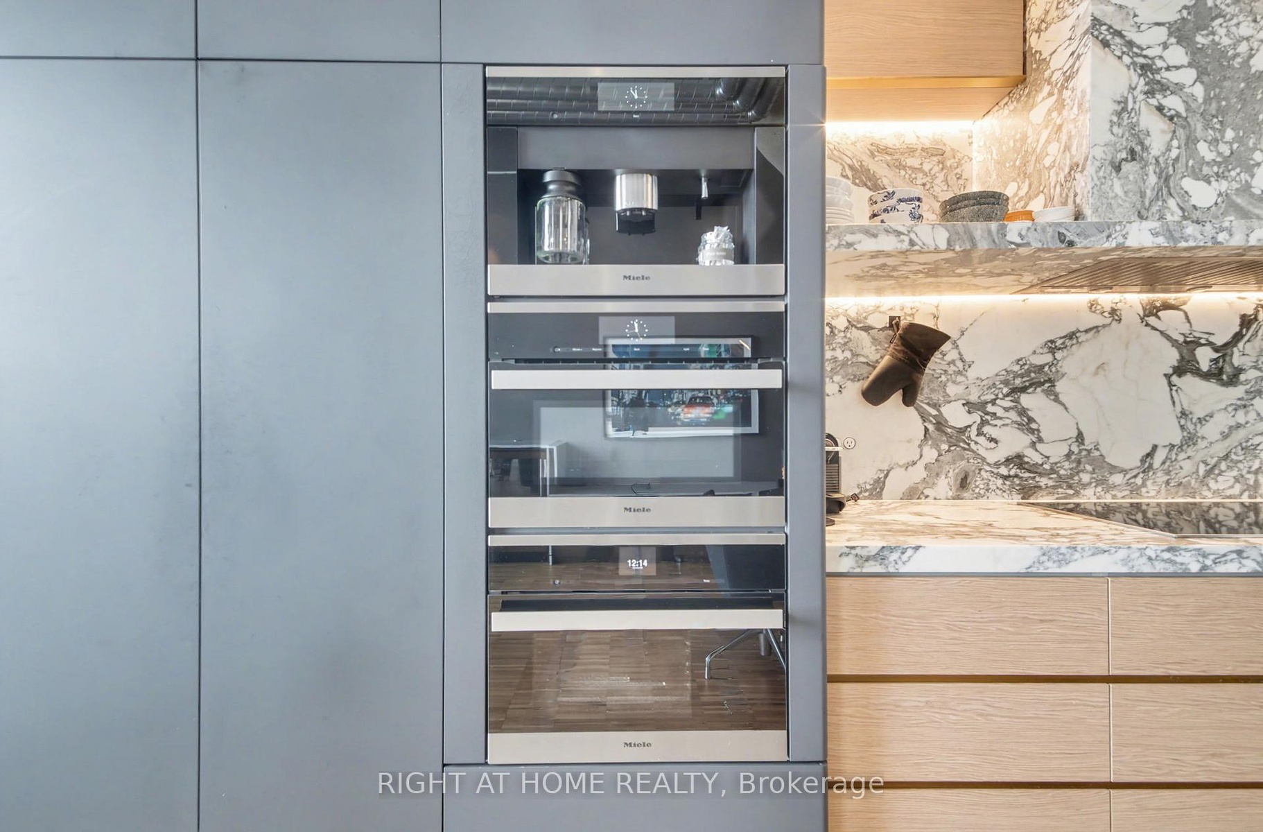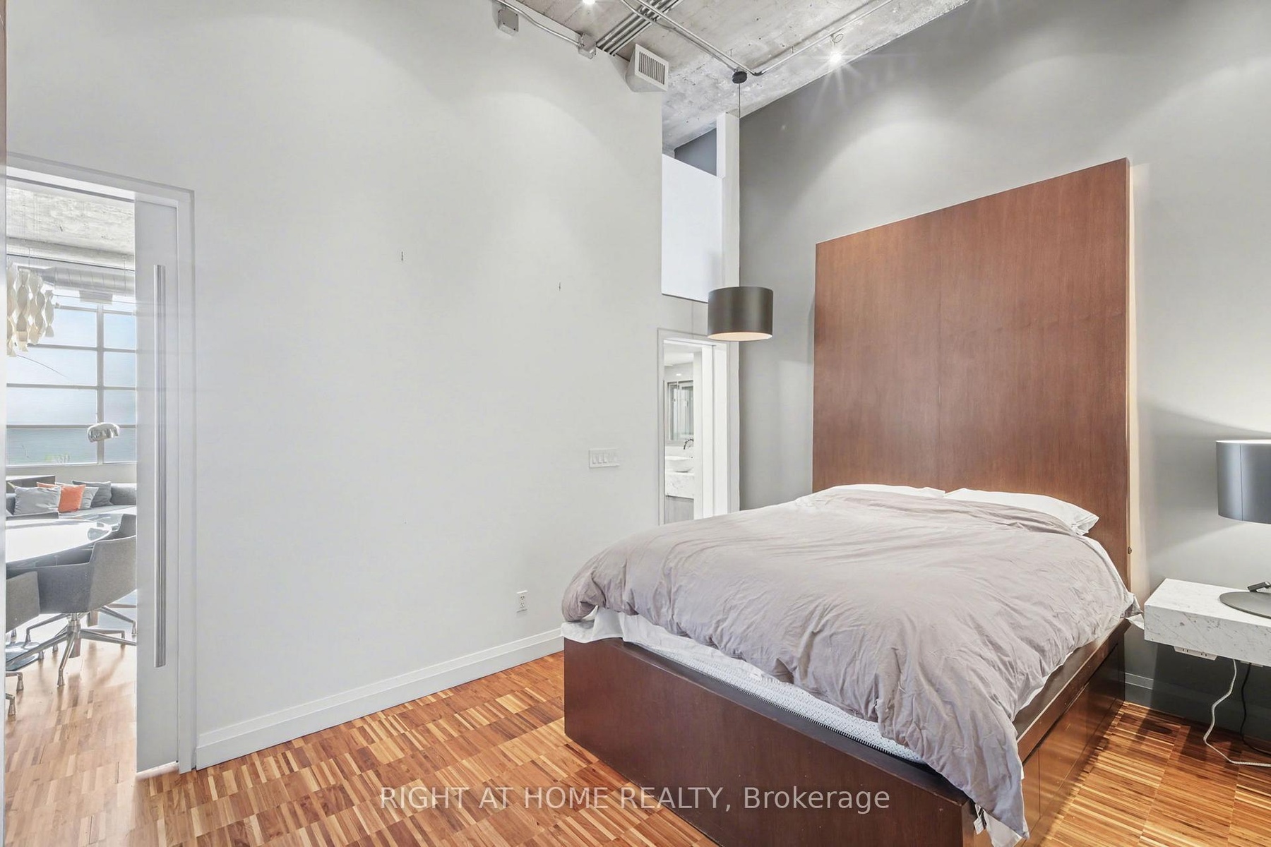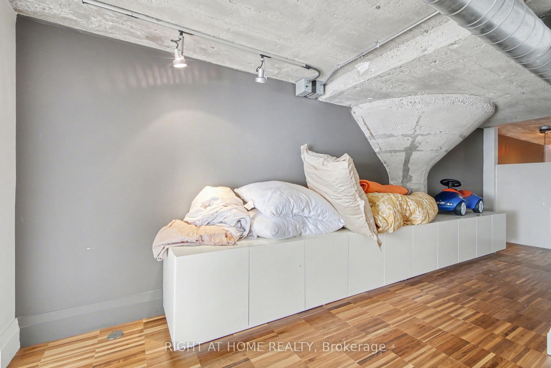 Original hard loft in the Tip Top Tailor Building featuring authentic concrete pillars and exposed concrete ceilings. This southwest-facing suite, previously featured in Canadian Interiors magazine, offers unobstructed water views and excellent natural light.The unit includes marble countertops throughout, hardwood floors, air conditioning, a queen-size bed, and is offered fully furnished with designer pieces including an Italian Living Divani sectional, marble dining table, custom bronze work desk, and Herman Miller chair. Additional features include Miele appliances (coffee machine, steam oven, speed/microwave oven), wine fridge, 65" Smart TV, Flos Arco floor lamp, stacked washer/dryer, and fibre high-speed Internet. Sculptures by a recognized Canadian artist add a distinctive design element.Enjoy unobstructed views of Coronation Park and a prime Lake Ontario waterfront location with direct access to the Martin Goodman Trail, Coronation Park, Stadium Road Park, Lakeshore Blvd W, and Toronto's downtown core. Steps to restaurants, cafés, bars, transit, and waterfront amenities.Building amenities include a full gym and hot tub on the ground floor. Optional parking with a private EV charging station is available at an additional cost.Hydro, water, and internet are included