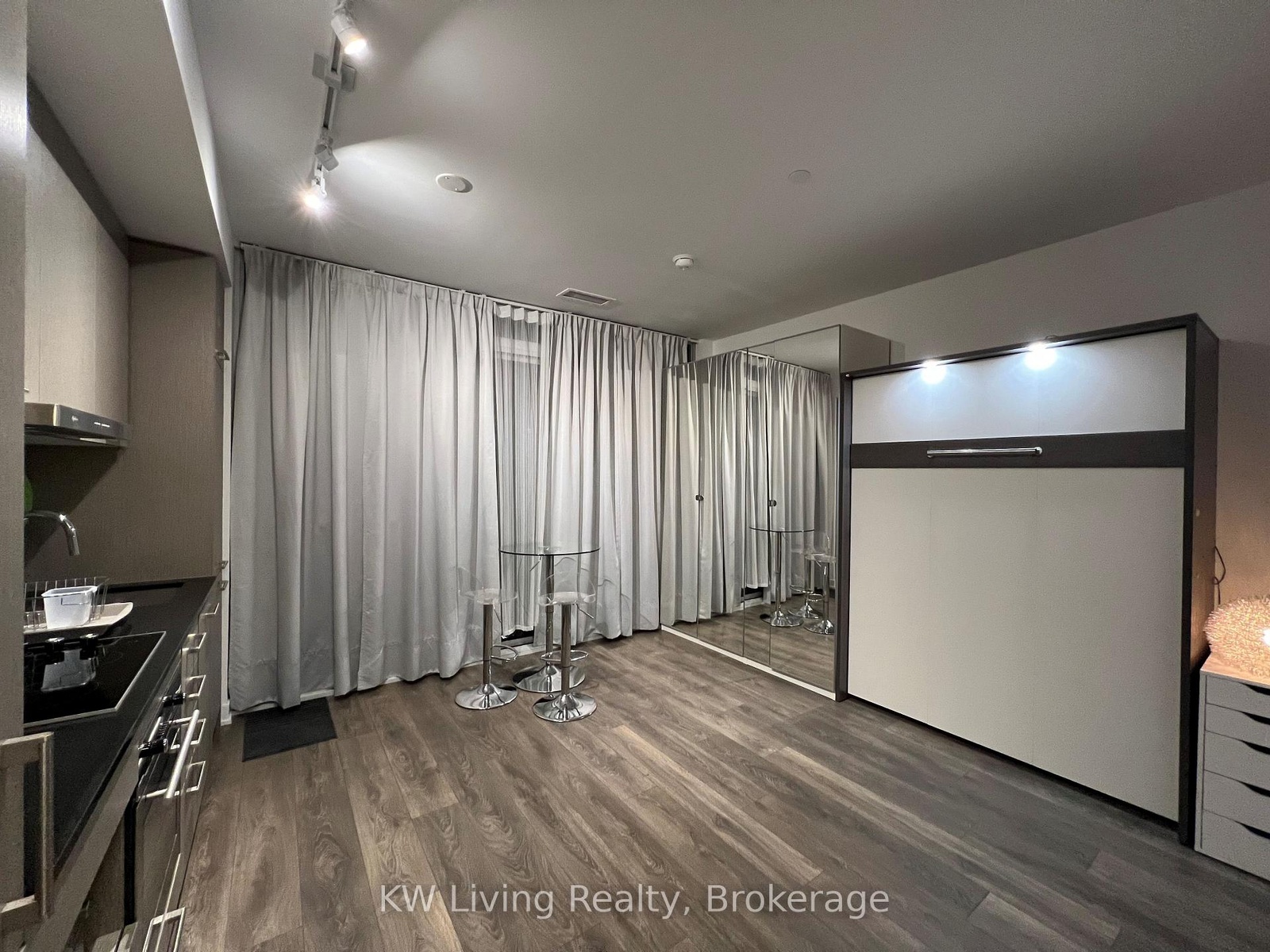Bright, modern studio in the heart of Toronto's Entertainment District! Fully furnished with a Murphy bed, dining set, and wardrobes - what you see is what you get. Excellent building amenities include 24-hour concierge, gym, rooftop terrace, and party room. Steps to PATH, TIFF, TTC, restaurants, and financial core. Move-in ready, well-maintained unit perfect for professionals or students.