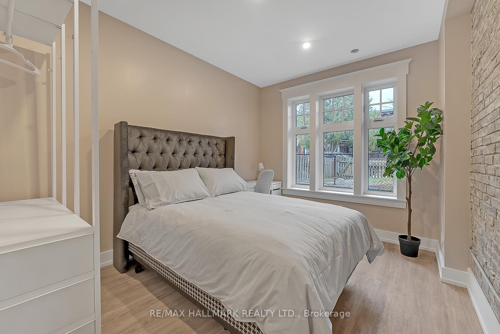 Primary Bedroom for Rent in a Fully Furnished 2-Bedroom Apartment in a beautifully restored historic building in Cabbagetown, steps to George Brown St. James Campus, TMU, and the Eaton Centre. 3D Virtual Tour Available. This renovated suite features 9+ ft ceilings, exposed brick, luxury vinyl plank flooring, and a bright open-concept layout. The apartment is fully furnished with Whirlpool stainless steel appliances, pot lights, in-suite laundry, and a private rear entrance. Secure buzzer entry and enhanced building access. Monthly cleaning of common areas included. Larger bedroom offered at $1,500/month + 50% of utilities, and $50 for high-speed internet. Secured parking available for $100/month. Apartment shared with a female tenant; female or couple preferred. Available immediately.