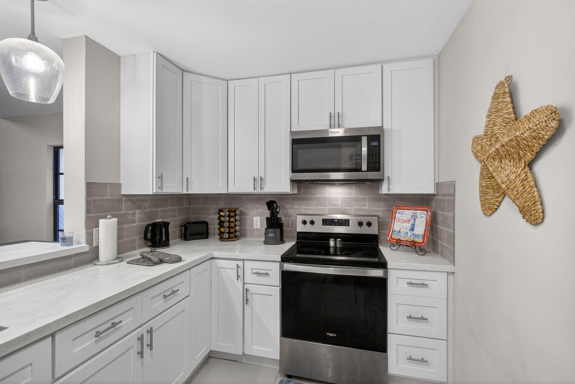 Rental Priice Reduced!! Mariner's Cove is an exclusive gated waterfront community, Tastefully furnished and turnkey with utilities included, his beautiful light and bright end unit is tranquil and private, looking out on the water, mangroves with intracoastal waterway. 3 bedrooms and 2 full baths; completely renovated to include full impact windows & doors, new kitchen cabinets, SS appliances, and quartz countertop. Brand new AC and Washer/Dryer. Covered carport space. Recently renovated Community club house, with pool, spa, marina (with occational slip rentals) & abundant walking paths & picnic areas overlooking intercoastal waters.Bike to the Beach! Water, electric, DISH and internet are included.
