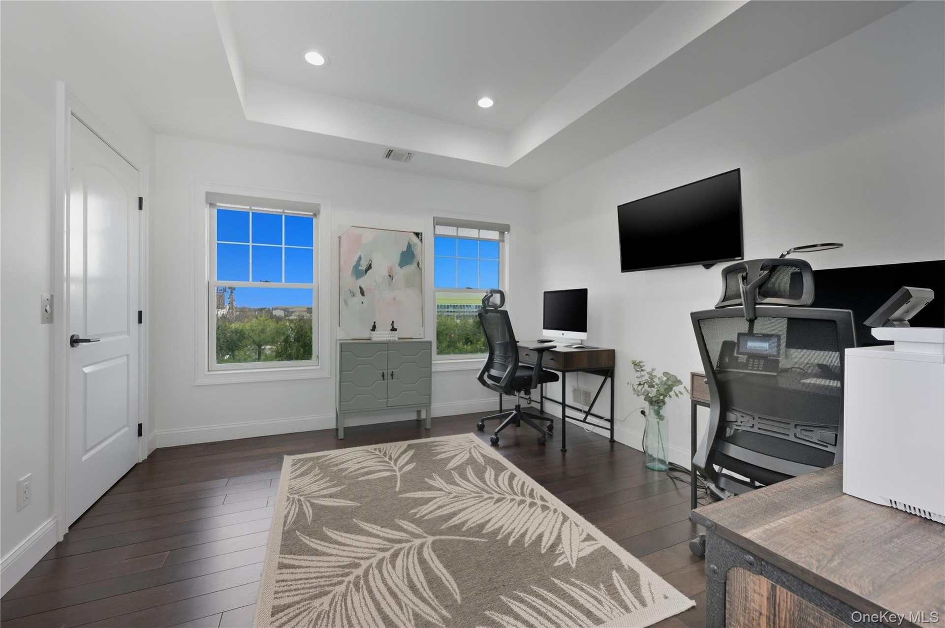 The primary suite is a true retreat, complete with a walk-in closet and a spa-like ensuite bathroom featuring double vanities and a luxurious soaking tub. The additional bedroom is generously sized for guests, and an additional flex space can be used as an additional bedroom or home office.