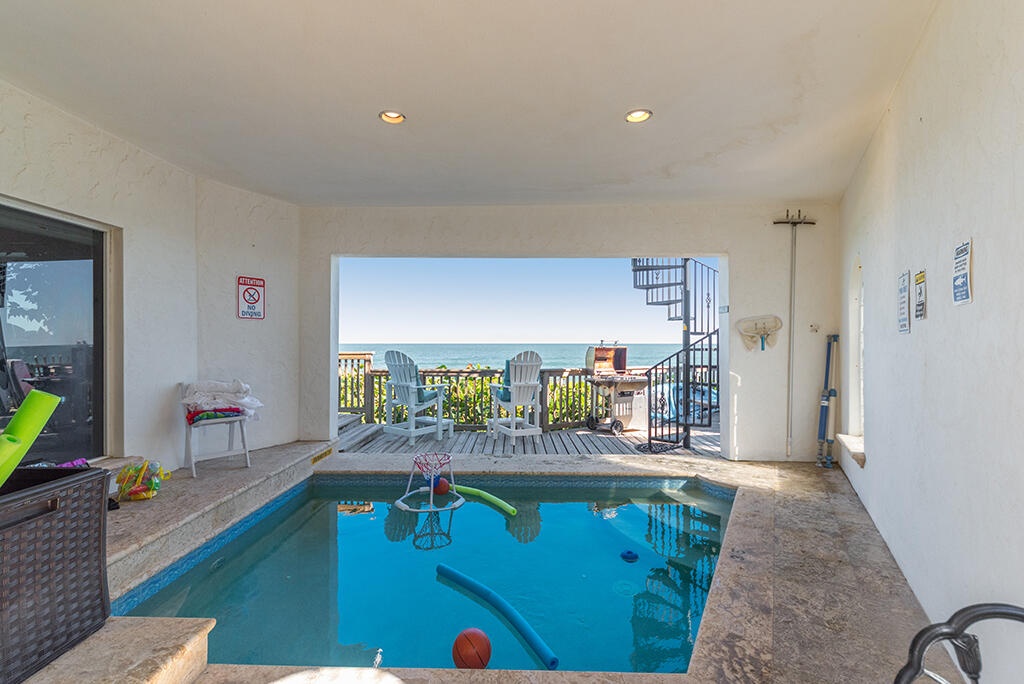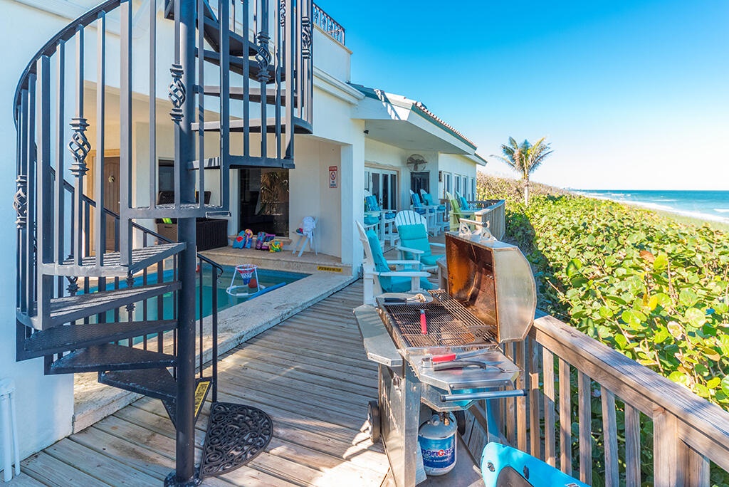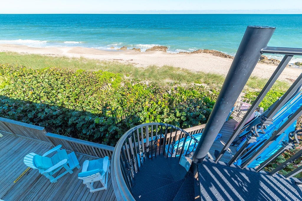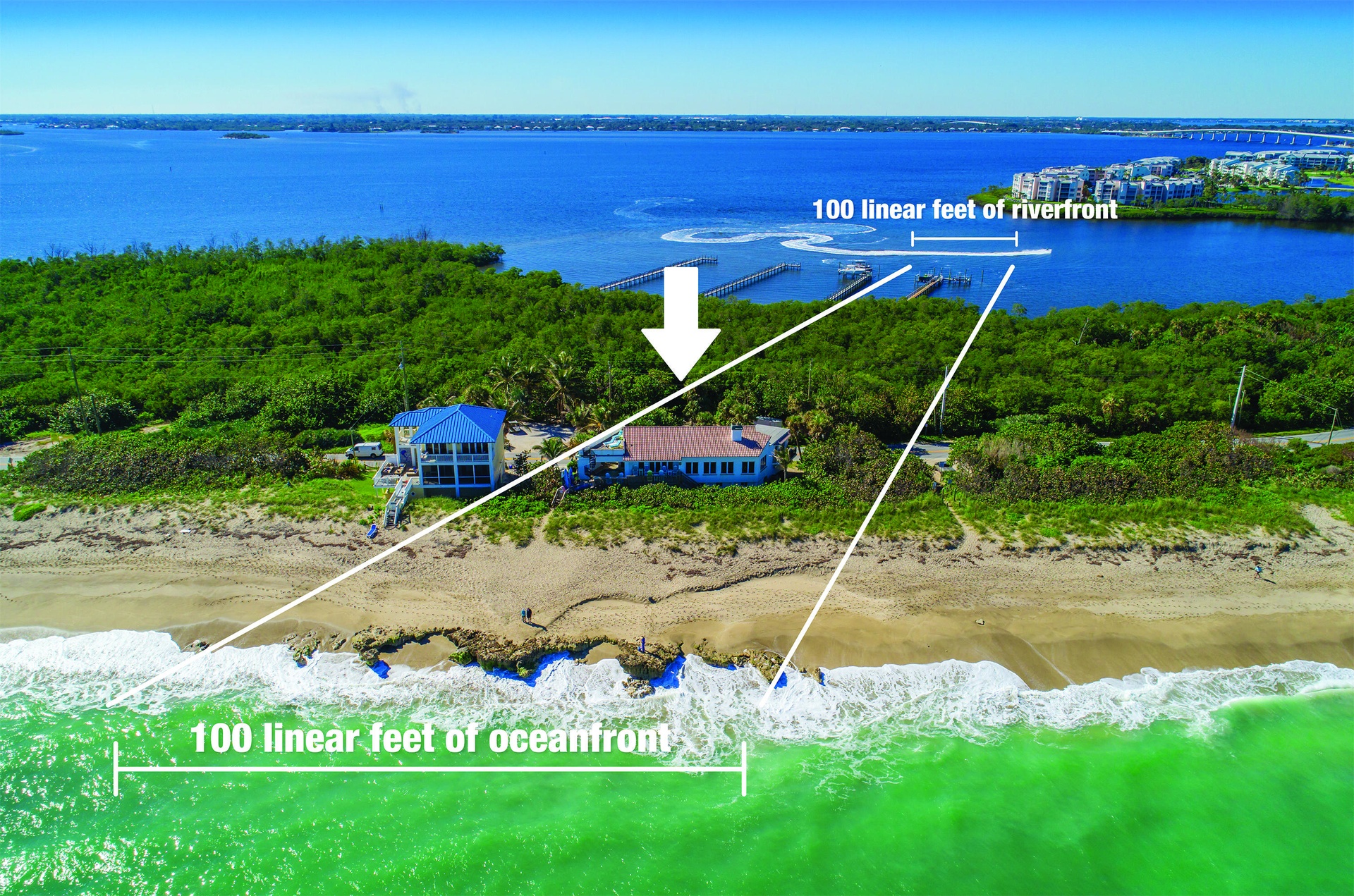 La Dolce Vita or The Sweet Life. is an impeccable ocean-to-river estate, perfectly designed for the consummate water lover. This CBS construction home features impact windows and doors, an elevator, heated swimming pool a rooftop sundeck and an ocean front leisure relaxation deck. The Home has been meticulously maintained throughout. The spacious chef's kitchen has double ovens with plenty of counter space and abundant cabinetry. The dining area is perfectly situated for entertaining large gatherings, showcasing breathtaking views of the Atlantic Ocean. The primary bedroom is a private retreat, highlighted by exquisite ocean views that greet you every morning. Over 100' feet on the ocean and river. A deep water dock with two lifts, a floating platform, kayak and paddleboard launch area and convenient access to fuel at the near by Marriott Marina. Located a few miles North of Jupiter Island, Hutchinson Island is poised to substantial long-term capital appreciation and income every year. Ample parking accommodates up to 10 vehicles. Close to shopping and restaurants and only a 15 minute drive to Witham Field (SUA), a public airport popular for private jets and Jet charters, with a US customs clearance office and less than an hour to West Palm Beach International Airport. With panoramic ocean-to-river views, premium amenities, and unmatched dual waterfront access, this property delivers both lifestyle and long-term income power. This home is a must see!!