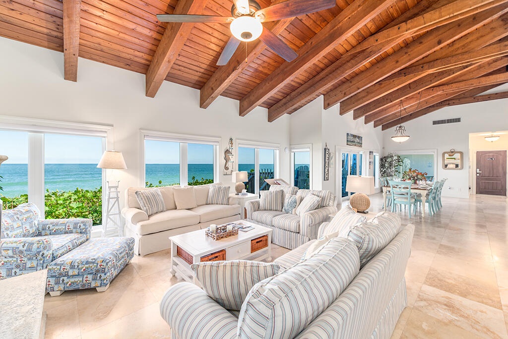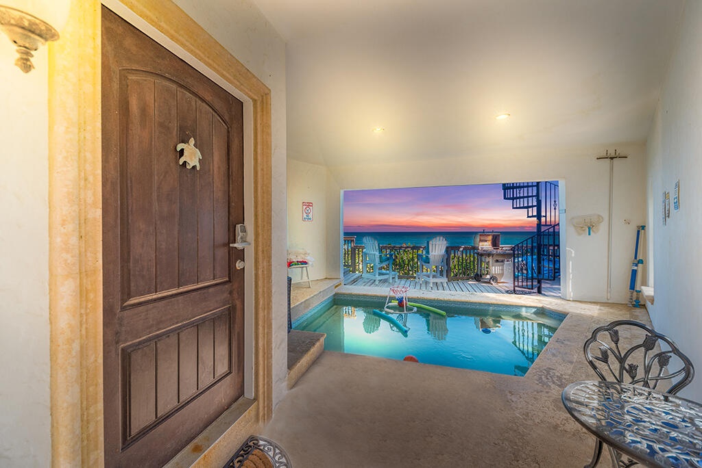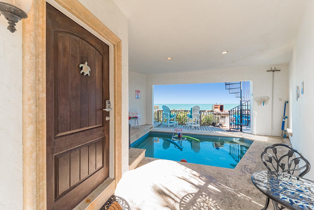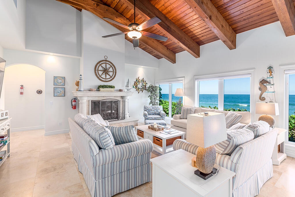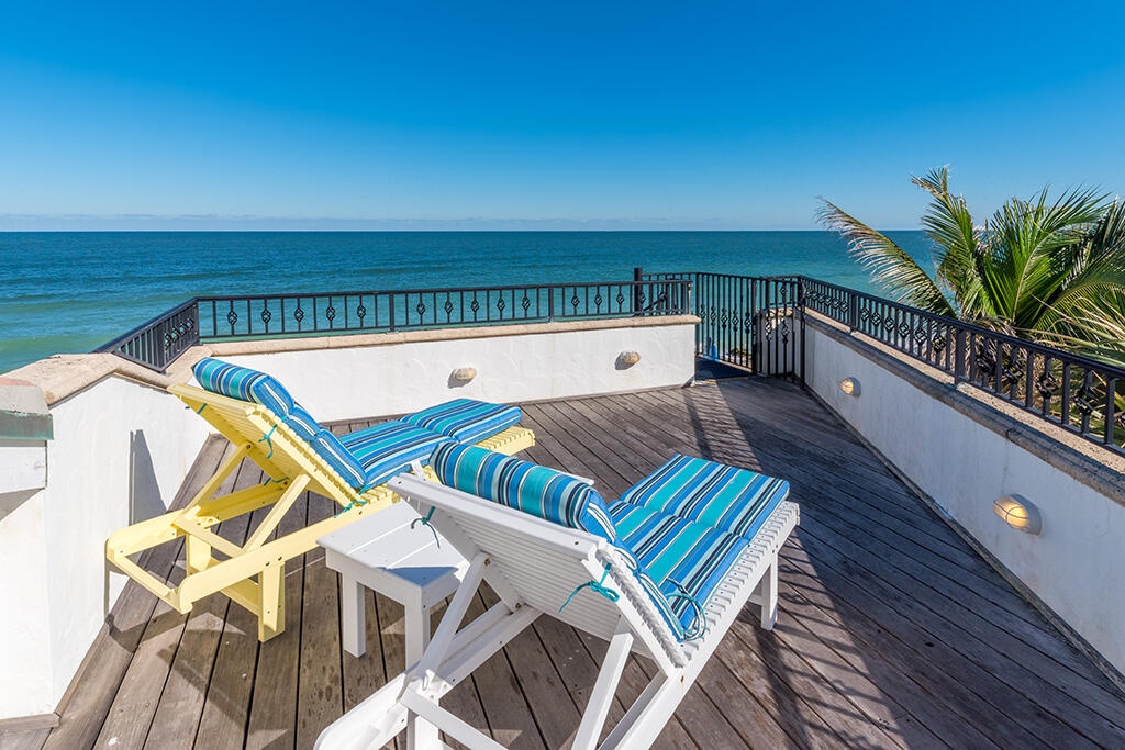 La Dolce Vita or The Sweet Life. is an impeccable ocean-to-river estate, perfectly designed for the consummate water lover. This CBS construction home features impact windows and doors, an elevator, heated swimming pool a rooftop sundeck and an ocean front leisure relaxation deck. The Home has been meticulously maintained throughout. The spacious chef's kitchen has double ovens with plenty of counter space and abundant cabinetry. The dining area is perfectly situated for entertaining large gatherings, showcasing breathtaking views of the Atlantic Ocean. The primary bedroom is a private retreat, highlighted by exquisite ocean views that greet you every morning. Over 100' feet on the ocean and river. A deep water dock with two lifts, a floating platform, kayak and paddleboard launch area and convenient access to fuel at the near by Marriott Marina. Located a few miles North of Jupiter Island, Hutchinson Island is poised to substantial long-term capital appreciation and income every year. Ample parking accommodates up to 10 vehicles. Close to shopping and restaurants and only a 15 minute drive to Witham Field (SUA), a public airport popular for private jets and Jet charters, with a US customs clearance office and less than an hour to West Palm Beach International Airport. With panoramic ocean-to-river views, premium amenities, and unmatched dual waterfront access, this property delivers both lifestyle and long-term income power. This home is a must see!!