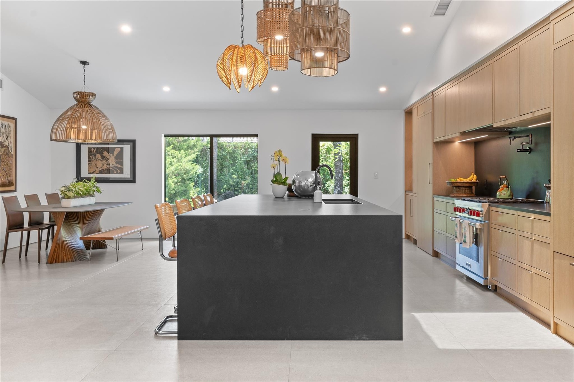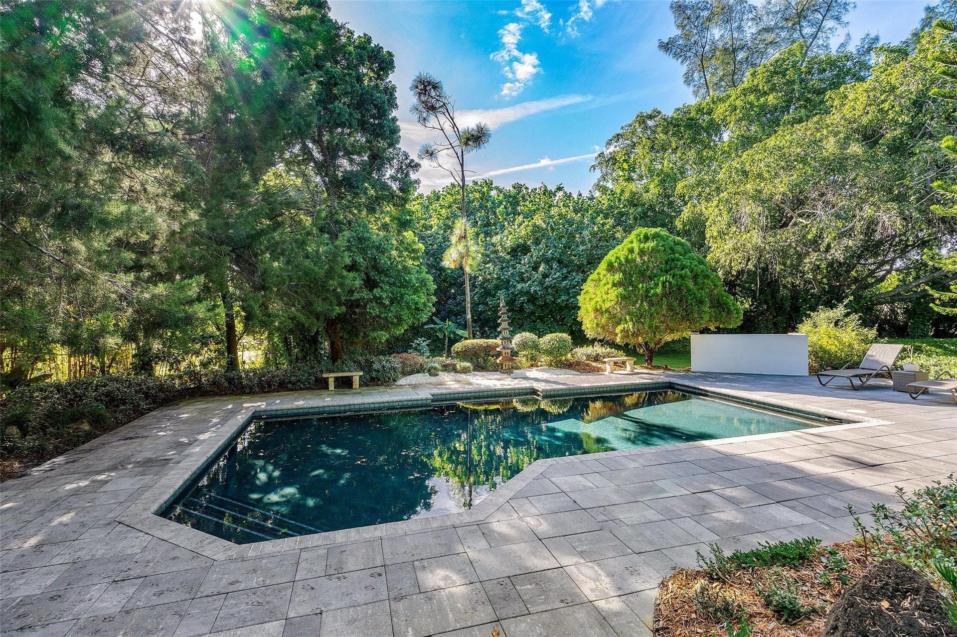 Custom renovation completed in 2023, this architecturally refined residence features a new roof, plumbing, electrical, windows, and septic system—offering modern infrastructure paired with exceptional design. Privately set on 1.15 acres within one of Boca Raton's most coveted gated communities, the home showcases elevated craftsmanship, bespoke finishes, and thoughtful detailing throughout.Reimagined with a modern aesthetic, the interiors are distinguished by expansive porcelain tile flooring, custom oak cabinetry, a separate office for those working from home, and a designer chef's kitchen appointed with premium appliances and tailored millwork—crafted for both everyday living and elevated entertaining. Full-home automation enhances comfort and functionality, while walls of impact glass and fully opening Euro-style sliders flood the home with natural light and create a seamless connection to the outdoors. The living spaces extend to lush, professionally landscaped grounds, where a heated saltwater pool and serene garden views are framed by mature trees, creating a private, estate-like retreat. With generous acreage, curated custom finishes, and a sophisticated design sensibility, this residence presents a rare opportunity to enjoy luxury living in one of Boca Raton’s most prestigious communities.The home is situated one mile from the future Chabad Chai Center of Boca-with anticipated completion in two years. The property offers a rare balance of accessibility and privacy within the gated enclave of Long Lake Estates.