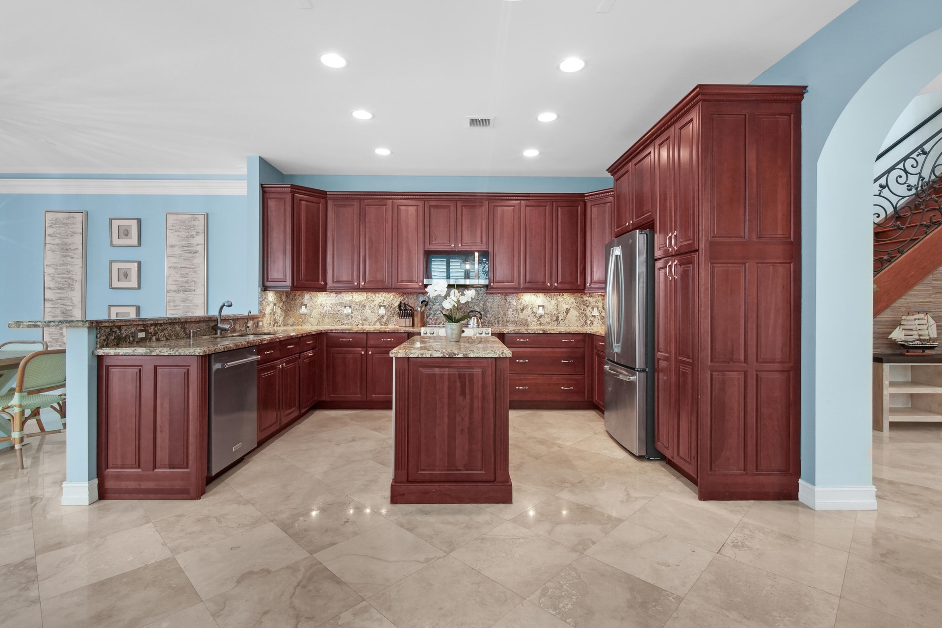 Luxury three-story townhome with a private 1,000 square foot rooftop terrace, elevator, private pool, no HOA, and no rental restrictions, located in Victoria Park just five minutes from Fort Lauderdale Beach. This residence offers 3,336 square feet of living space with 4 bedrooms and 4.5 bathrooms, marble flooring throughout, a grand entry with wood staircase, and elevator access to all levels. The home features all impact windows, a new roof, and a large two-car garage, providing both comfort and peace of mind. The chef's kitchen is designed with cherry wood cabinetry, granite countertops, a center island, built-in Haier wine refrigerator, filtered water system, and generous storage, flowing seamlessly into the main living and dining areas. All bedrooms include dedicated en suite bathrooms, offering privacy and flexibility for residents and guests.