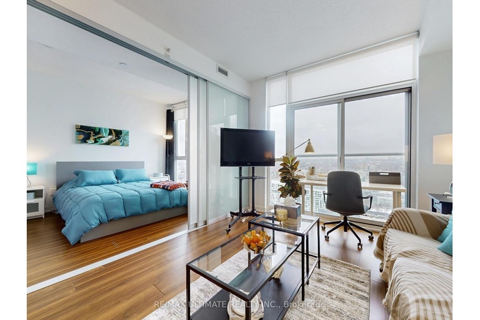 This fully furnished one-bedroom suite offers a thoughtfully designed layout that maximizes space while being filled with natural light. Floor-to-ceiling windows and a north-facing Juliette balcony bring in fresh air and unobstructed city views. Sliding glass partition walls add flexibility to the space, open them to create a more expansive living area or close them for a comfortable and private bedroom. The modern kitchen is finished with high-end stainless steel appliances, under-cabinet lighting, a contemporary backsplash, and sleek, streamlined cabinetry. The suite also includes a convenient storage locker for added functionality. Residents enjoy an impressive range of amenities, including an indoor pool, sauna, fully equipped fitness centre, theatre room, party space, rooftop deck with hot tub, guest suites, and 24-hour concierge service. With Canoe Landing Park just outside your door and the TTC, Sobeys, Rogers Centre, CN Tower, waterfront trails, and the Financial and Entertainment Districts all within easy reach, this location offers true downtown living with quick access to the Gardiner, DVP, and QEW.