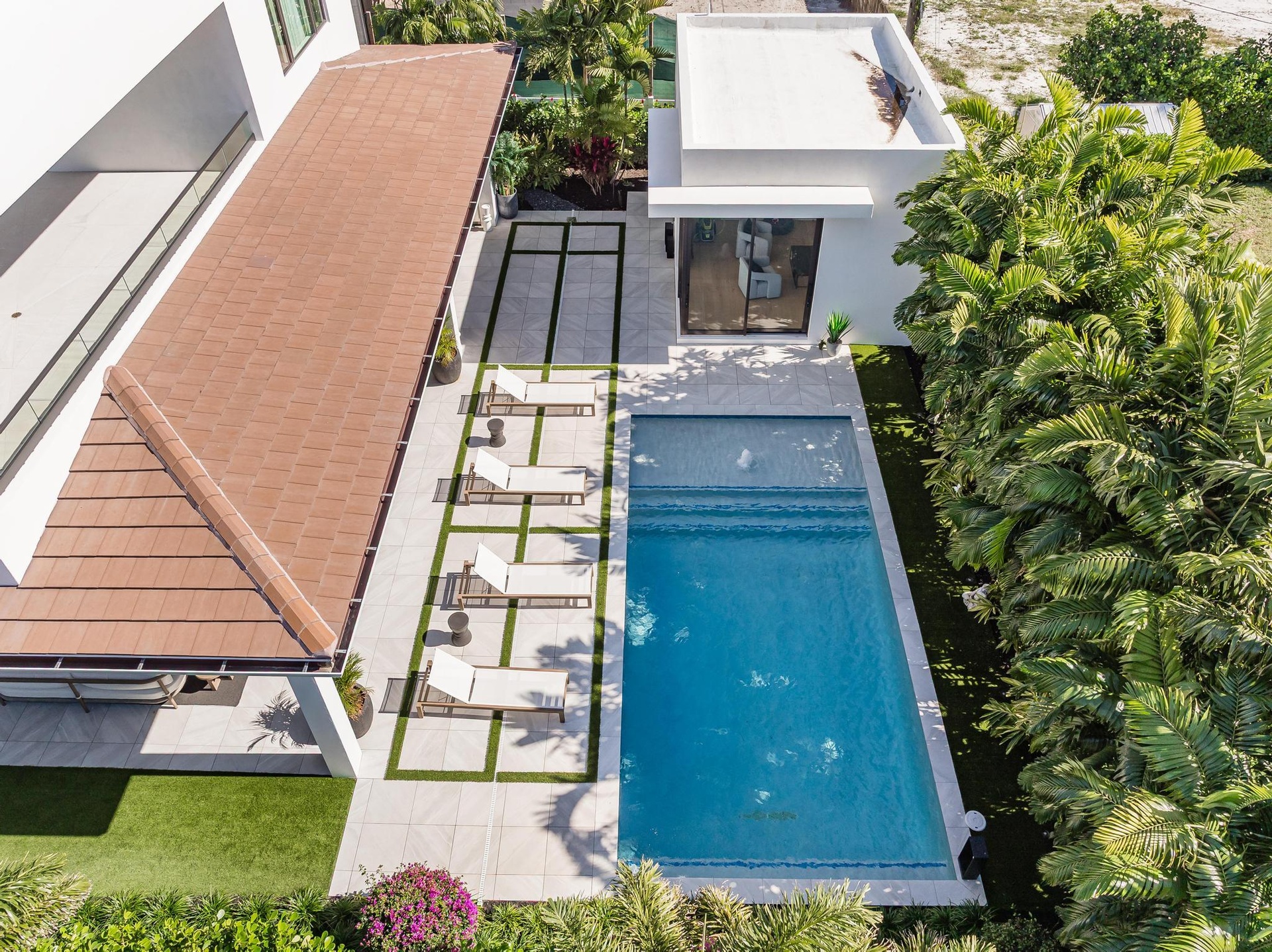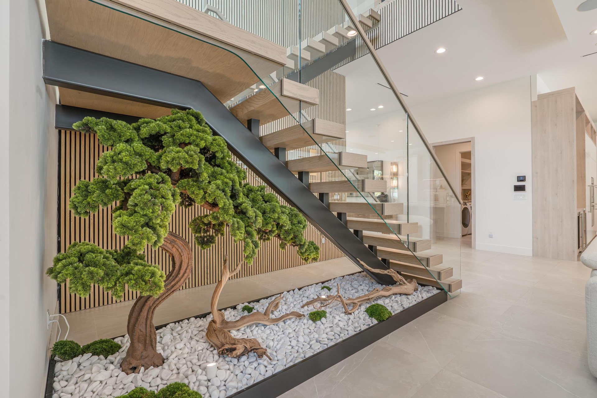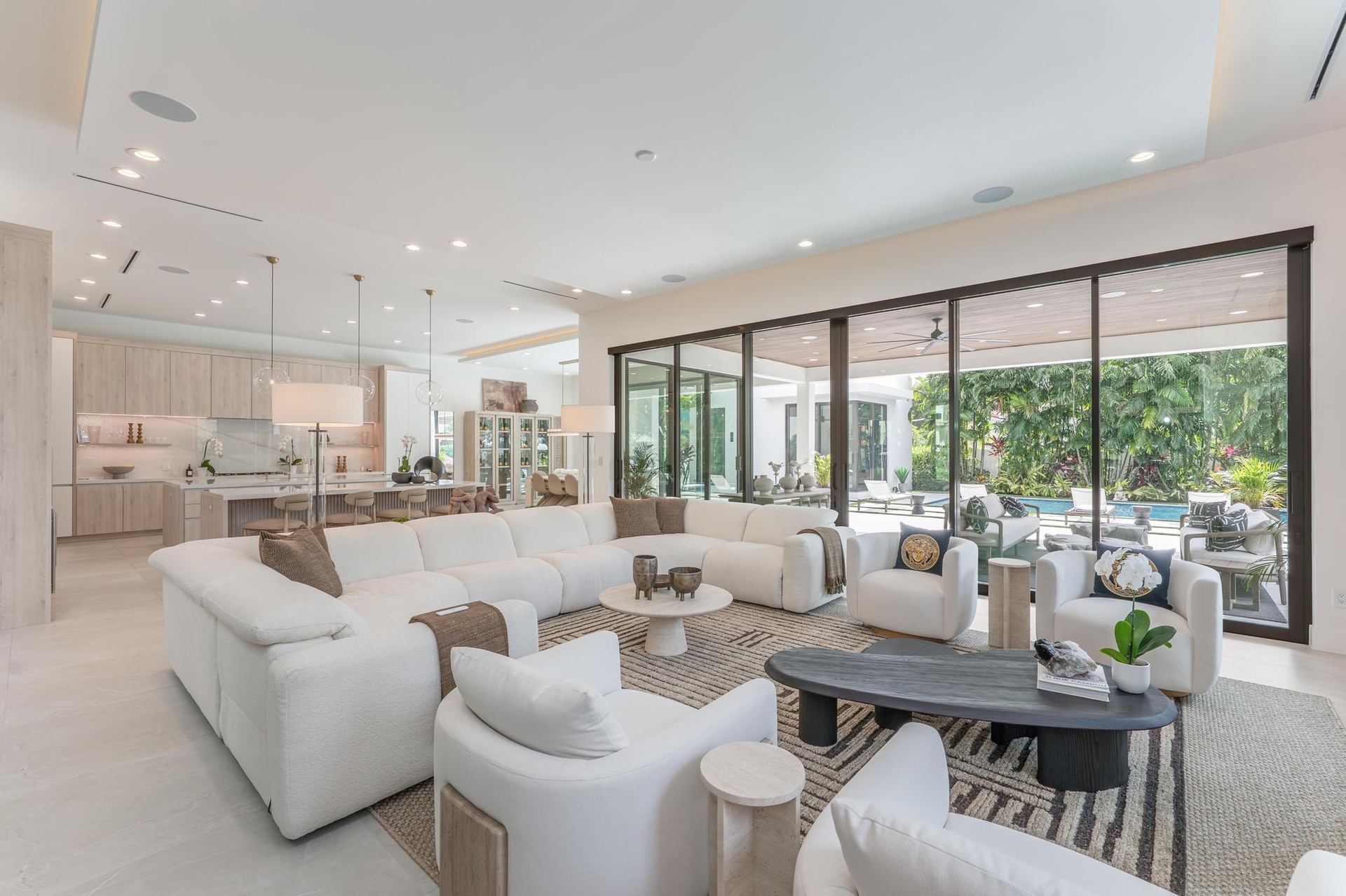 Experience Boca Raton living at its most elevated in this bespoke, turnkey smart estate on a corner lot, crafted by Primo Construction and designer Arianna Tascione, moments from The Boca Raton Resort & Club, Mizner Park, pristine beaches, private aviation, and world-class dining and shopping. Inside, over $400K in Restoration Hardware curation sets a refined, organic tone, while a centralized tablet orchestrates HVAC, lighting, security, exterior cameras, and motorized window treatments. A grand glass entry reveals a sculptural floating staircase above a gallery-worthy bonsai installation; Episode speakers powered by Sonos envelop both interior and outdoor spaces in immersive sound. A grand glass entry reveals a sculptural floating staircase above a gallery-worthy bonsai installation; Episode speakers powered by Sonos envelop both interior and outdoor spaces in immersive sound. The chef's kitchen - natural gas Miele suite, oversized island, and built in bar - flows to an 833 sq ft covered patio with wood grain ceiling overlooking a lush pool and gardens. The primary retreat indulges with a 392 sq ft terrace, spa bath, dual custom closets (one bedroom sized), automated Toto commodes, custom soaking tub, and a steam shower. Two en-suite guest suites flank an entertainment loft, while a separate guest house adds effortless flexibility. A concrete second floor structure, whole house generator, and ADA compliant elevator complete this no compromise modern sanctuary. The furniture and furnishings are offered for sale; price is negotiable.