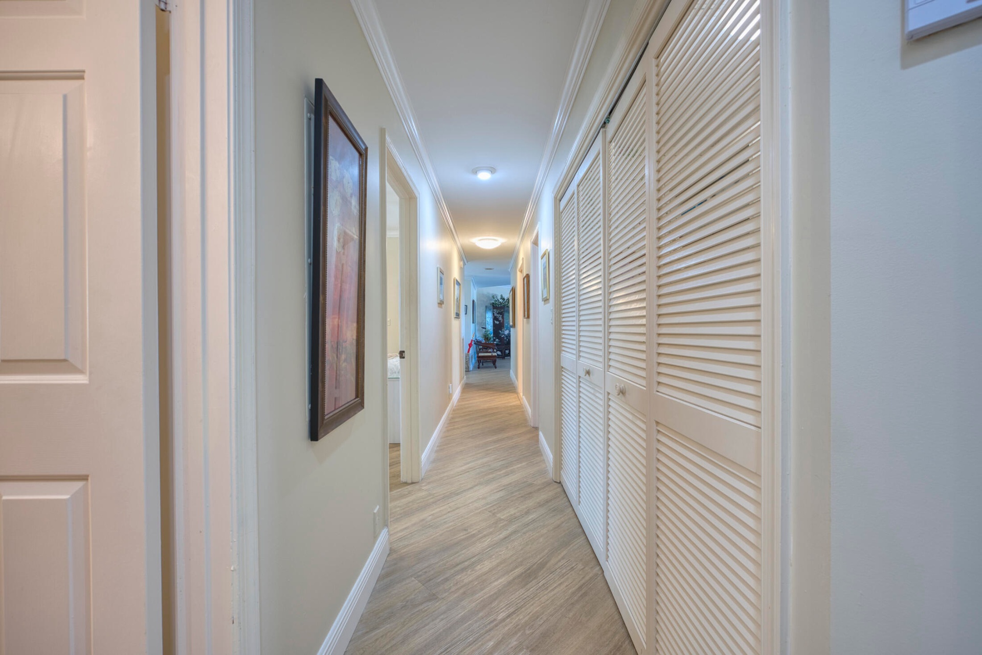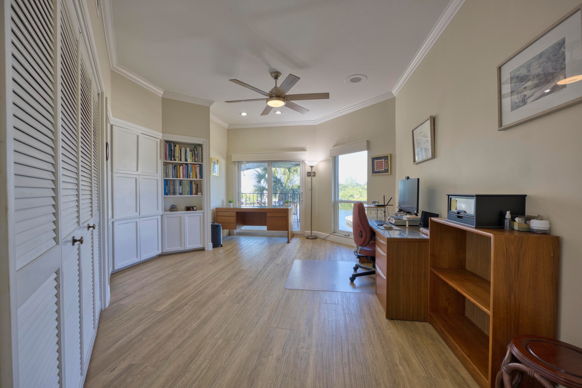 " Vinyl plank flooring and ceiling fans throughout