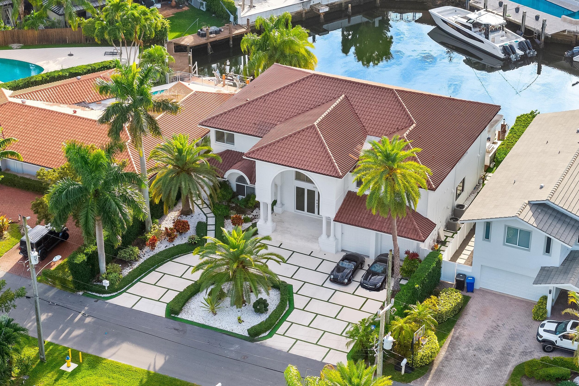 Welcome to the Prestigious gated community of Eastern Shores! Don't miss this Spectacular WATERFRONT property in the heart of North Miami Beach. Upon entering this pristine home you will be captivated by the 20 ft ceilings with a large bright and open living area looking directly out to phenomenal views of the water. This 5127 sq feet single family home includes 5 bedrooms, 4.5 bathrooms and a separate den and dining area. Flooring is made of 4 by 4 stunning porcelain tile. Off of the living area is a beautiful glass enclosed temperature controlled wine room. The home offers incredible closet space including a 400 square foot extension for storage/ possible office. The Primary Suite includes an expansive bathroom with an extra large shower that leads to a private glass enclosed full gym. Impact Windows and doors throughout (excluding one window above the front door) Laundry includes 2 newer double washers and dryers. The kitchen includes highly updated appliances and leads directly out to a covered patio. This separate patio with a gas fireplace allows you to sit and take in breathtaking sunsets from your private Miami Gem. Enjoy the waterfront backyard with a gorgeous heated glass tiled saltwater pool in addition to a built in summer kitchen area. The newly updated deck is made of stunning rich colored wood with cement and turf decorative blocks leading to a 75 foot private dock. Eastern Shores provides direct access to the Intracoastal Waterways and the Atlantic ocean making this property a Boater's Dream!!