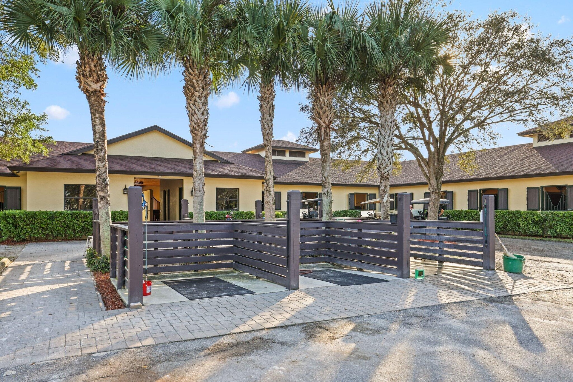Set on 10 pristine acres, this professionally designed, championship-caliber equestrian estate delivers an exceptional blend of luxury, functionality, and top-tier performance. Purpose-built for serious equestrians, the property features a meticulously planned 30-stall barn, with each 12' x 12' stall outfitted with fans, windows, automatic water, spigots, hurricane shutters, and an integrated fly spray system—ensuring optimal comfort, safety, and efficiency year-round. The barn is thoughtfully designed with a stunning center aisle finished in Equitan rubber flooring and offers outstanding amenities, including two full bathrooms with showers, ten dedicated tack-up areas, three separate tack rooms, and three feed rooms equipped with washers and dryers. The facility is fully supported by Wi-Fi and a generator, providing seamless operation and peace of mind. The professionally appointed riding arena measures approximately 250' x 145' and features an advanced ebb-and-flow system with premium footing, delivering consistent, competition-ready conditions. Additional training and support amenities include a six-horse walker, round pen, six wash stalls, and twelve individual turnout paddocks. The property also offers three RV parking spaces with full hookups, along with an expansive parking area accommodating both vehicles and horse trailers. Completing the estate is a beautifully appointed four-bedroom residence, offering a private retreat with a resort-style poolperfectly balancing refined living with a world-class equestrian lifestyle.
