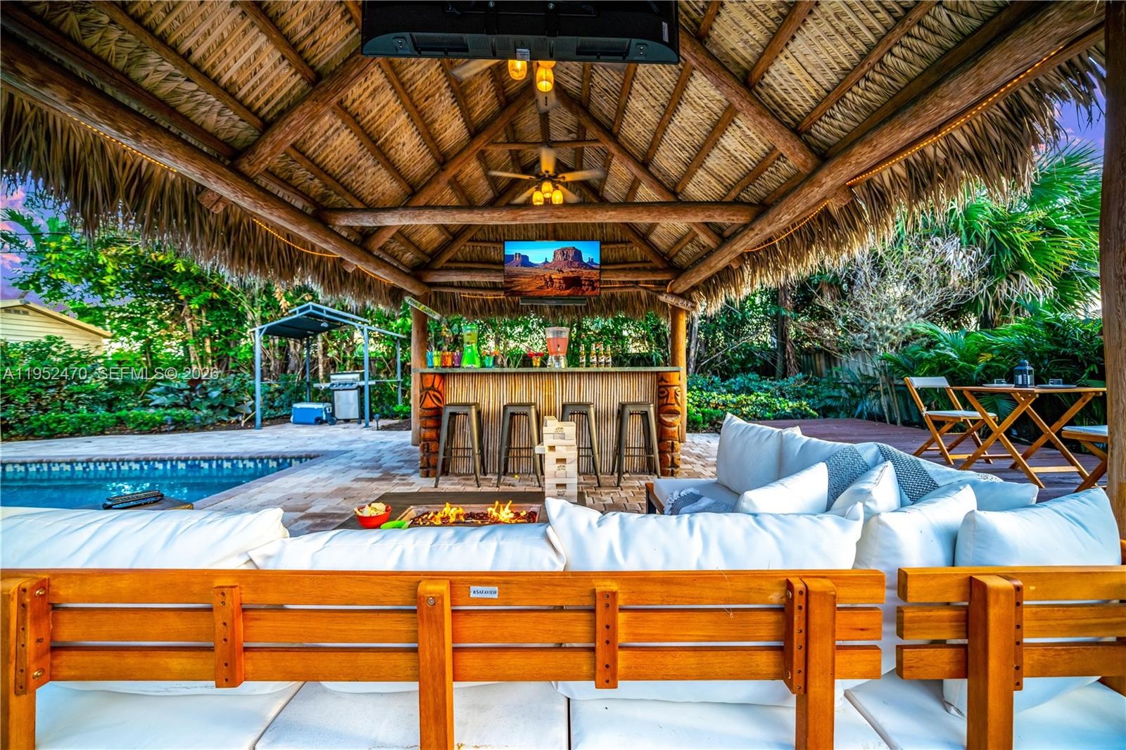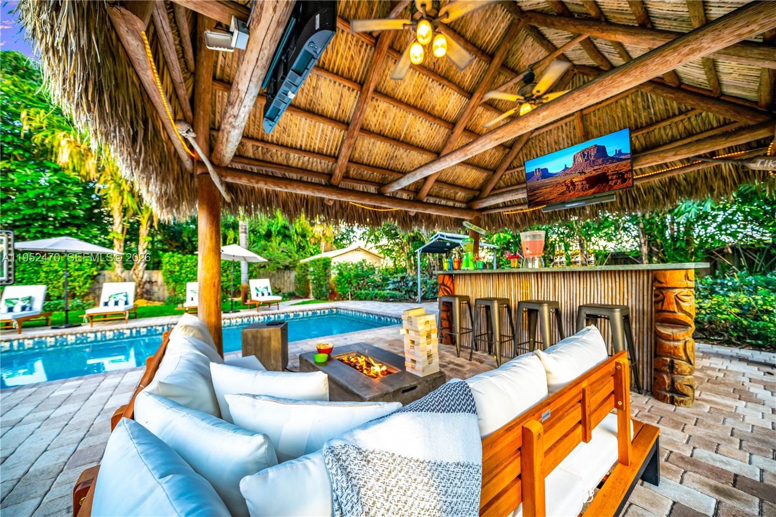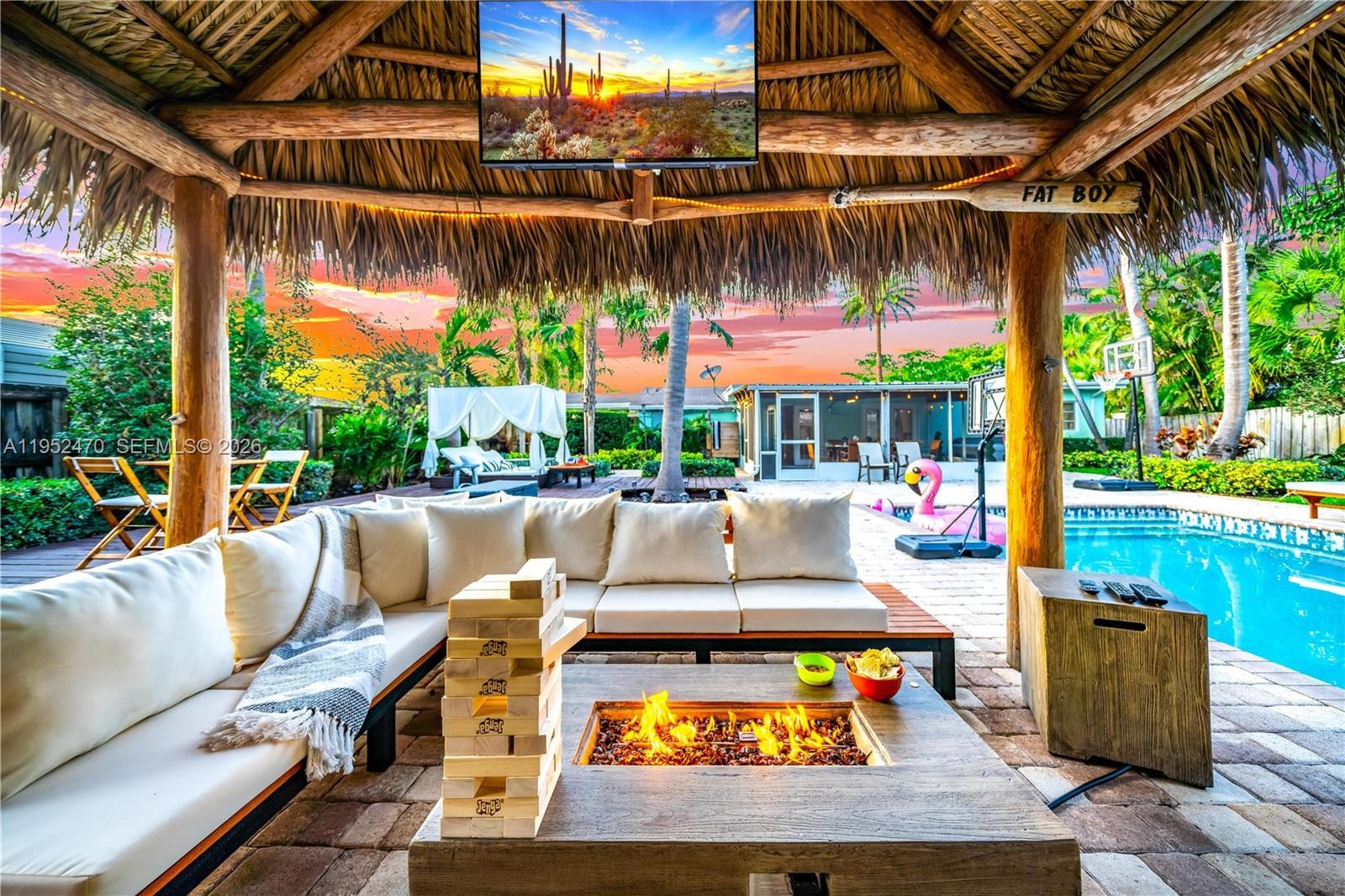4BR 3BA on a rare 1 4 acre lot with a fully fenced, resort style backyard featuring a heated pool, jacuzzi, sunroom, and tiki hut with bar, just 5 minutes ...