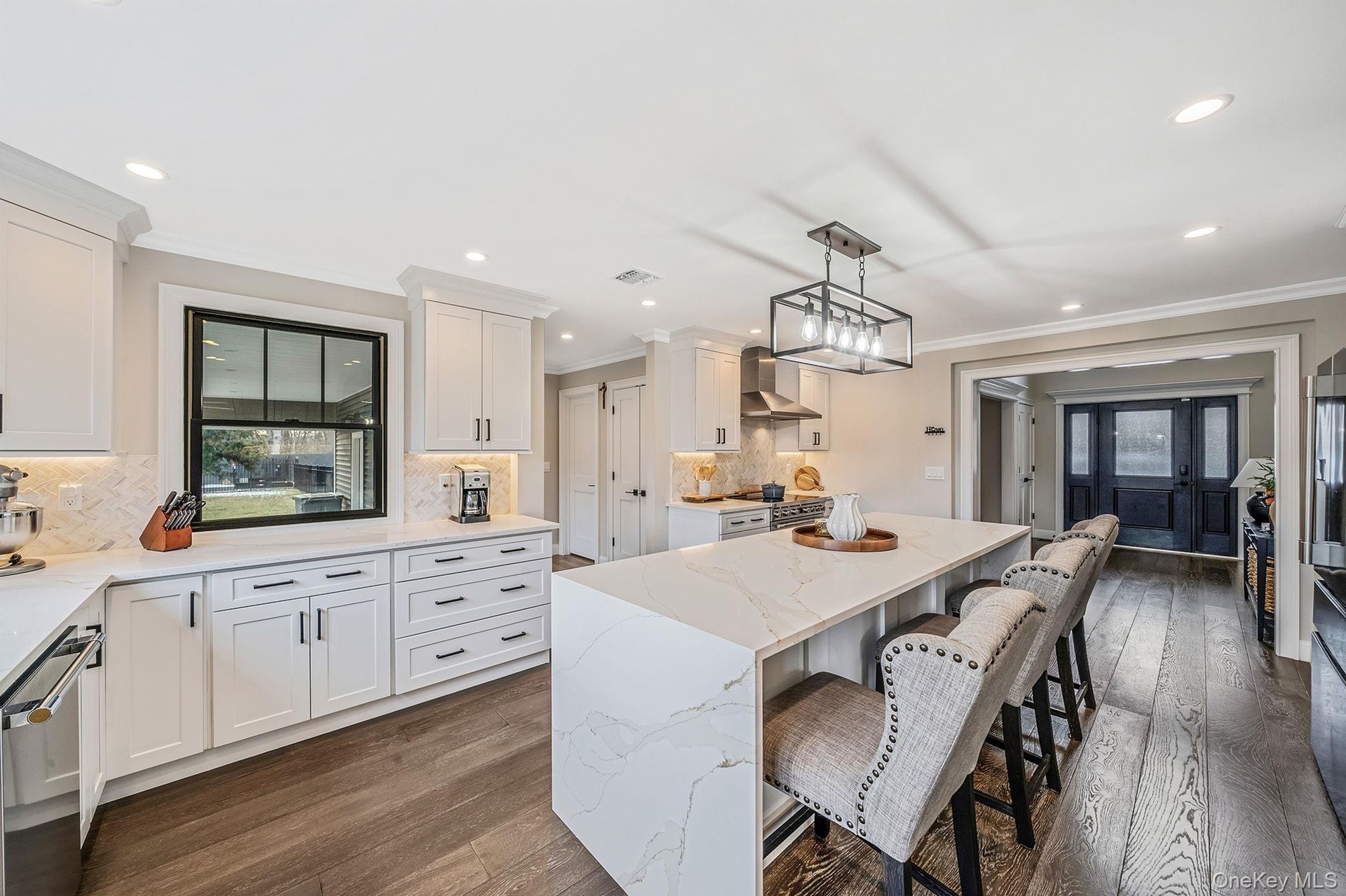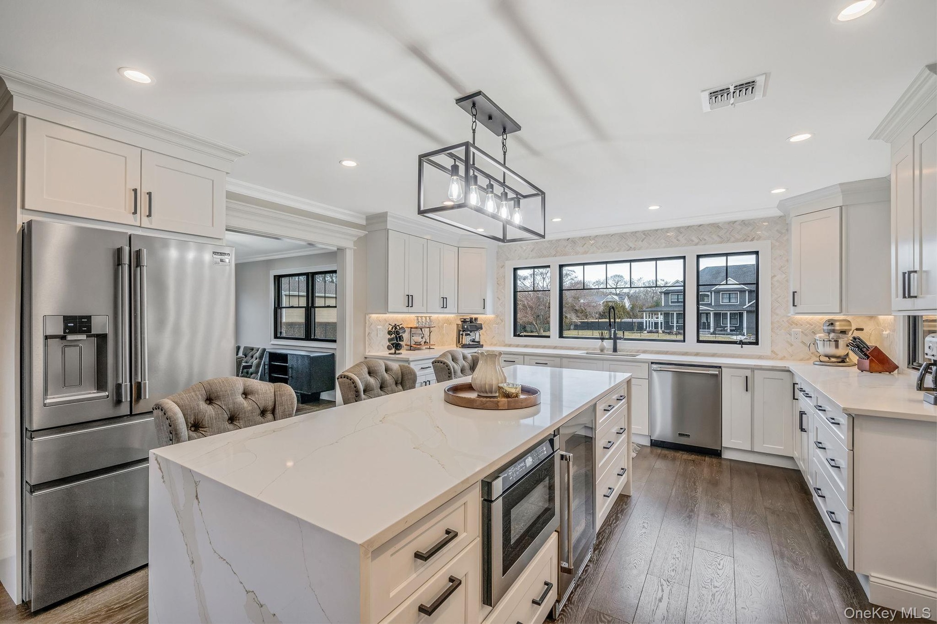 Introducing one of the most extraordinary properties in the heart Mount Sinai, New York. This impeccable over 4000 square feet custom built home integrates contemporary conveniences and modern technology for high-end practical living with expert craftsmanship, a tasteful interior, and a thoughtful layout for a lifestyle of unique luxury. Newly Constructed in 2024, this home boasts 5 Bedrooms, 2 Full Baths, 1 Half Bath, an extraordinarily large 2 car garage, and a 12+ car circular driveway. This home is perfect for the car enthusiast in your life. Upon entering the home you are greeted by a 2 story grand entry hall with 2 generous coat closets, one for you and one for your guests. The incredible first floor, was thoughtfully planned out and is generously proportioned, and has wonderful details that are unique and memorable. The open-floor-plan-concept public spaces include a spacious living room with a custom decorative wall, a banquet sized dining room, and a cozy den with wood burning fireplace. The Gourmet Kitchen is a chef's dream, with top-of-the-line stainless steel appliances, quartz countertops, bar seating at the waterfall center island, custom cabinetry and 180 degree views of the divine 1 acre country club backyard. The backyard is awaiting your imagination and can accommodate a pool, tennis court, and outdoor kitchen. Enjoy the covered rear patio for all your outdoor entertainment. Let's retreat to the second floor where you will find 5 bedrooms and 2 full baths all finished to the highest luxurious standards. All bedrooms are fitted with custom built-in closets. The private spaces of the upper level include a splendid owner's suite, equipped with 2 unforgettable and masterfully designed custom closets, a luxury bath with quartz double vanities, rain shower and spa soaking tub. Looking for more space? The expansive finished basement offers the space and square footage where you can use your imagination to create a home theater, wine cellar, office, recreation room etc. The basement currently has an expansive gym, see photos. With safety and convenience in mind, the home has recently been fitted for smart locks, and a new doorbell and camera. This exceptional property seamlessly blends luxury, craftsmanship, and functionality, making it an extraordinary find in today's real estate market. Don't miss the opportunity to experience the epitome of refined living, just minutes away from all major highways, fine dining, shopping, hospitals, universities and 10 minutes from the beaches of the Long Island Sound. Do not miss our Virtual Tour
