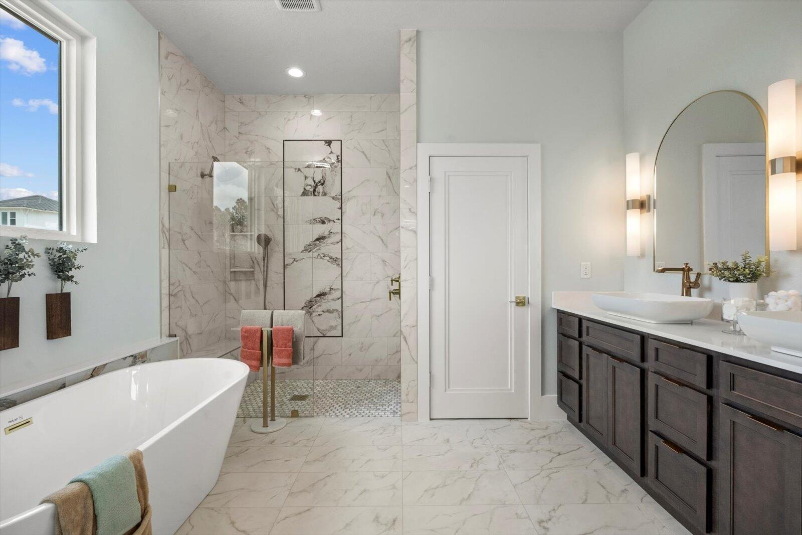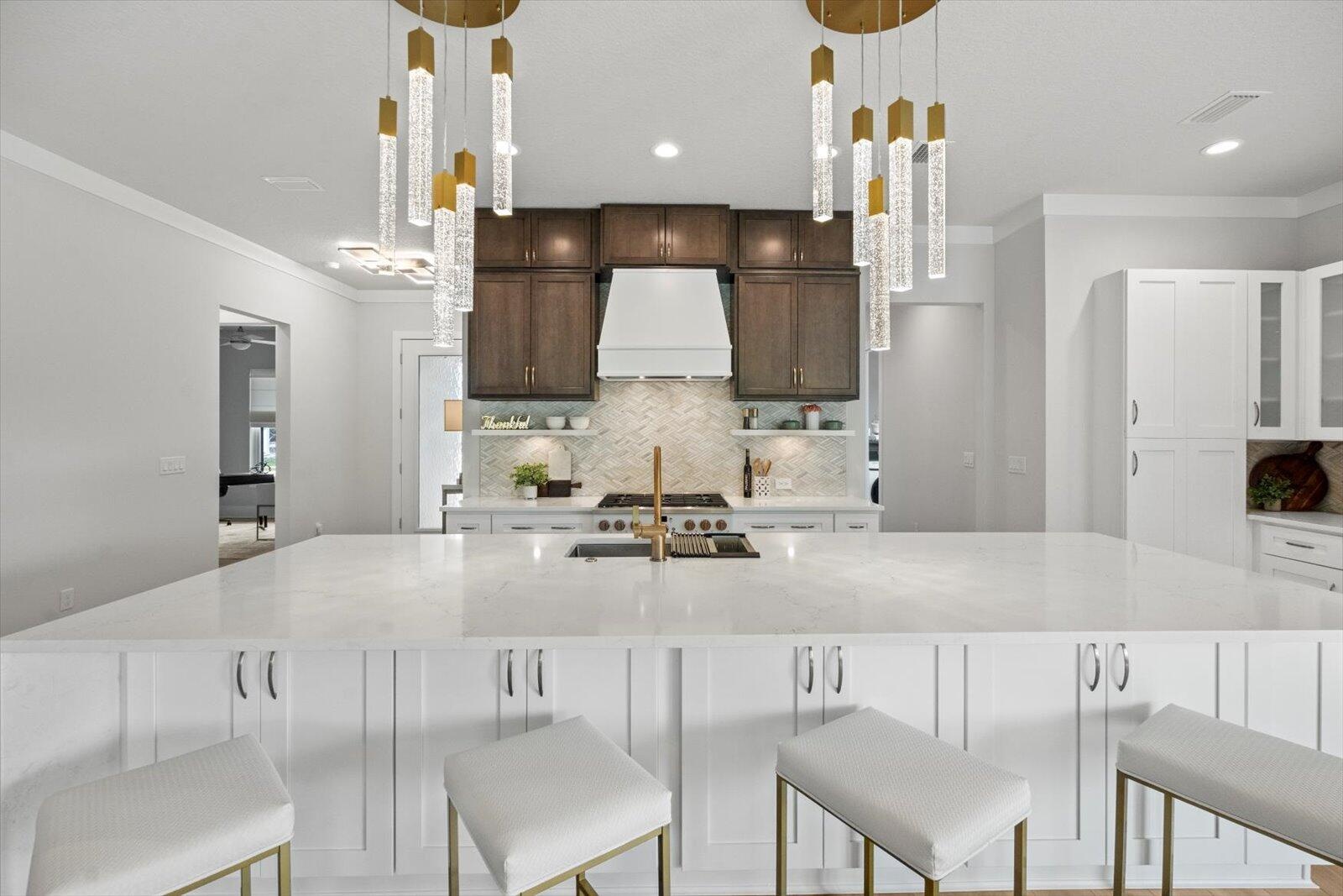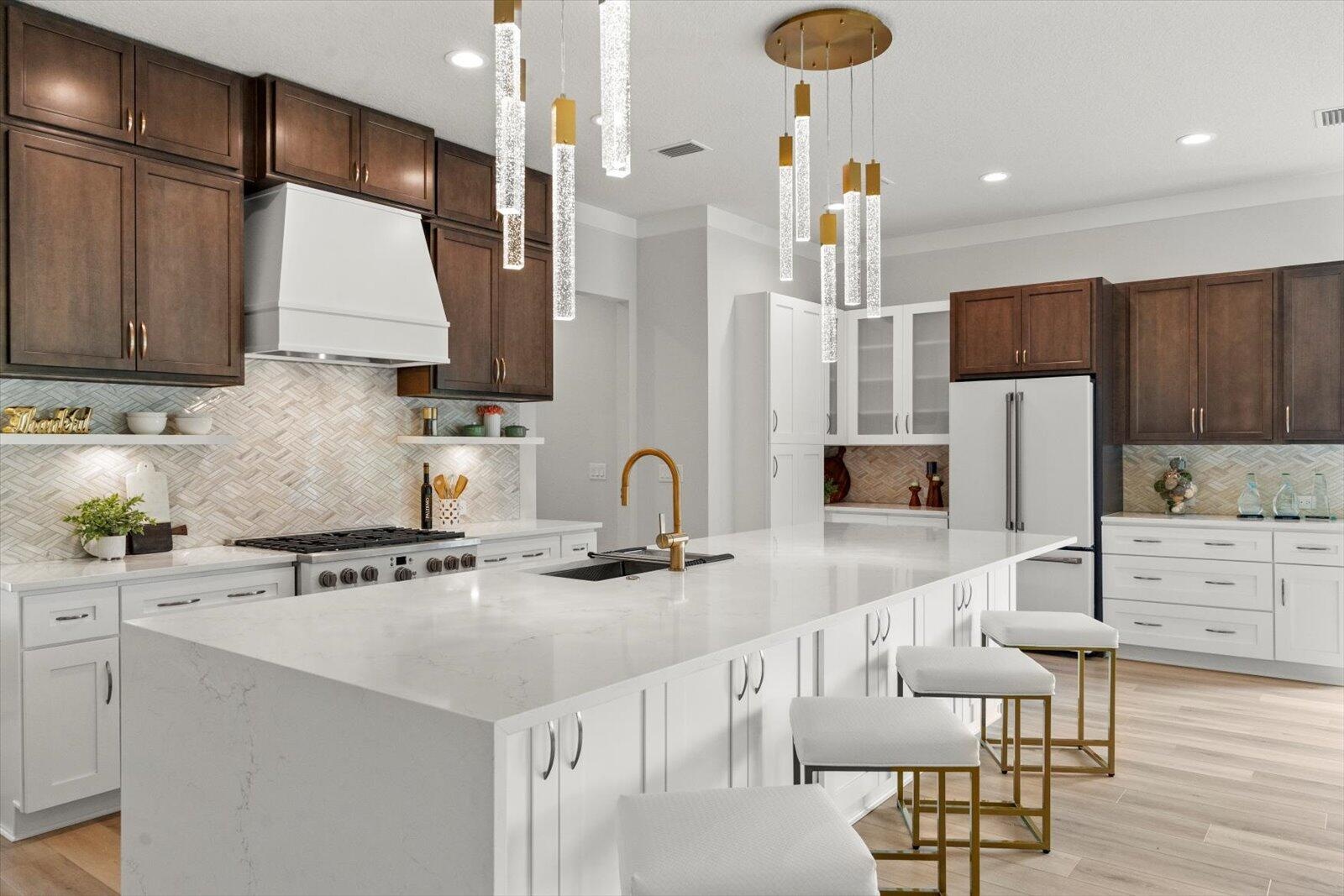 THIS HULBERT HOMES MODEL IN VERANDA BAY INCLUDES A 12-MONTH LEASEBACK--GIVING YOU THE OPPORTUNITY TO SECURE YOUR FUTURE HOME NOW WHILE THE BUILDER CONTINUES TO MAINTAIN IT! Beautifully designed and thoughtfully built, every finish, fixture, and layout choice reflects the ease and elegance of coastal living. The home sits on a spacious 60x130 lot and features a heated saltwater pool by Collins Built Pools, creating the perfect setting for relaxing or entertaining. On the main level, you'll find an open-concept kitchen with a hidden pantry, matte finish and rose gold accent Café appliances, and a gas stove powered by a buried 250-gallon propane tank--perfect for serious cooks. The living and dining areas flow seamlessly beneath 10-foot ceilings with a custom 8-inch stepped ceiling and inlay detail, while sliders open to a peaceful outdoor space. The primary suite is privately tucked off the main living area and includes dual closets, brushed gold fixtures, and a luxurious en suite with a separate soaking tub and shower. A home office and convenient first-floor laundry (with washer and dryer included) round out the downstairs. Upstairs, enjoy a versatile loft or game room with access to a private balcony, along with two additional bedrooms, a full bath, and a dedicated wine room for that perfect touch of indulgence. You'll also find real wood stairs and landing, LVP and porcelain tile flooring, ventilated wood shelving, and hurricane impact windows and sliders throughout. Veranda Bay is a gated waterfront community where golf carts are part of daily life and the Intracoastal is just steps away. Enjoy access to the community pool now, with a future clubhouse, fitness center, and private marina on the way. Shared docks are available between select homesites, with flexible options for ownership and use. This is more than a home--it's a lifestyle. Come see it for yourself and start imagining your next chapter in Veranda Bay!