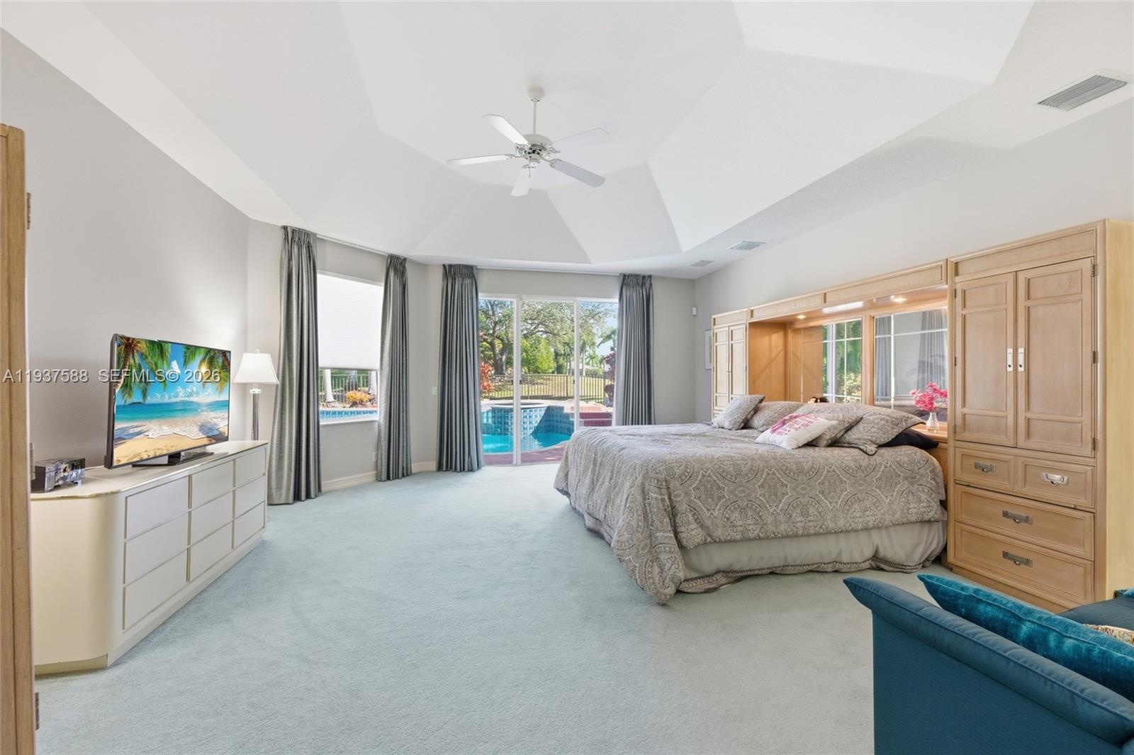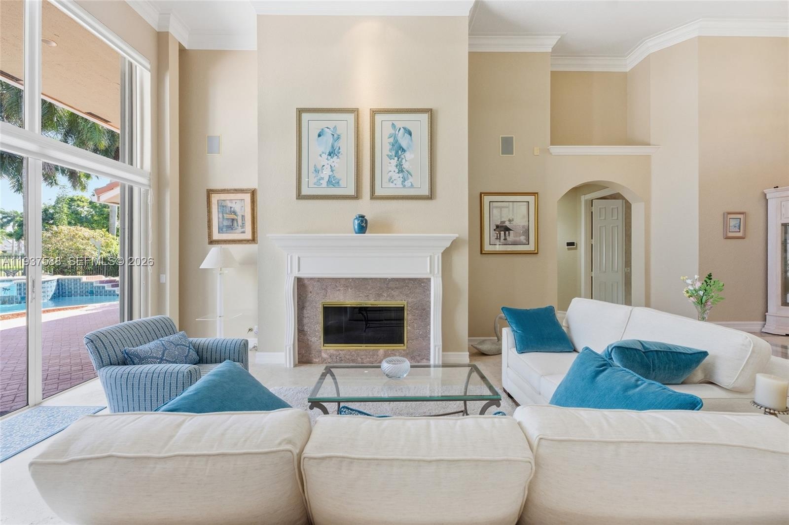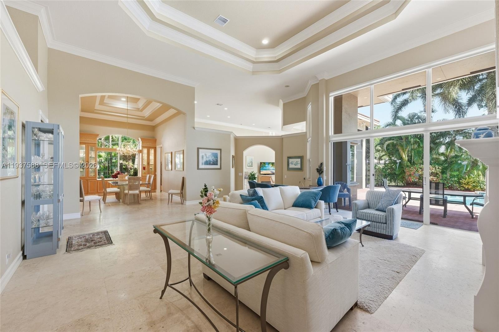 Time to make this elegant, custom home yours. Tucked on the 7th hole within the gated community of Poinciana at Weston Hills Country Club. This custom home boasts 4,487 square feet under air. Situated on a lushly landscaped lot with great curb appeal and features a three-car and an expansive circular paver entrance. The interior offers neutral tones with travertine marble flooring in the living areas and sliding glass doors overlooking your private pool/spa, patio, and separate screened porch. A chef’s kitchen with granite countertops, center island, double ovens, butler’s pantry, and a large pantry. The family room leads to an oversized game/playroom with a full bath and closet, making it perfect for intergenerational living or in-laws. Enjoy four spacious bedrooms, plus a private office with a full bath, and an additional playroom/game room. The master bedroom features a tray ceiling, sitting area, and 2 his and hers bathrooms, completing this thoughtfully designed home.