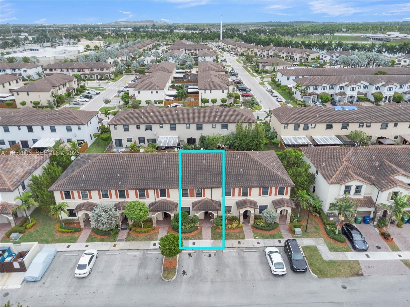 Welcome to this beautifully maintained two-story townhouse in the desirable gated community of Artesa in Homestead! Built in 2017, this spacious 3-bedroom, 2.5-bath residence offers 1,659 sq. ft. of comfortable living space with a functional and inviting layout. The first floor features tile flooring throughout and an open-concept design that seamlessly connects the living and dining areas, perfect for both everyday living and entertaining. The family room overlooks the updated kitchen, complete with dark espresso cabinetry, black stainless steel appliances, and an oversized counter ideal for casual dining and gatherings. Upstairs, enjoy a split-bedroom floor plan that provides privacy and comfort. The primary bedroom offers a walk-in closet and bathroom with a walk-in shower. The two additional bedrooms are well-sized and share a full bath. For added convenience, a new washer and dryer are located upstairs. Step outside to an attractive, low-maintenance backyard featuring a covered patio roof, elegant pavers, and turf and shed creating the perfect space for relaxing or entertaining year-round. Hurricane impact windows + doors are a PLUS! Residents of Artesa enjoy resort-style amenities, including a clubhouse, pool, fitness center, playground, and tennis courts, all within a secure, gated community. Conveniently located near shopping, dining, schools, and major highways, this home offers the perfect blend of comfort, style, and lifestyle. Move-in ready and a must-see!