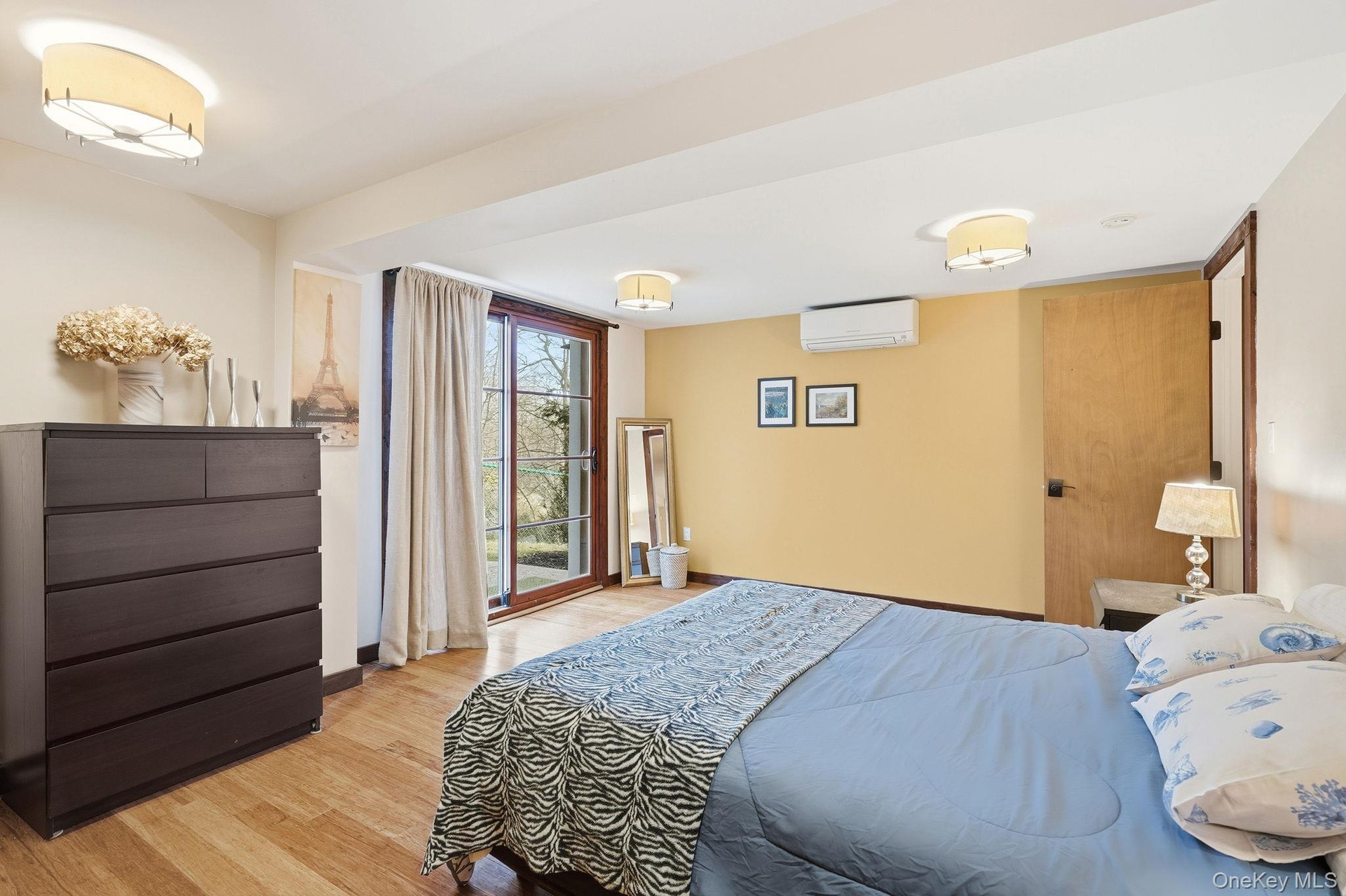 The lower level features a third large bedroom with a private exit to the garden, a full bathroom with a double vanity and a walk-in closet, a convenient laundry room, a rec room, and an additional, flexible, sun-filled space ideal for a home office, studio, or fitness room that seamlessly opens to an outdoor back patio. Tenants will enjoy ample storage and cabinet space throughout the house.