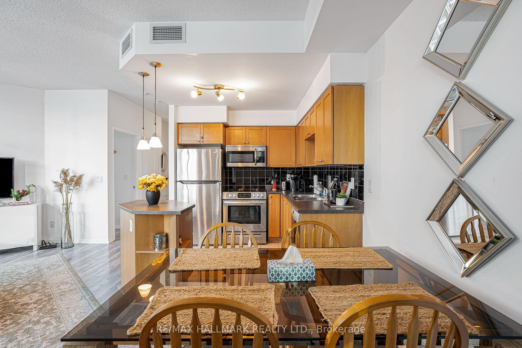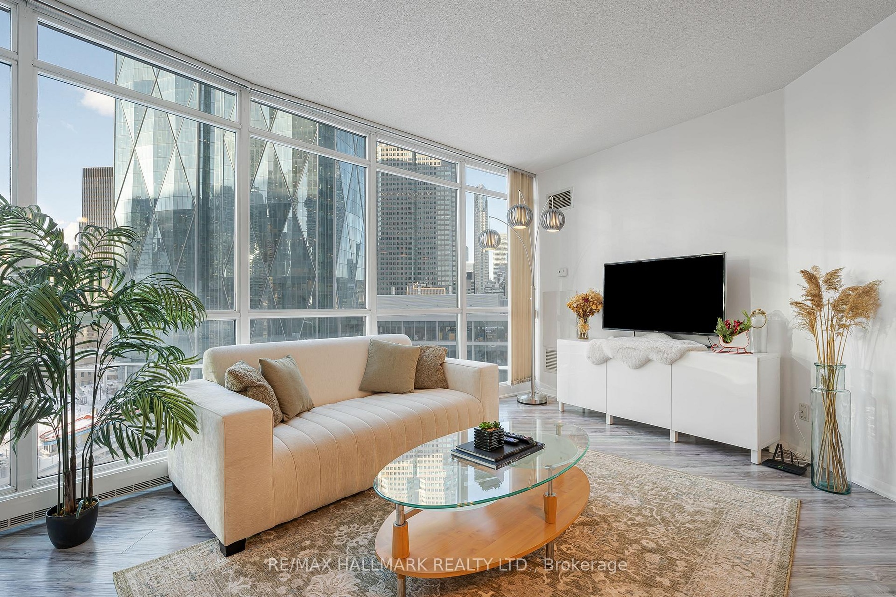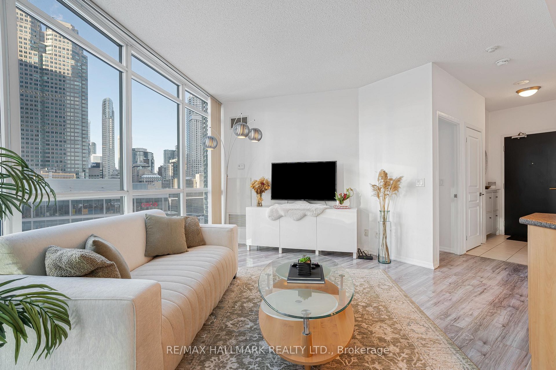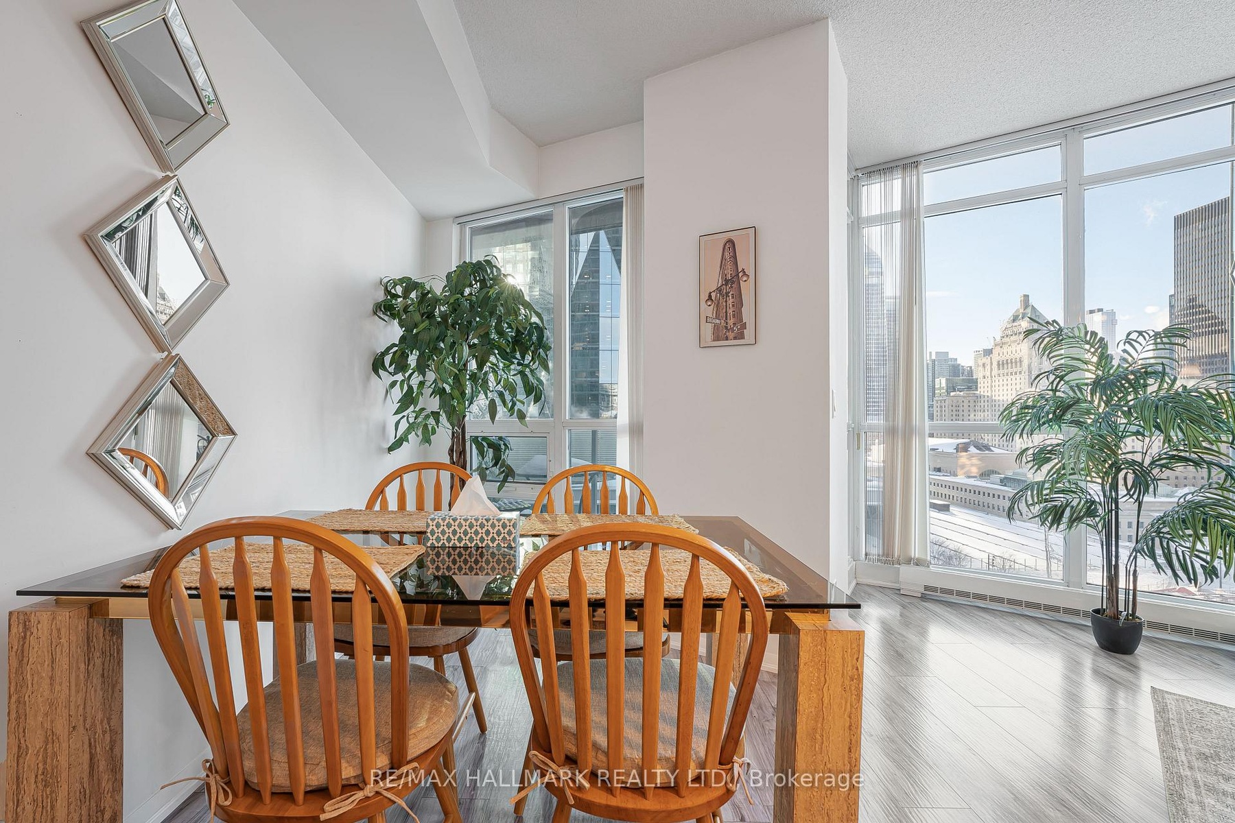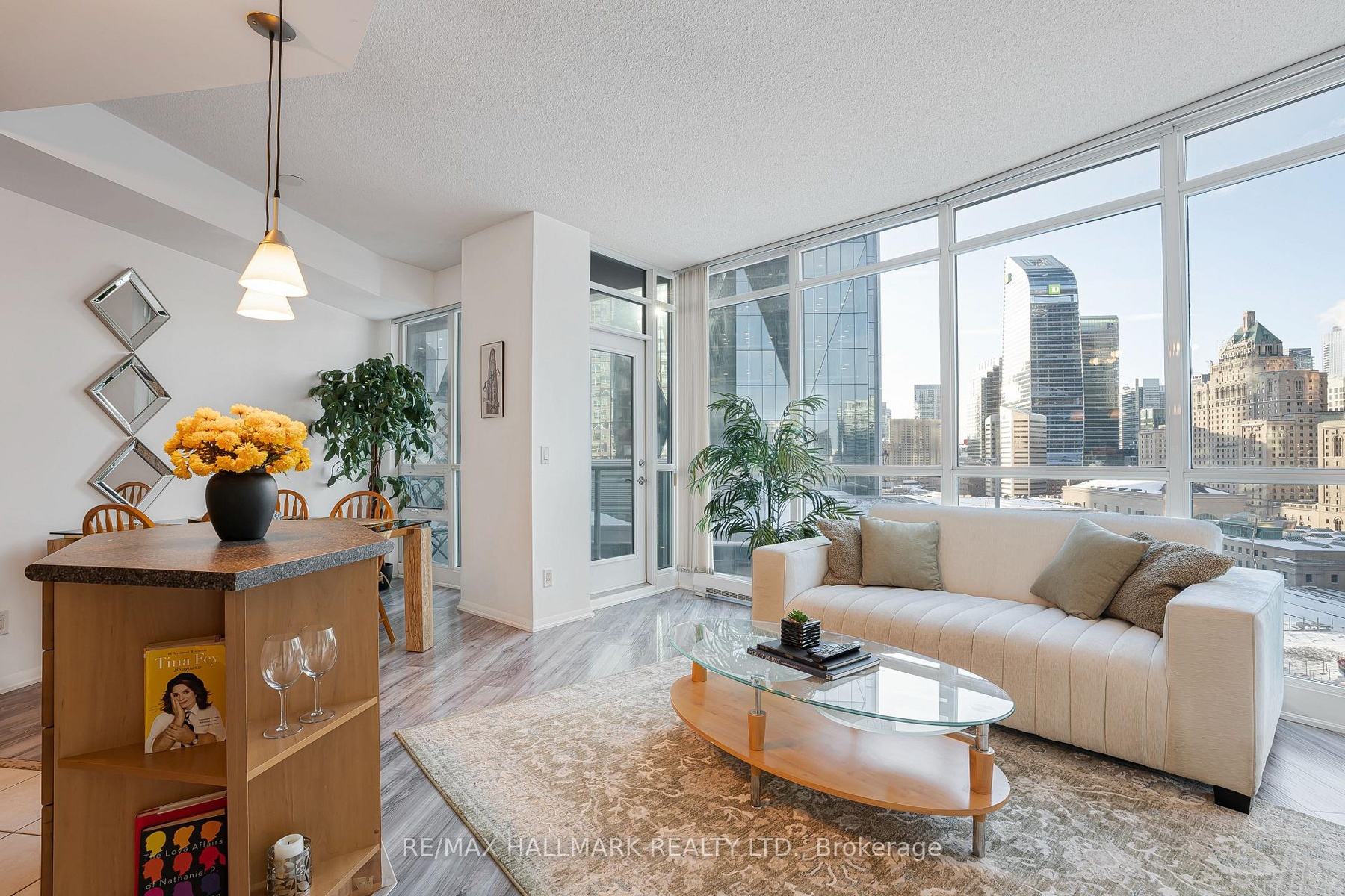 Bright and unique open concept suite featuring a spacious living and dining area withfloor to ceiling windows offering stunning city views.