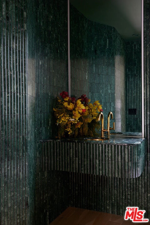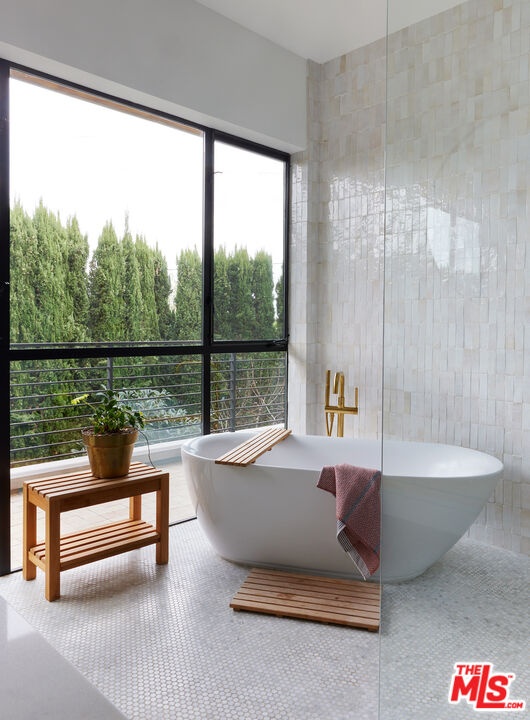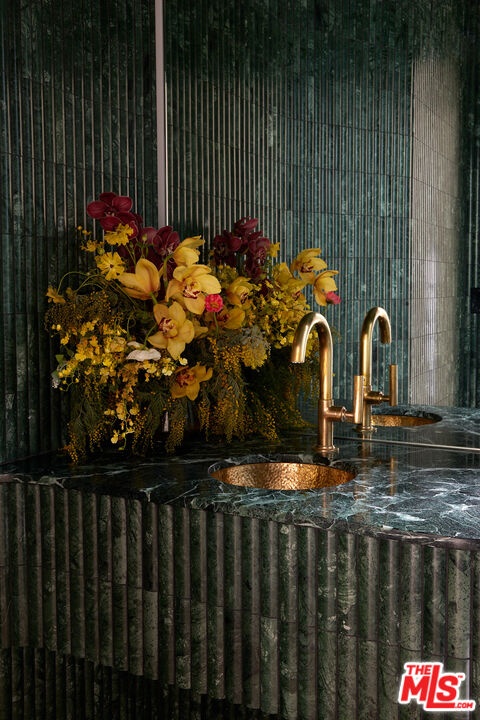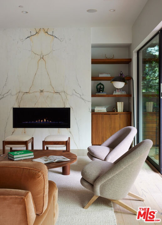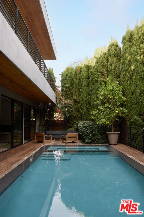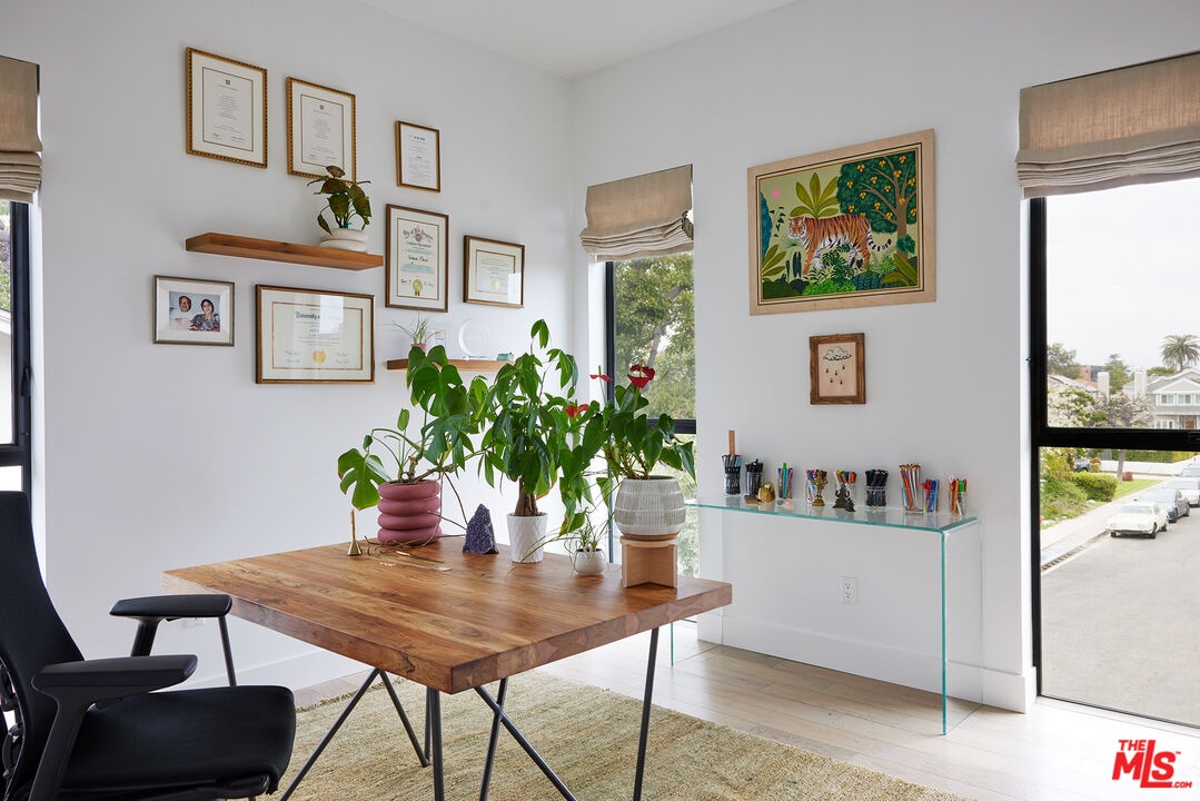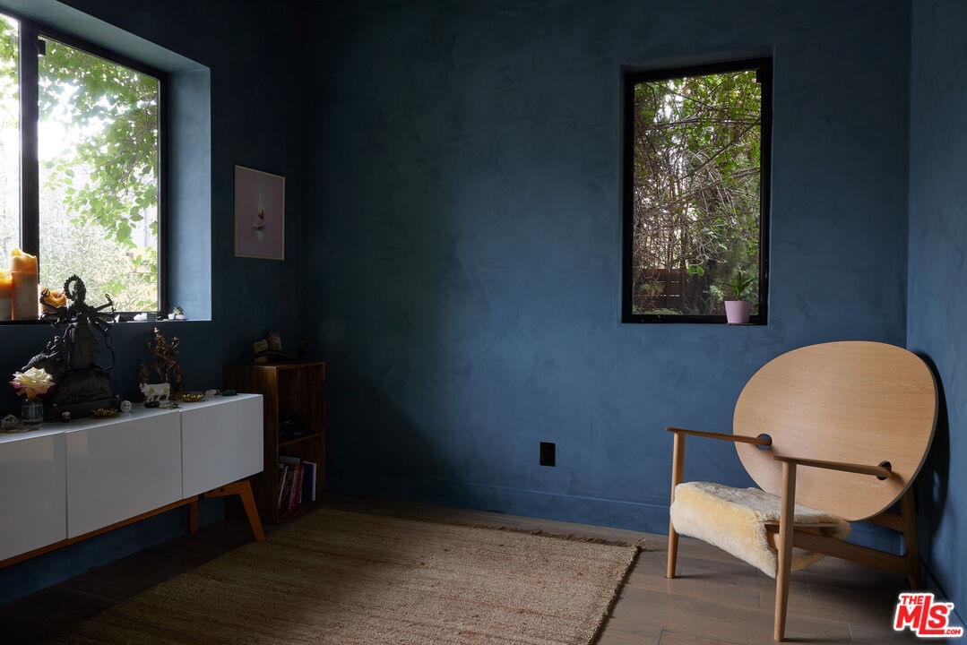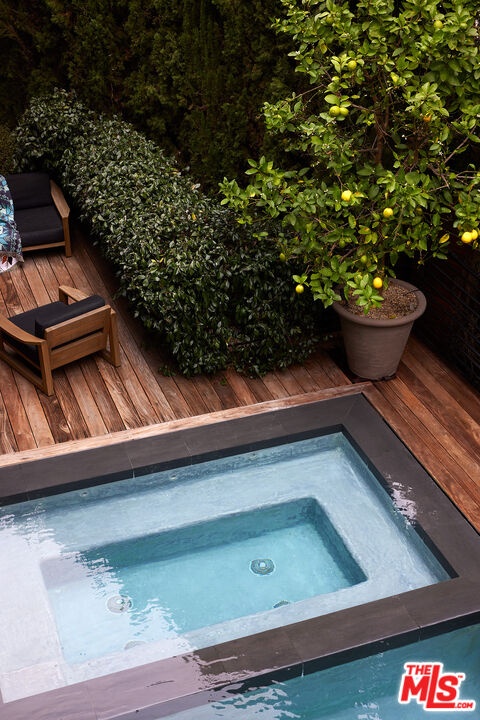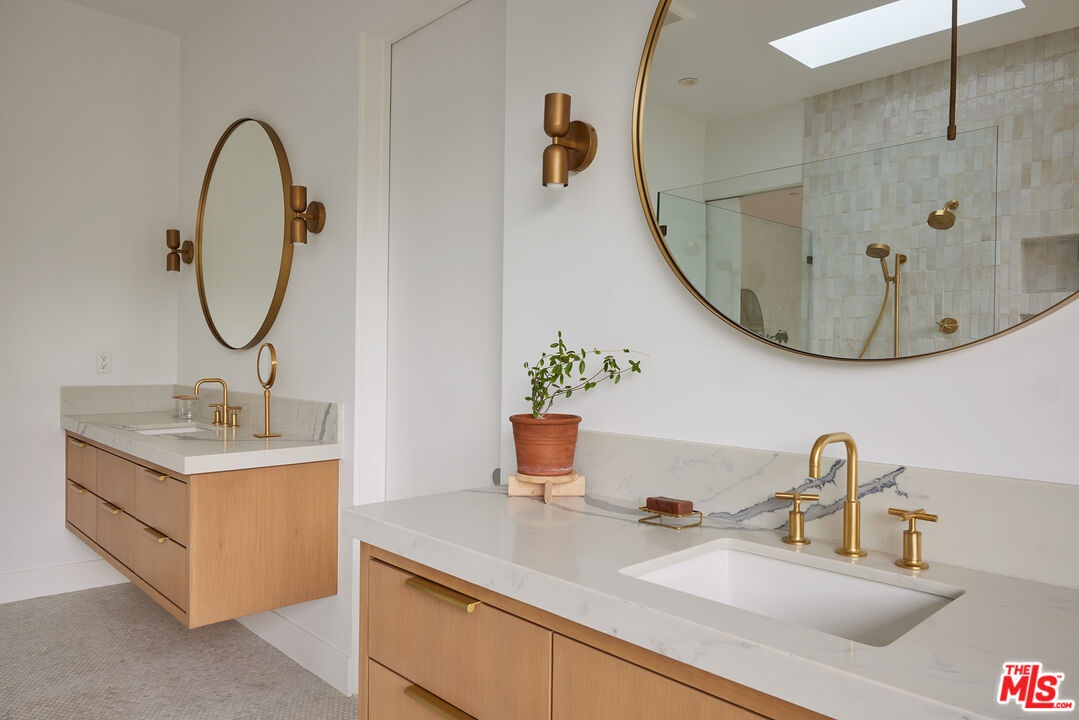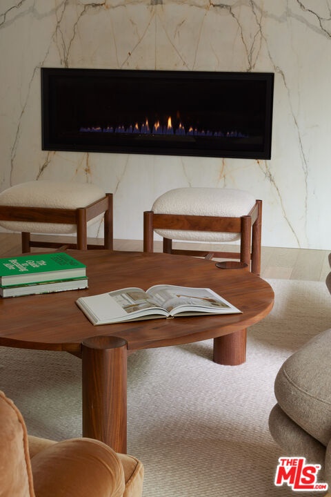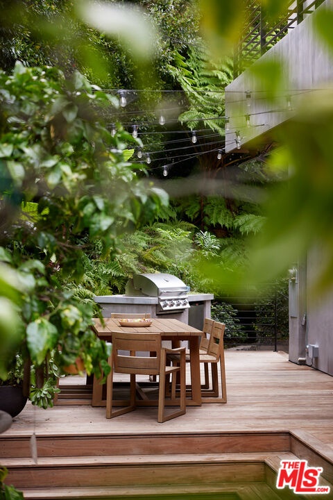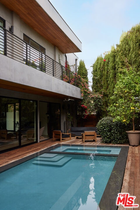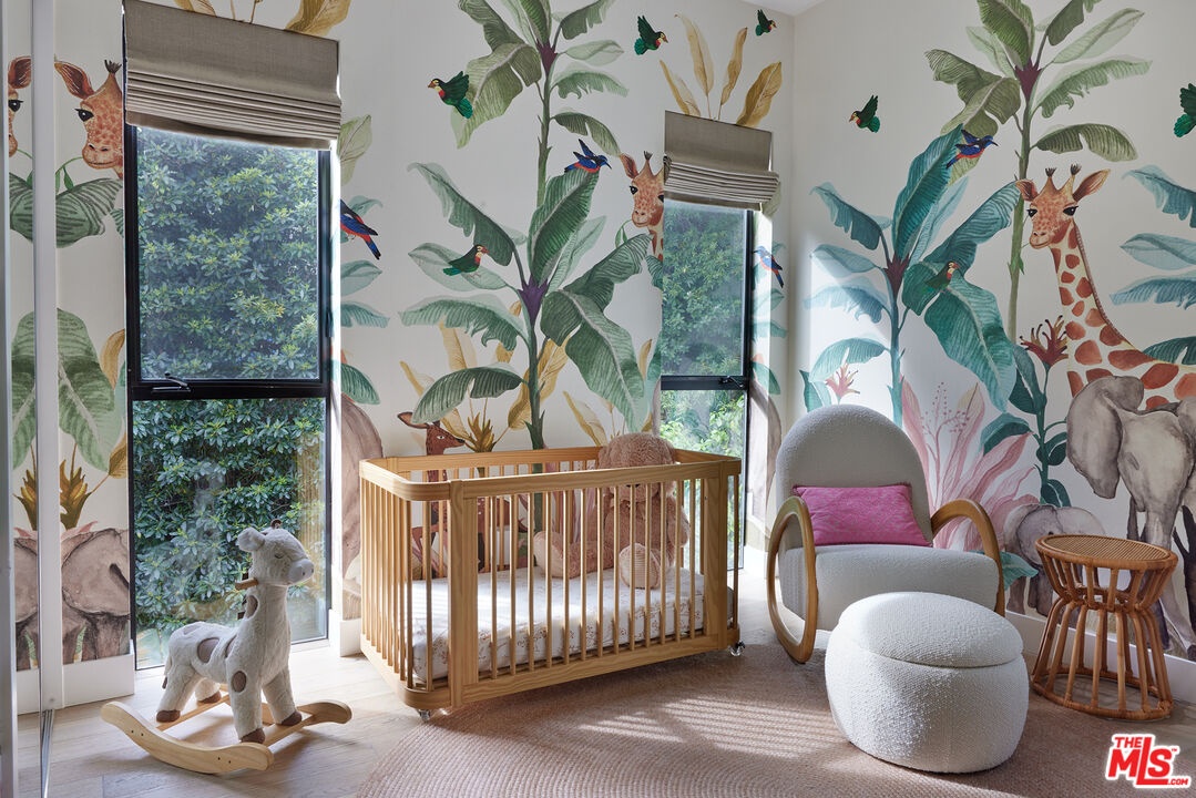 Tucked away at the end of a quiet, tree-lined cul-de-sac, this custom-built sanctuary feels like a private luxury resort designed for refined living. Surrounded by nature and designed with intention, the home envelops you in warmth and tranquility, blending rich natural woods, hand-selected stone, vibrant greenery, and soaring volume. Fleetwood doors and white oak floors dissolve to blend the indoors and out, inviting sunlight, gardens, and gentle breezes into every corner of the main living spaces. The living room, anchored by an oversized Carrera marble fireplace overlooks the sparkling pool and lush grounds, as do the open dining area and the chef's kitchen, an inspired space with a generous center island and walk-in pantry, perfect for both intimate meals and lively gatherings. A peaceful meditation room, striking malachite-inspired powder room, en-suite guest bedroom, and a thoughtfully designed coat and shoe closet complete this level. A floating staircase leads to an upstairs lounge with custom shelving to gather and unwind. The primary suite features a private balcony, fireplace, spacious walk-in closet and spa-like bath with soaking tub positioned with moon and star views. Three additional en-suite bedrooms and laundry room provide comfort and ease for family and guests alike. Relax poolside, lounge in the open-air living room, dine mindfully on the deck, or host intimate gatherings with the built-in grill and refrigerator, all surrounded by mature landscaping and peaceful garden views. Additional features including a security system, a whole-home water filtration system, and electric car charging ensure peace of mind and modern convenience, allowing you to fully embrace the lifestyle this exceptional retreat offers.