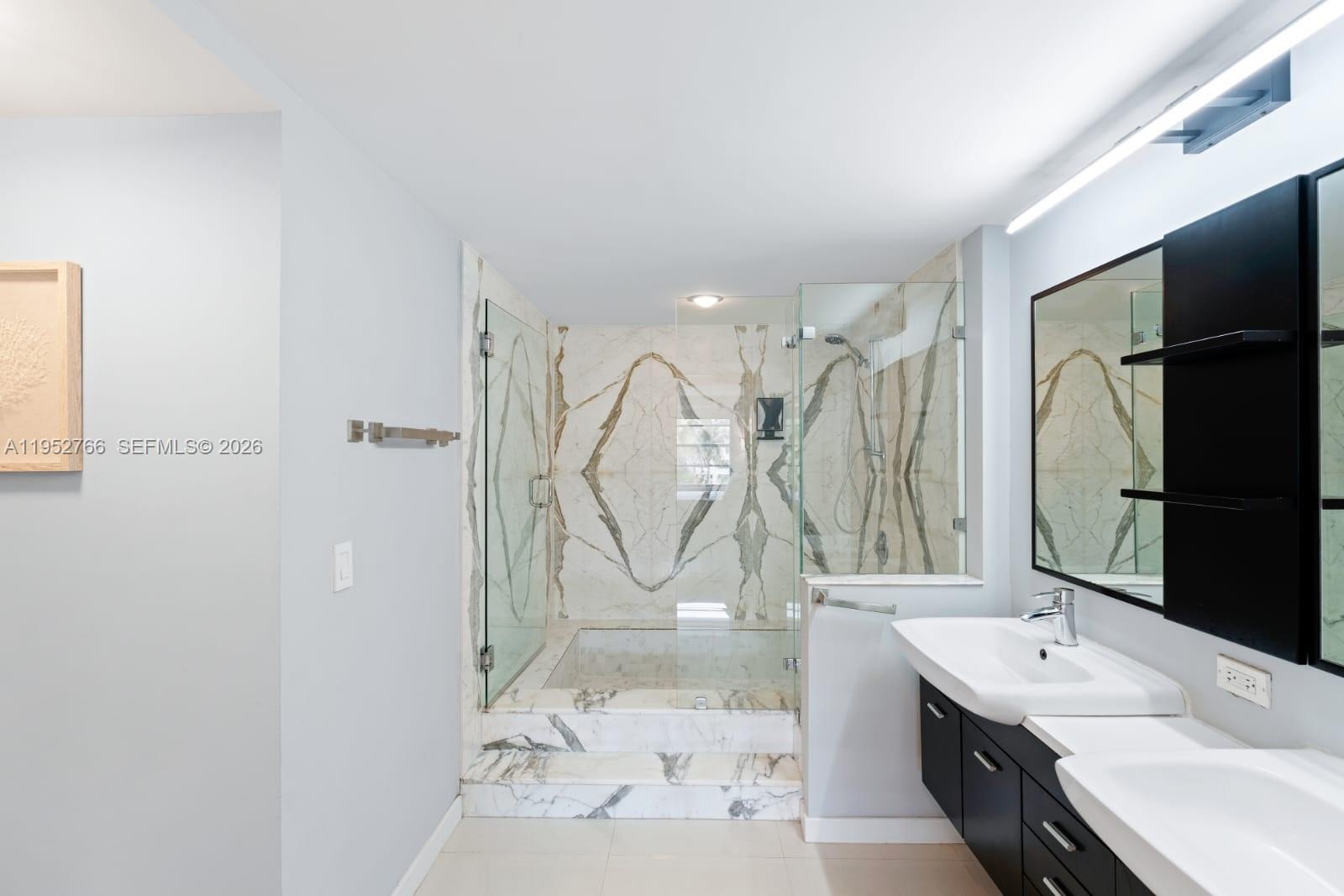 This completely renovated unit faces south and is full of natural light. It features a large balcony facing luscious and serene greenery. Excellent condition, all-porcelain floors throughout, open kitchen concept with granite countertops that enlarges the living and dining area. The primary bedroom has an en-suite remodeled bathroom with double sinks, walk-in closet and plenty of storage. Separate storage and laundry room steps away. One assigned, garage parking space. Commodore Club is a very well-maintained building with many amenities such as direct and private beach access where umbrellas and chairs are provided, tennis courts, a heated pool, exercise room, and community room.