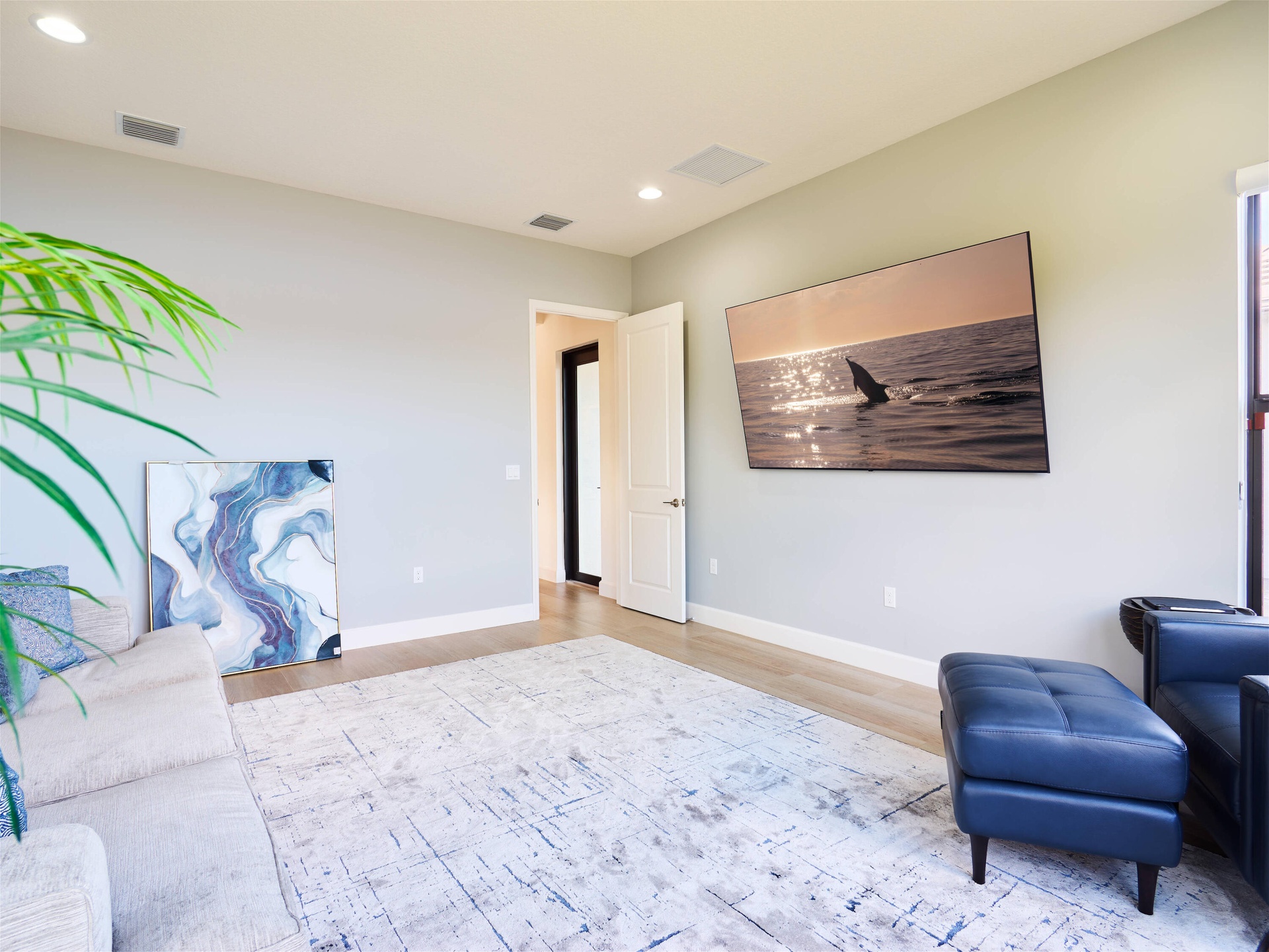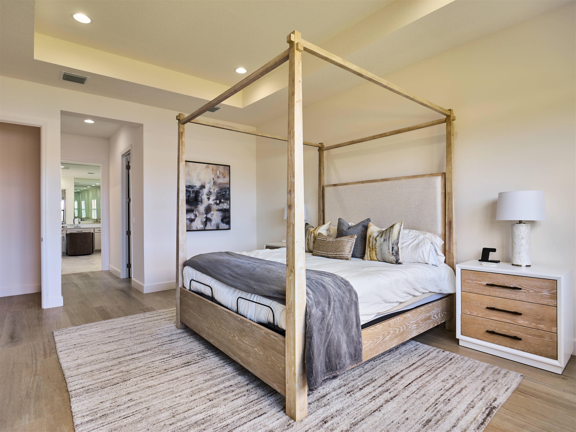 Experience the pinnacle of luxury living in this pristine Trivoli model, situated on a rare, oversized end lot with breathtaking long water views in Valencia Walk at Riverland. Built in 2023, this fabulous home features 3 spacious bedrooms, 4 full bathrooms, a versatile club room (potential 4th bedroom), and a dedicated den, all showcasing stylish wide-plank tile flooring throughout. Step inside to an expansive open-concept layout bathed in natural light, featuring high coffered ceilings with abundant recessed lighting. The gourmet kitchen is a chef's delight, boasting GE stainless steel appliances, sleek white cabinetry with soft-close doors, stunning quartz countertops, a natural gas stove with range hood, and a massive center island. The primary suite offers serene lake views and a a luxurious en-suite bathroom with dual quartz vanities, ceiling-high mirrors, a spa-like tub, and an oversized shower with floor-to-ceiling tile. Two generous guest suites, each with their own en-suite bathroom and walk-in closet, provide ample space and privacy for visitors. Premium upgrades include wide plank-tile flooring, custom master closets, a built-out laundry room, and professional epoxy garage flooring. Step outside to the large covered and screened patio to take in beautiful sunrises over the longest part of the lake, with plenty of room on the premium lot for a future pool. Located just steps from the clubhouse, residents of Riverland enjoy an unparalleled lifestyle within a 4,000-acre master-planned community. Enjoy access to a 16-acre Sports & Racquet Club, a 51,000 sq ft Wellness & Fitness Center, a 5-acre Arts & Culture Center, and future Town Center, making this an exceptional place to call home.