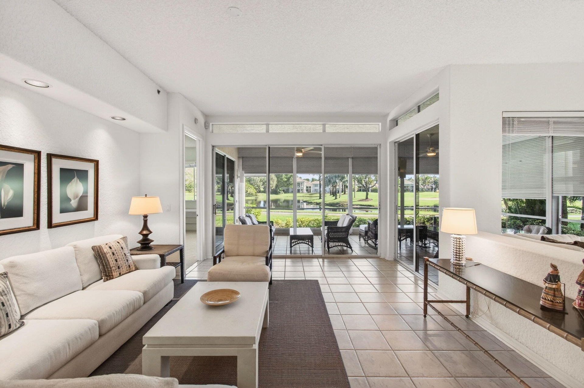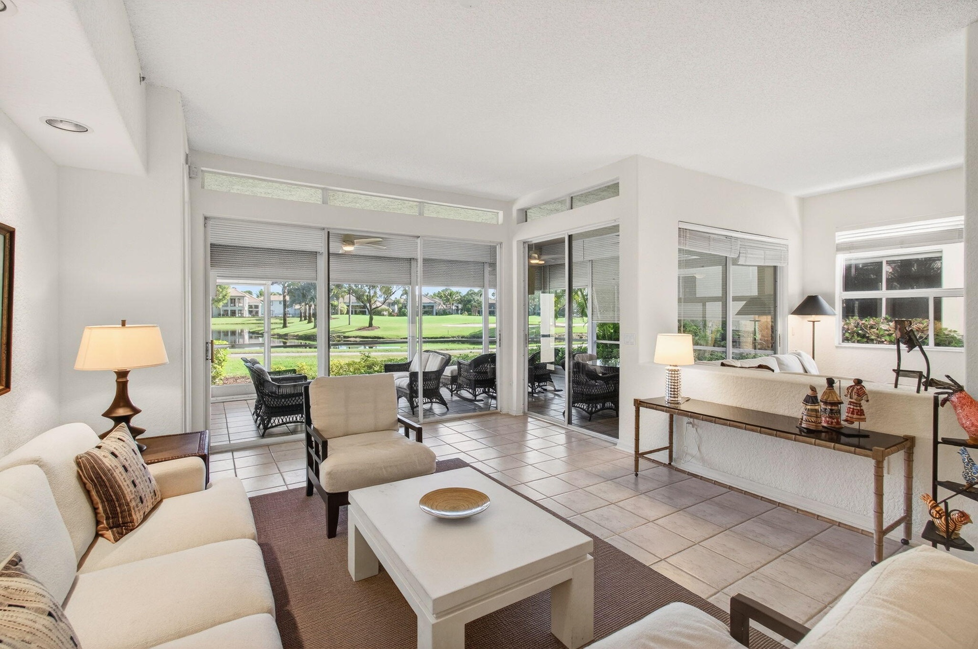 Welcome to this stunning first-floor 2-bedroom plus den, 2.5-bath condo offered as a seasonal rental with a club course golf membership in the prestigious Broken Sound Country Club. Enjoy breathtaking views of the lake and the 12th hole of the Broken Sound Club Course from your spacious screened patio—perfect for morning coffee or sunset relaxation. The bright white kitchen offers a clean, airy feel and opens to the main living areas, ideal for entertaining. The primary suite is a serene retreat with beautiful lake and golf course views, a large walk-in closet, and a spa-like en suite featuring a soaking tub and separate walk-in shower. A comfortable guest bedroom, versatile den, and additional baths provide ample space for family and guests. Located in the sought-after village of Bridgepointe, this home offers resort-style living at its finest just steps from world-class amenities, dining, and golf in one of Boca Raton's most exclusive communities. 5 MONTH MINIMUM LEASE