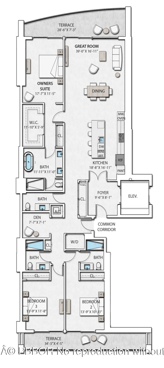 BRAND NEW DIRECT WATERFRONT. Experience elevated luxury living in this 3-bed, 3.1-bath residence at Nautilus 220. This expansive flow-through floor plan features 10' ceilings, hurricane-impact glass, Miele appliances, a wine cooler, European cabinetry, and a waterfall quartz island. Enjoy sunrise and sunset views from two private terraces. The primary suite offers stunning water views, spacious walk-in closets, and a spa-style bath with dual sinks. Residents enjoy unparalleled amenities across a one-acre amenity deck, including a resort-style pool and spa, fire pits, putting green, yoga deck, dog park, club room, cinema, golf simulator, guest suites, valet service, and 24-hour concierge. Indoor amenities include spin and yoga studios, sauna and steam rooms, bowling alley, theater, music studio, billiards and card rooms, kids' playroom, and teen gaming lounge. A rooftop lap pool and spa offer 360-degree panoramic views. Additional services include 24-hour onsite security and management, electric vehicle charging, and guest suites. With waterfront dining at SeaHawk Prime by David Burke, along with retail, offices, café, and private beach club access, Nautilus 220 delivers a complete luxury lifestyle. Pet-friendly. Lobby and amenities designed by Interiors by Steven G.