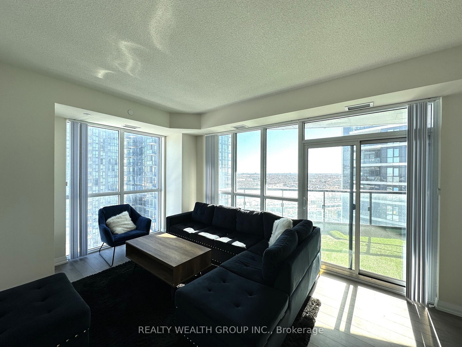 FULLY FURNISHED AVAILABLE with TV's in BOTH bedrooms and Living Room! Corner Unit 2 Bedrooms PLUS DEN, 2 Full Washrooms. RARE LARGE DEN! Primary Bedroom with His and Hers Closets and 3 Piece Standing Shower Ensuite. High End White Kitchen with Stainless Steel Appliances and Large Island with Double Undermount Sink. Large Secondary Bedroom. Full Size Laundry Machines. Large Balcony. Located In The Heart Of Mississauga! High Rise Building With A Picture Perfect View. Spacious Rooms With Amazing Open Sun-Filled Space This Luxury Unit Comes W/ Top Of The Line Finishing & Contemporary Design. Space, Style & Functionality Come Together To Make It A Great Place To Live. Location Is Perfect For Easy Access To All The Highways 407,401&403, Nearby Go Transit. Plenty Of Shopping Around & Square One Mall