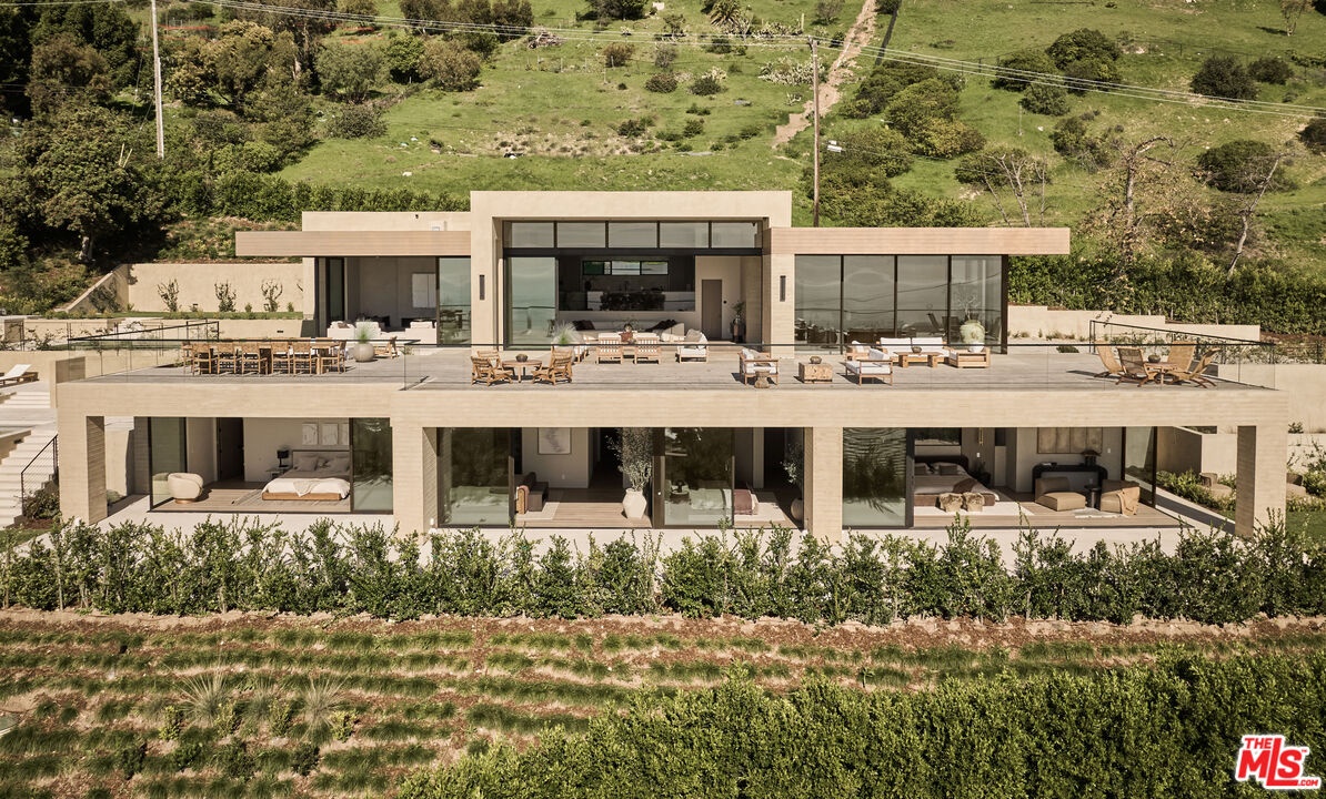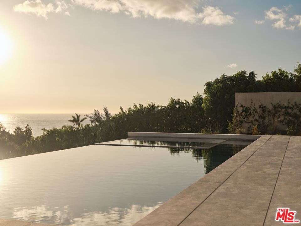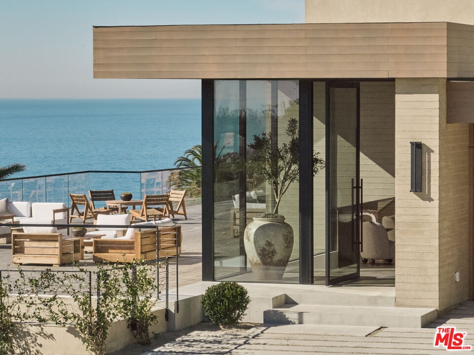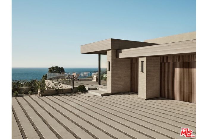 Introducing this exceptional new construction organic modern architectural home, featuring interior design by Atana Collective and built by Aksel Development, known for their custom homes and commitment to distinctive residences. Situated on 1.25 acres, this property features well over 10,000 SF of interior and exterior entertainment space, featuring 5 bedrooms and 7 bathrooms. The gracious family and living room showcase 12-15 foot ceilings with walls of glass that open to an expansive Golden Balau exotic hardwood deck offering whitewater ocean vistas. White oak flooring and ceilings throughout, paired with solid walnut interior doors and walnut-oak cabinetry, create a warm, soothing contemporary ambiance. The gorgeous chef's kitchen includes a large center island topped with leathered Taj Mahal Quartzite stone, Miele appliances, and a spacious walk-in pantry. The ocean-view primary suite features walls of glass leading to a private terrace, a fireplace, and a luxurious bath with dual sinks and closets, a floating tub, and a large walk-in shower with sliding doors to the outdoors. Three additional ocean-view bedroom suites are located on the lower level, while the wellness lounge offers a fitness center, sauna, steam room, massage room, and bar. Outside, an ocean-view infinity pool and spa adjoin the main living area, complemented by ample grassy yard space, an outdoor kitchen, and two fire pits. A large motor court provides for an entertainer's dream, with plentiful parking alongside a spacious 3-car garage offering direct access to the over 3,000 SF deck, all enhanced by a Control 4 smart home system, camera security, and built-in speakers throughout.