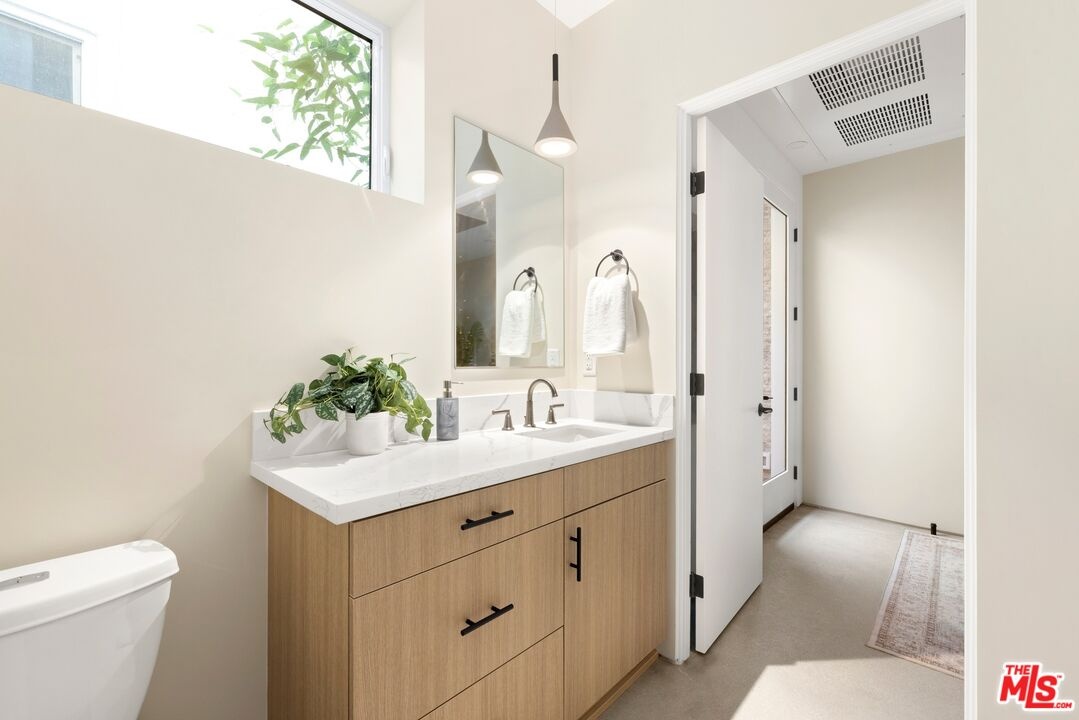 Presenting this 2025-built townhome with a large private rooftop, expertly crafted with utmost quality and appointed with fine finishes throughout. Large picture windows welcome light into the spacious living room, as wood planks overhead add dimension and style to the space. Smooth polished concrete floors flow into the designer kitchen, complete with quartz countertops, subway tile backsplash, and state-of-the-art appliances including a Viking range with custom hood. Upstairs, the primary bedroom includes an en-suite bathroom with dual-sink vanity and oversized rainwater shower with ledge as well as a walk-in closet with built-ins. Convenient to the bedroom levels are two Juliet balconies as well as stackable laundry. From the private, dedicated rooftop, enjoy striking views of the Santa Monica Mountains and Hollywood Hills, the iconic Hollywood Sign, treetops, and vast, sweeping cityscape. Under calm California skies, relax and entertain guests, barbecue, and dine al-fresco. Parking is controlled-access and subterranean, and each townhome has solar. Welcome to a fresh lifestyle at The Ten11, a set of five newly completed townhomes located in prime West Hollywood just moments to shopping along Melrose, The Grove, Original Farmers Market, nightlife, restaurants, and more. Photos are of a similar unit.