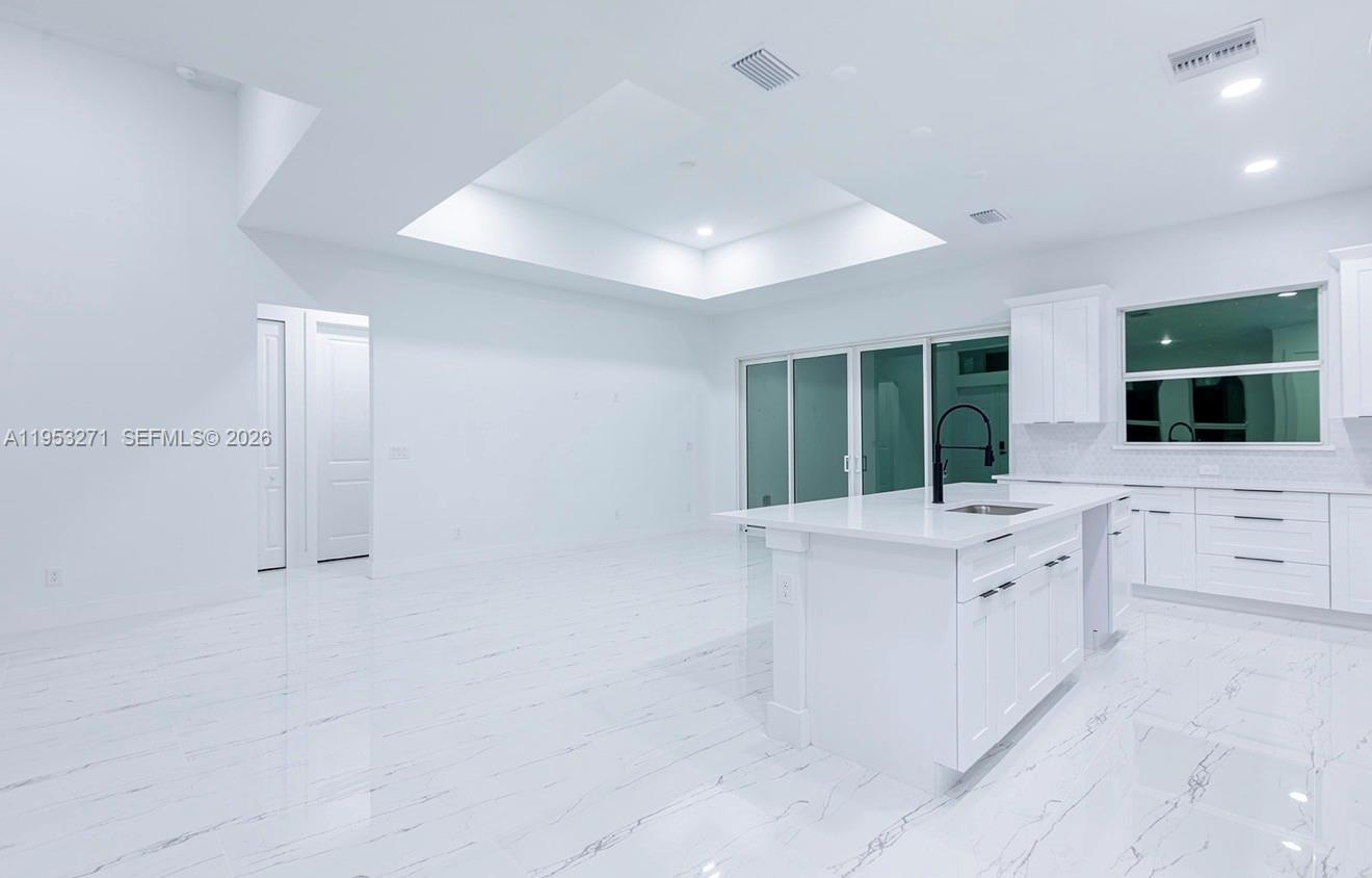 The heart of the home is the open-concept modern kitchen, showcasing elegant quartz countertops, clean contemporary lines, and a seamless flow perfect for entertaining. Throughout the home, you’ll find 16x48 rectified porcelain tile flooring, delivering a sleek, high-end aesthetic and a sense of spacious continuity
