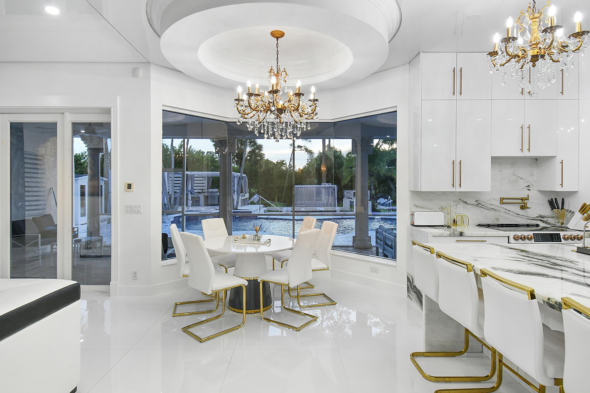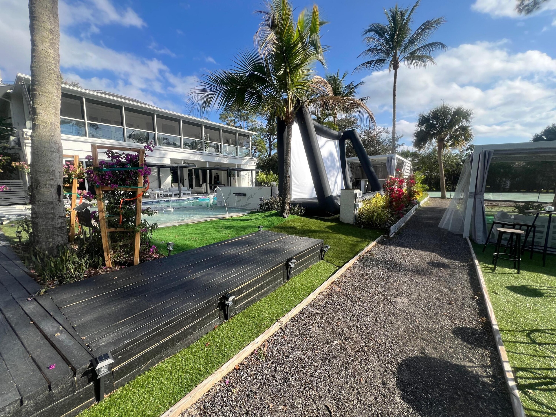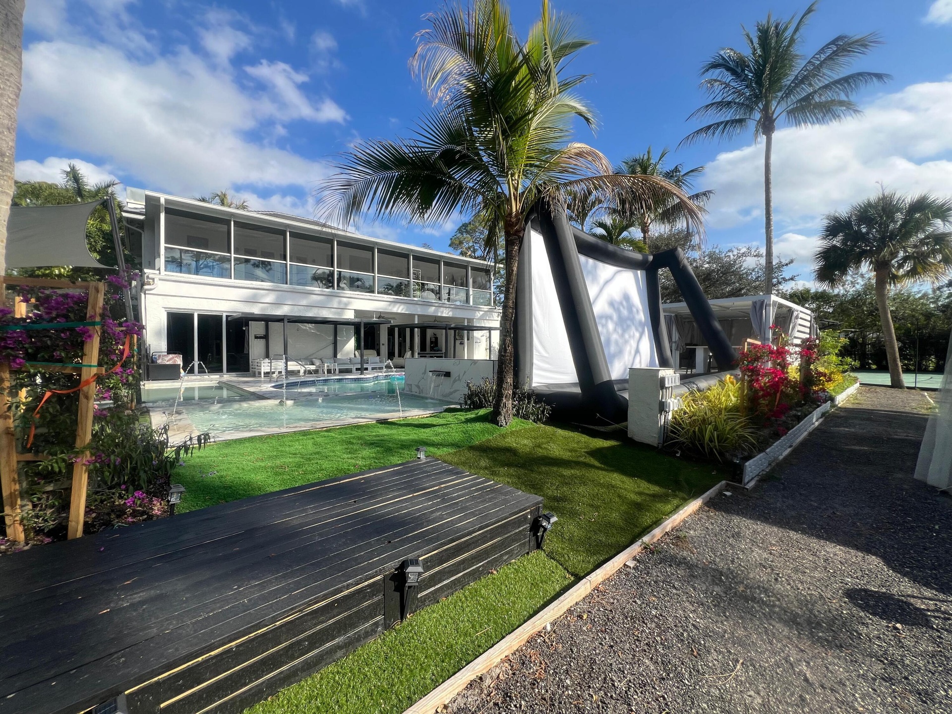 Luxury paradise residence located on the quiet area in Paddocks. House loaded with everything that you need in season to feel yourself at home. Outside resort style: 3 pools (adults, kids, dogs). Outside fireplace wall and pit, big kitchen, koi pond, sauna with Himalayan salt. Tennis court, dog park, children town, garden, outside movie theater. On a backyard golf court. Inside 6 luxury bedrooms, each one includes bathroom and closet. Two fireplaces in living areas, electric and Woodburn. Dining room for 12 people has beautiful bar area. 3 different coffee machines, 3 living room areas, everyone can find his nice place to relax. We can provide different type of beds for 11-14 guests. 3-minute drive to WEF. 1,5 acres of land.