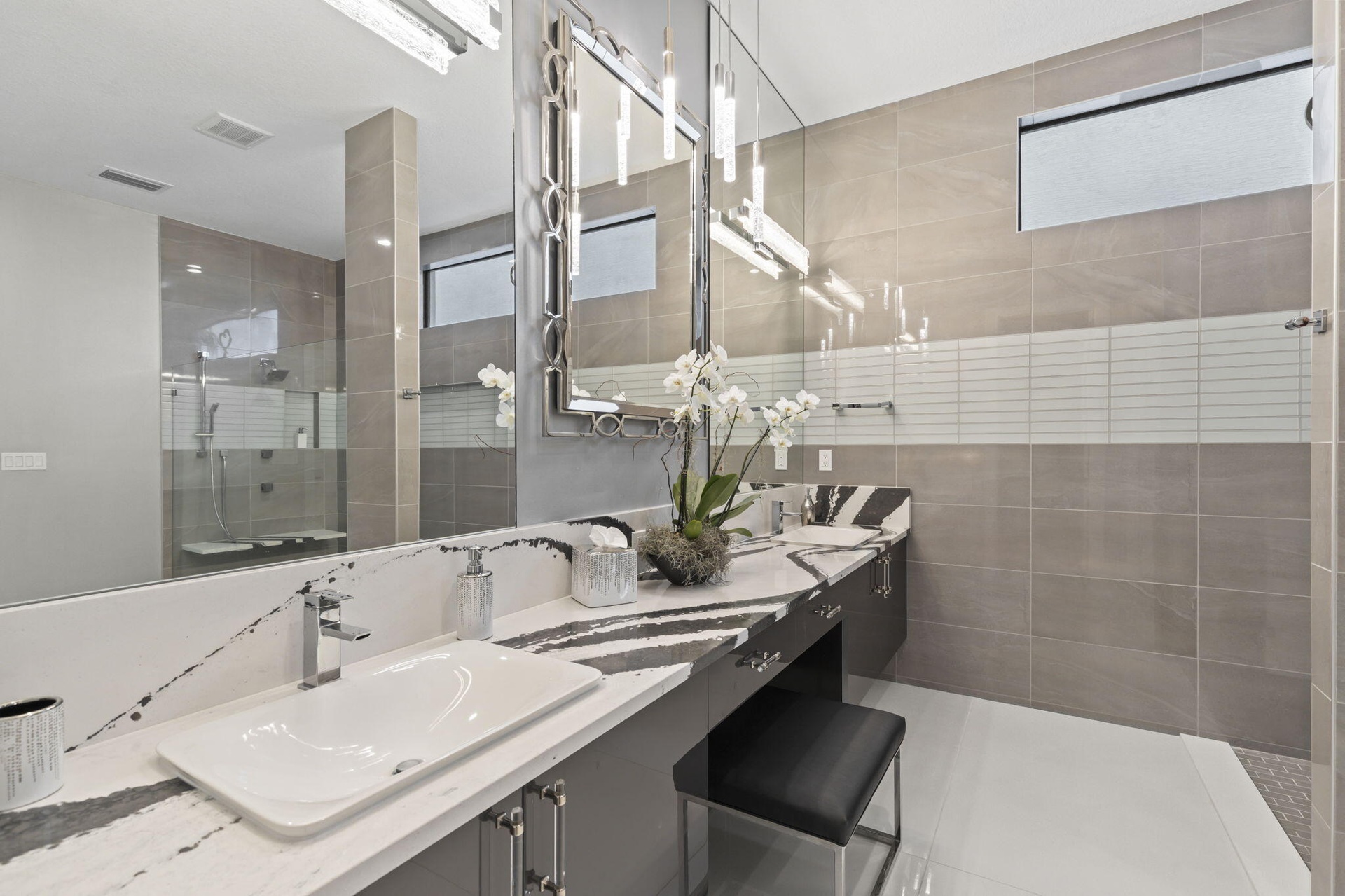 Expansive sliding glass doors open to a covered Lanai and tropical backyard oasis centered around a resort-style pool and spa, brand-new custom fire pit, a gourmet summer kitchen, powered screens creating effortless indoor outdoor entertaining year round. Enjoy serene lake views in complete comfort and privacy. No expense has been spared, designer upgrades featuring impressive chandeliers, unique wallcoverings and custom window treatments.