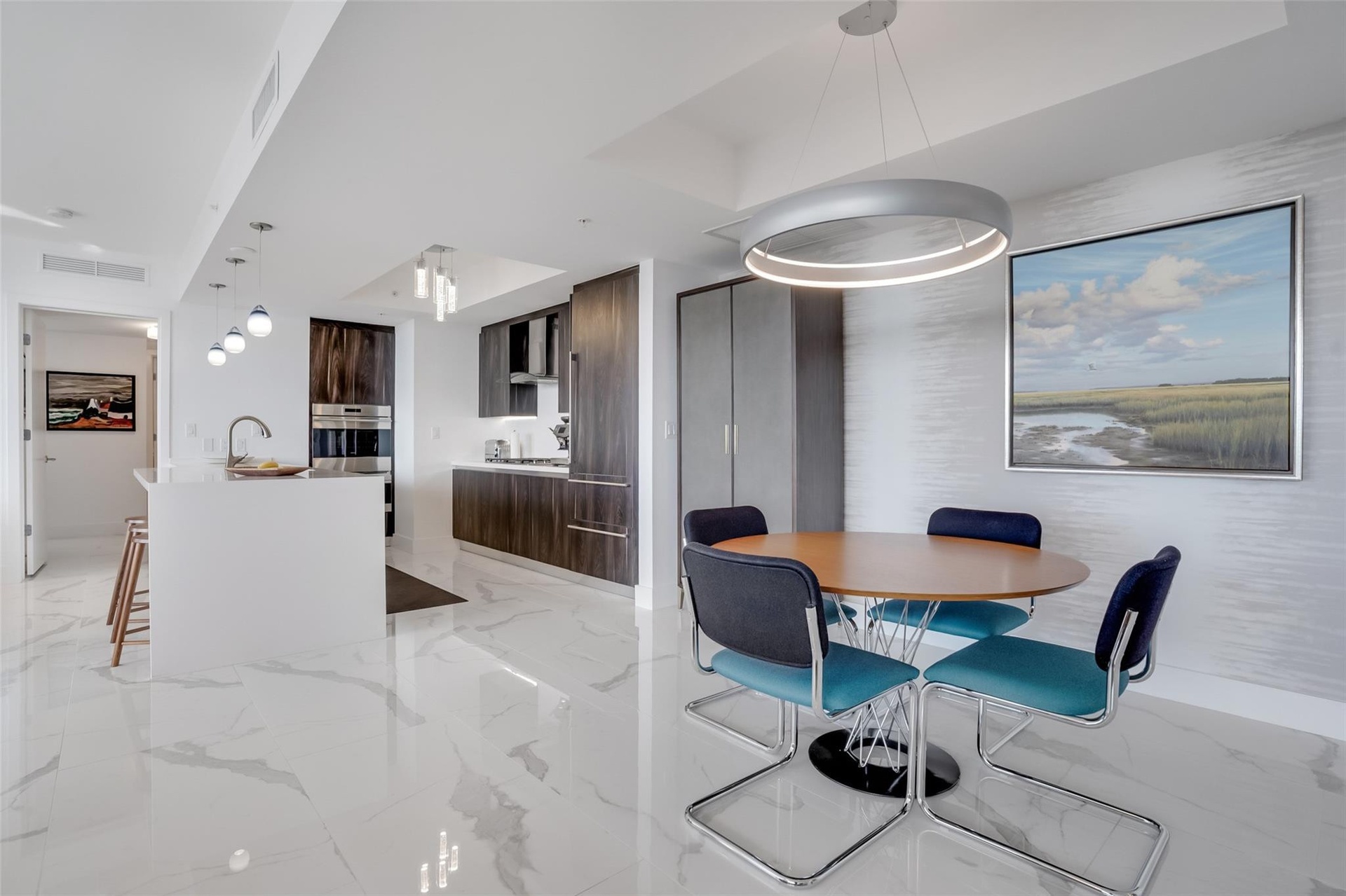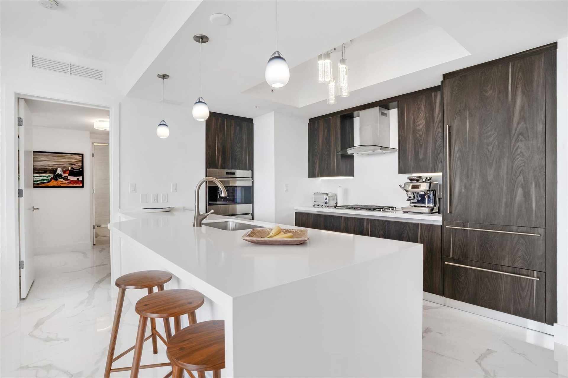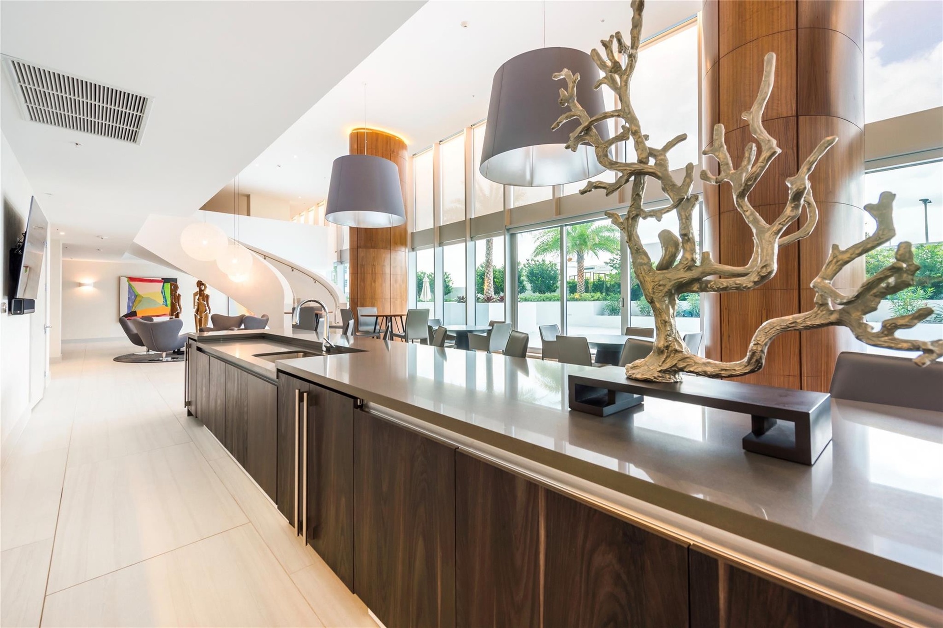 Sophisticated urban retreat with dramatic sunset & city views. Elegant 2 bed + den residence defined by a remarkable 72-foot terrace with summer kitchen. Ideal for evening gatherings and golden-hour moments. Inside, refined European design meets modern comfort w/ sleek Italian cabinetry + a chef-inspired kitchen featuring Sub-Zero & Wolf appliances,including a gas range. Walk-in closet, in-residence laundry, two parking spaces + two private storage units. Set within a premier waterfront building with a private marina, residents enjoy over 40,000 sf of resort-style amenities including a waterfront pool, wellness spa, state-of-the-art fitness center, yoga + Pilates studios, resident lounges, chef’s entertaining kitchen, & guest suites. Elevated living with a relaxed Fort Lauderdale rhythm.