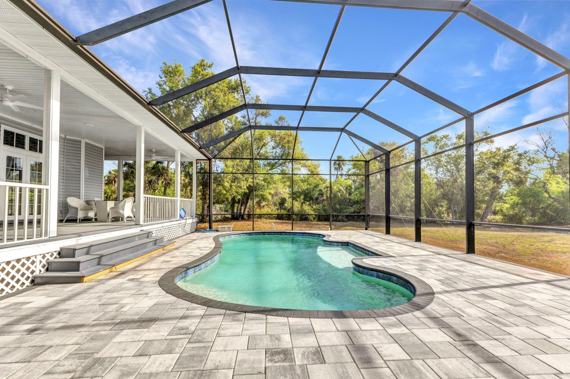 Seize the chance to own a magnificent Florida-style gulf-access, pool home, 2.8 acres on private Alligator Creek. This is your exclusive paradise! **CAR ENTHUSIASTS! This luxury property boasts a 6+ car garage/steel building. The 32x46 steel workshop, recently added is a stellar place for your workshop, enough room for car lifts, toys, and even RVs. Store your most prized collectible cars, recreational vehicles, workshop equipment, or anything you can imagine with peace of mind. This huge space has ample storage, lighting, electrical, and even an office built inside! The rear garage door to the front door connects your driveway to the additional covered parking in the rear of the property! Imagine relaxing on your wraparound front porch, surrounded by majestic oak trees in the highly sought-after Punta Gorda area. This remarkable residence boasts nearly 2,800 square feet of luxurious living space and a total of 5,433 square feet, providing ample room for you and your loved ones. Not to mention, it is like living on your own private island with three sides of your land surrounded by water! The main home features three spacious bedrooms plus a dedicated office, making it perfect for both family living and entertaining. The inviting family room with a warm inviting fireplace, ideal for hosting memorable gatherings. Picture yourself in a large kitchen that showcases an island, two sinks, and a commercial gas stove, all while enjoying breathtaking views of your stunning property. Among its many impressive attributes, this home includes a 500-gallon propane tank to power the tankless hot water heater, stove, and fireplace. Enjoy the convenience of a central vacuum system throughout, and retreat to the luxurious master suite, featuring a generous walk-in closet and a beautifully remodeled bath. With two newer air conditioning units and spray foam insulation, you’ll experience comfort year-round. As you step through the front door, you are greeted by a welcoming foyer. To your right, you'll find the expansive master bedroom and a private, magical en-suite bathroom. Continuing through the home, you’ll discover a cozy family room, a spacious kitchen, a dedicated office, a formal dining room, and a practical laundry room. Upstairs, two more guest bedrooms, a newly updated bathroom, and a charming sitting area or extra loft space await your guests. The outdoor space offers a fantastic entertaining area around the pool, with brand new decking just completed in 2025, accessing your wrap around porch from the back of the home all the way to the front of the home, and encompasses 2.8 acres of serene land along Alligator Creek, which flows directly to the Gulf. A kayak launch is perfectly nestled on the side yard, for your exploration afternoons! If you have any furry friends, they will have their own house to enjoy, already built in the backyard, with its own fenced-in area. And last but not least, the adorable treehouse, made with materials from the main home to match. What a great place to hide out, have an additional office space, she-shed, or a night under the stars. Don’t let this opportunity slip away, this property is unparalleled to anything you have yet to see!