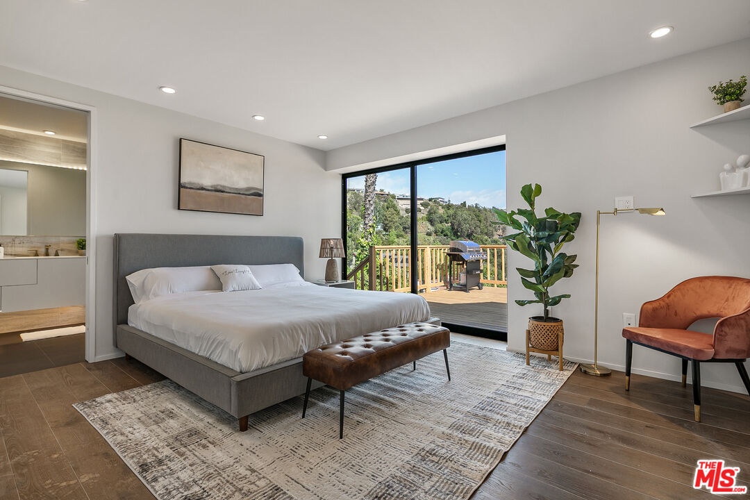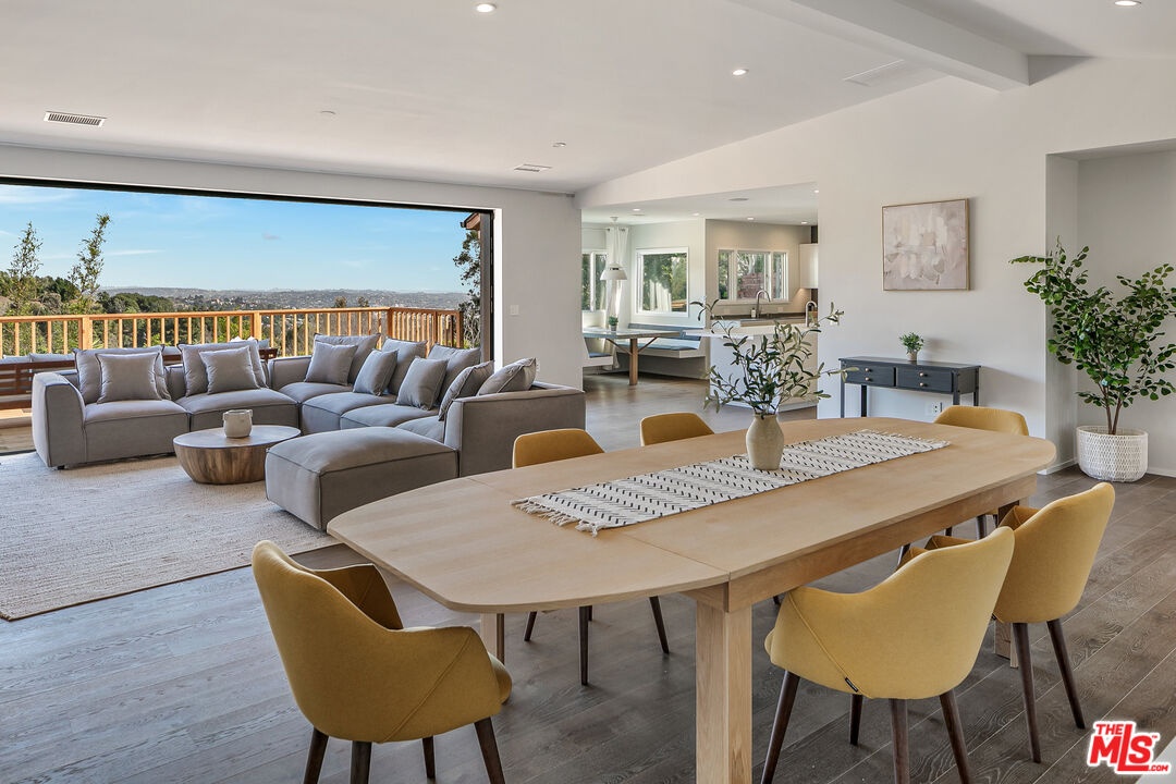 Tucked away on a quiet cul-de-sac above iconic Mulholland Drive, this newly remodeled, fully furnished Hollywood Hills retreat unfolds like a private escape suspended above the city. Framed by canyon ridge lines and glittering skyline views, the home captures Los Angeles at its most cinematic serene by day, luminous by night.Sunlight pours into an open, flowing interior where wide-plank wood floors and clean architectural lines create a sense of warmth and calm. Expansive glass walls slide open to a generous outdoor deck, blurring the line between inside and out and setting the stage for sunset dinners, slow mornings, and evenings spent watching the city glow below. The chef's kitchen is both refined and effortless, designed to anchor the home with sleek cabinetry, integrated appliances, and an understated elegance that invites gathering without pretense. Every space feels curated yet livable, with a cohesive palette and thoughtful details that elevate the everyday. Three tranquil bedrooms offer privacy and flexibility ideal for guests, creative pursuits, or a dedicated home office while spa-inspired baths echo the home's modern, relaxed sensibility. Outdoors, the elevated deck becomes an extension of the living space, a front-row seat to sweeping canyon vistas and the rhythm of Los Angeles beyond.Privately positioned yet moments from Hollywood, Studio City, and the cultural pulse of the city, this is more than a residence it's a lifestyle defined by light, views, and quiet sophistication, offering a rare opportunity to experience the Hollywood Hills at its most refined.