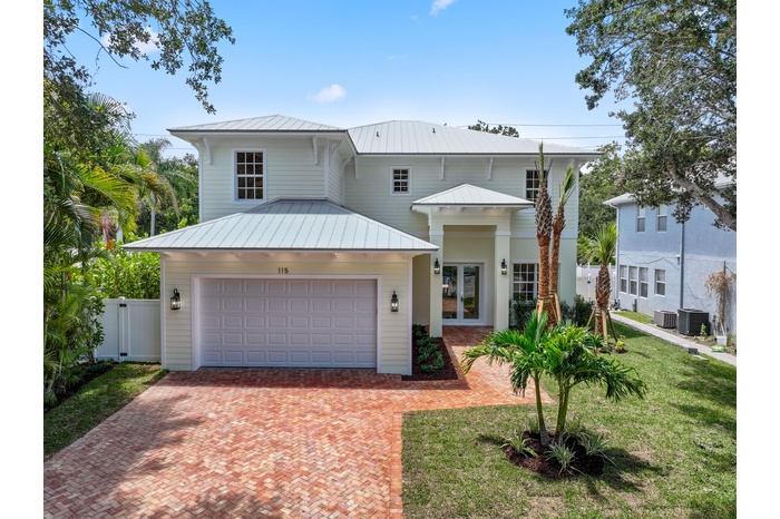 2025 Brand New Construction Two-Story Pool Home in the gated community of the Estates of Sims Creek, in Jupiter, FL. One of just 7 properties nestled on a peaceful cul-de-sac, this Key West-style residence sits on a 0.20-acre lot and features 4 bedrooms, 3.5 bathrooms, a study, media loft, playroom, 2-car garage, pool, spa, and a putting green! Offering 3,350 square feet of thoughtfully designed open living space, a first-floor Master suite, soaring ceilings, abundant natural light, and high-end finishes throughout. Enjoy close proximity to restaurants, grocery stores, retail shops, A-rated schools, parks, beaches, golf courses, and more! Just 1.5 miles to I-95 and the Florida Turnpike, and a 25-minute drive to Palm Beach Int'l Airport. See supplemental remarks! Upon entering through the glass double entry doors, you're welcomed by ceilings that extend to the second floor, accented by decorative railings, statement chandelier, and a top-of-the-line kitchen featuring smart Monogram appliances, beautiful Quartz countertops on the kitchen island, and a spacious Great Room overlooking the covered patio and pool. The first floor also offers access to the master suite, study, half-bath, walk-in pantry, laundry room with garage entry, and additional storage beneath the staircase. The luxurious main-floor master suite includes walk-in his-and-her closets and a beautifully appointed master bathroom with a private water closet. Double sliding impact glass doors lead to the expansive patio, where you'll enjoy a 15' x 26' salt-chlorinated pool with sun shelf and spa, summer kitchen, and putting green. Upstairs, leads to three additional bedrooms, one en-suite bathroom and the other two bedrooms sharing a full bathroom, along with a media loft, playroom, and covered balcony!