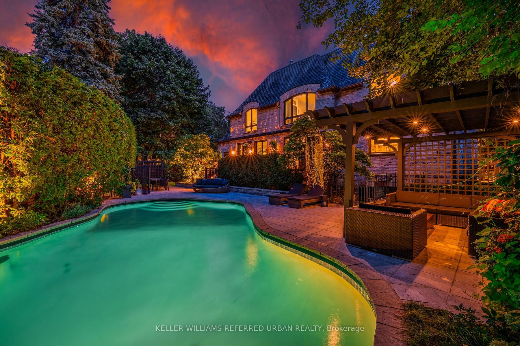 An exceptionally rare opportunity to acquire one of the largest and most distinguished residences in Lawrence Park, set on a coveted 82-foot-wide lot offering remarkable space, privacy, and presence. This Indiana limestone and reclaimed brick estate features a heated circular driveway, landscape lighting, and a three-car tandem garage with built-in cabinetry. Offering nearly 9,000 sq. ft. of total finished living space, the home delivers an outstanding, family-friendly layout with 5+2 generously sized bedrooms. The upper level includes a family lounge ideal as a children's study or additional office, while each bedroom enjoys its own ensuite with radiant in-floor heating. Inside, a grand foyer welcomes you with a formal living and dining room, a custom mahogany office, and an expansive rear living area complete with a chef's kitchen, servery, breakfast room, and a spacious family room with gas fireplace and built-in library, all seamlessly connected to the backyard. The private outdoor oasis is beautifully landscaped and centred around a heated saltwater pool with cascading stone waterfall, pergola with gas fire pit, irrigation system, and ambient lighting, perfect for both everyday enjoyment and entertaining. The true showstopper lies below a hidden speakeasy-style bar and private, fully soundproofed cinema, concealed behind custom millwork, designed for unforgettable movie nights, sophisticated soirées, and legendary kids' birthday parties. The lower level also includes a rec room, private gym, wine cellar with tasting area (awaiting customization), and two additional bedrooms ideal for guests or in-laws. Steps to Toronto French School, Cheltenham Park, and the Granite Club, homes of this caliber in this exclusive Lawrence Park enclave are rarely offered.