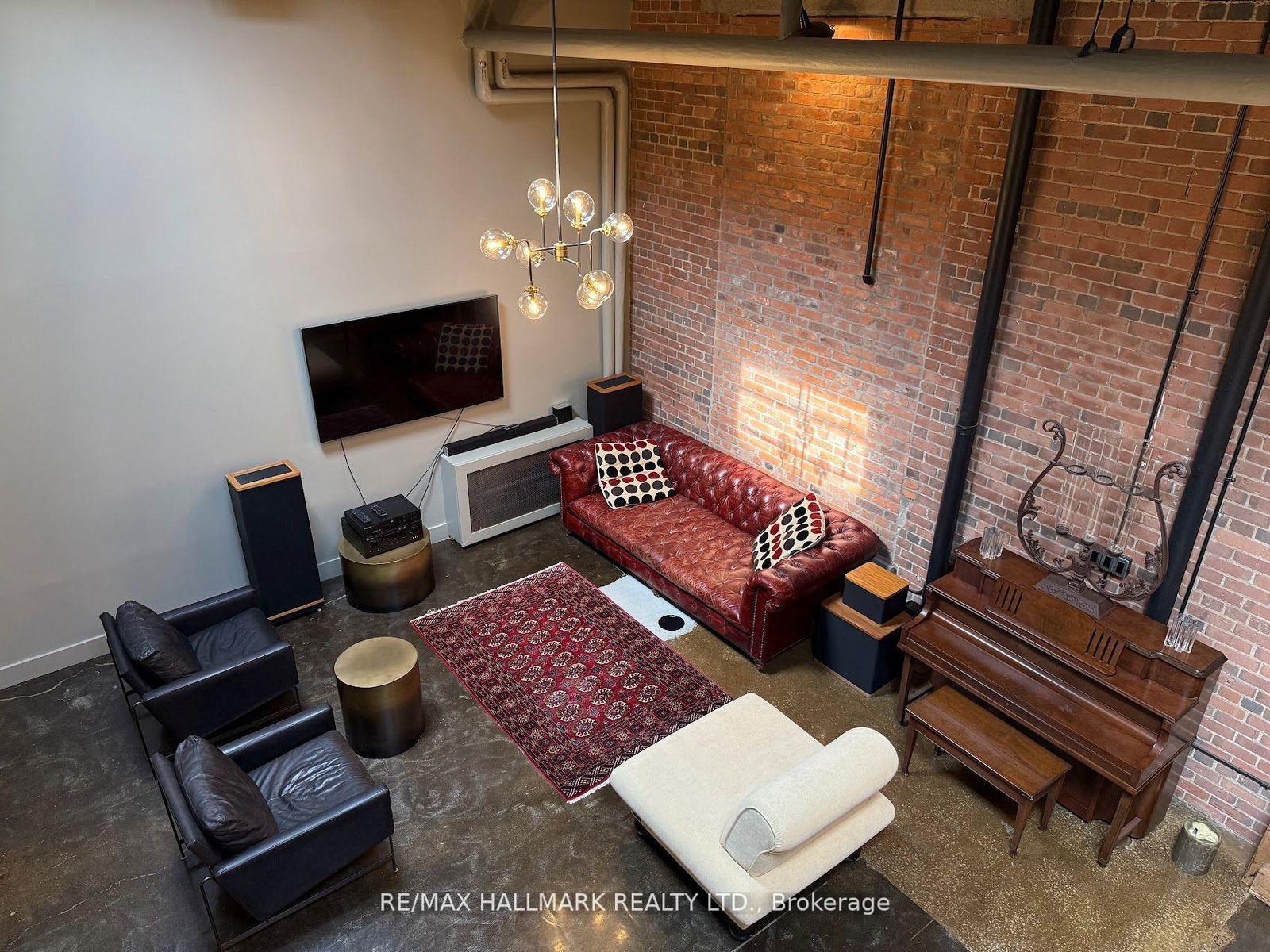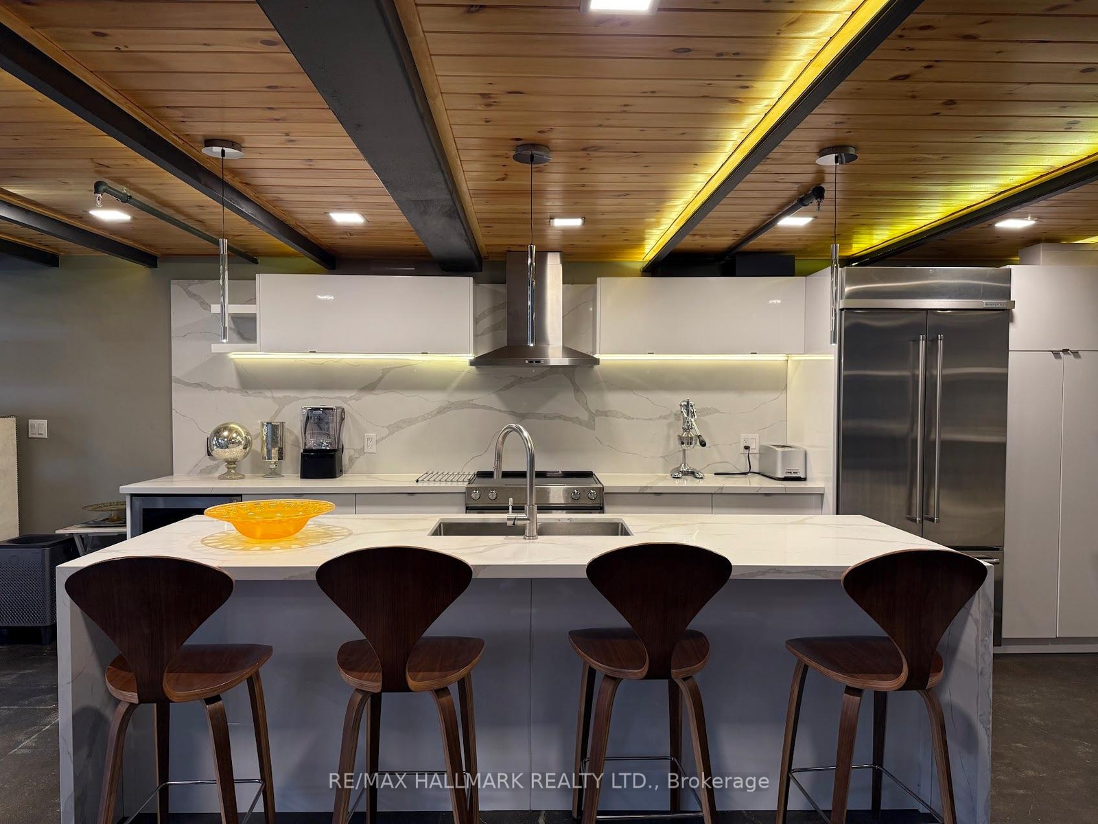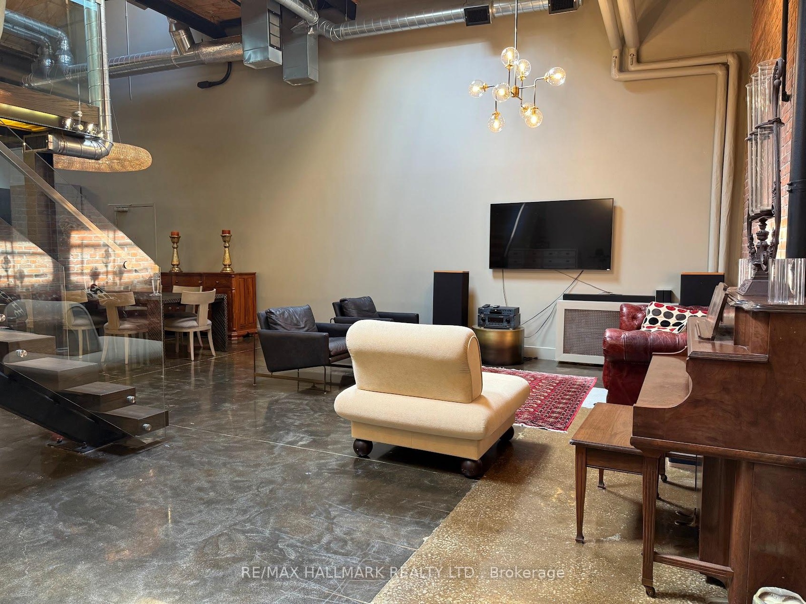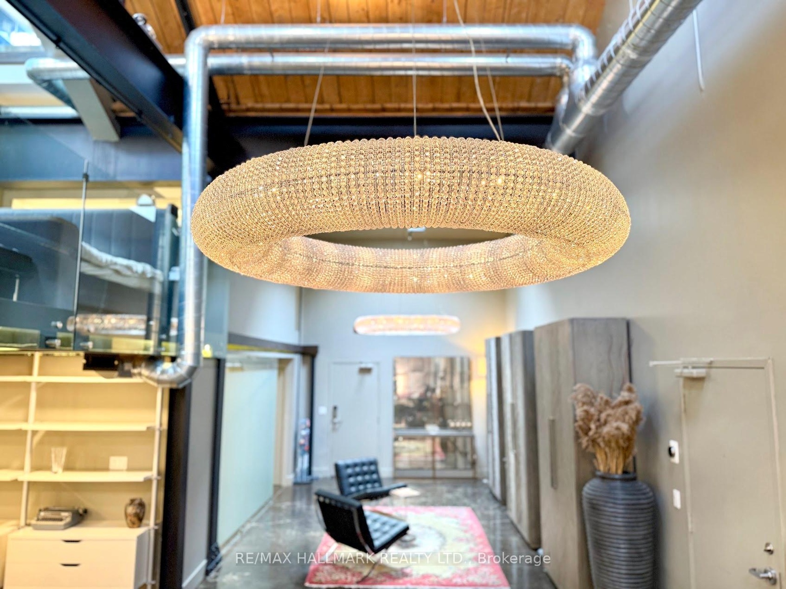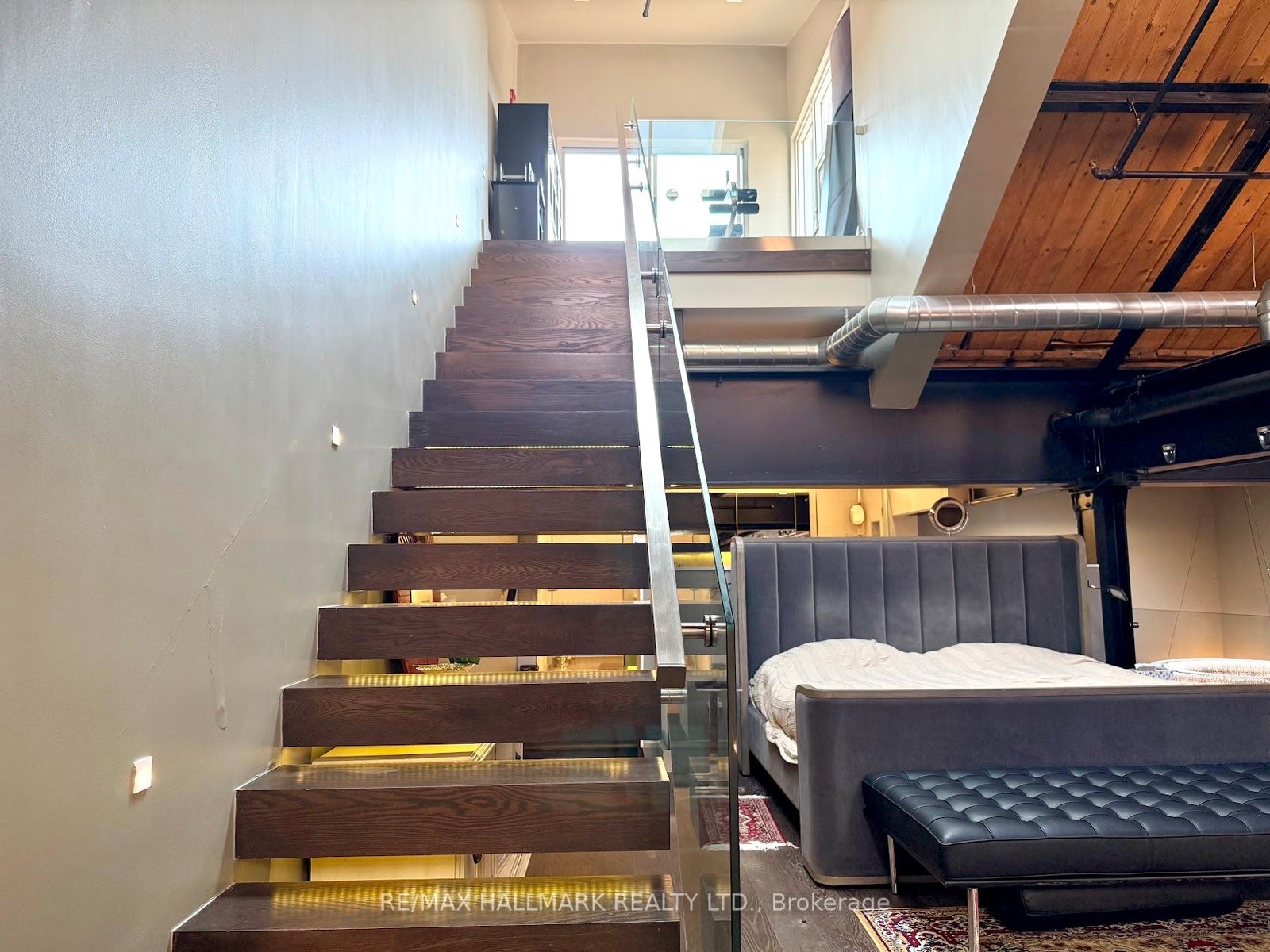 Rare opportunity to lease a fully furnished loft in Leslieville's iconic I-Zone. Offering 2,329 sq ft of living space with soaring timber & beam ceilings peaking at nearly 25 ft, exposed brick, polished concrete floors, and a private 375 sq ft rooftop terrace, this authentic hard loft is truly one-of-a-kind! The chef-inspired kitchen showcases quartz counters, oversized island, and a full suite of top-of-the-line KitchenAid appliances including large oven/stovetop, double-door fridge, wine fridge, and whisper-quiet dishwasher. The open layout flows seamlessly between dining and living spaces while skylights flood the loft with natural light. Every furnishing and finish has been thoughtfully selected: Restoration Hardware dining set, bed, storage units and mirrors, Elte armchairs and coffee tables, hand-knotted Persian rugs, solid rosewood entry chest, and crystal decanters. Essentials are all included, linens, bedding, cutlery, plates, cookware, Breville automatic toaster, Blendtec industrial blender, and Coway Airmega air purifier sized for the entire loft. Simply turn the key and enjoy immediate high-end living. The main level includes a spacious second bedroom, three-piece bath with glass shower, and expansive living areas. The upper-level primary suite offers custom closets and a spa-like six-piece ensuite. This loft comes with a dedicated private underground parking spot. Located in a vibrant, creative hub steps to Queen St Easts trendy restaurants, cafes, galleries, parks, fitness studios, and transit, with quick access to the DVP, Gardiner, and Lakeshore. A rare offering, this is loft living at its absolute best!