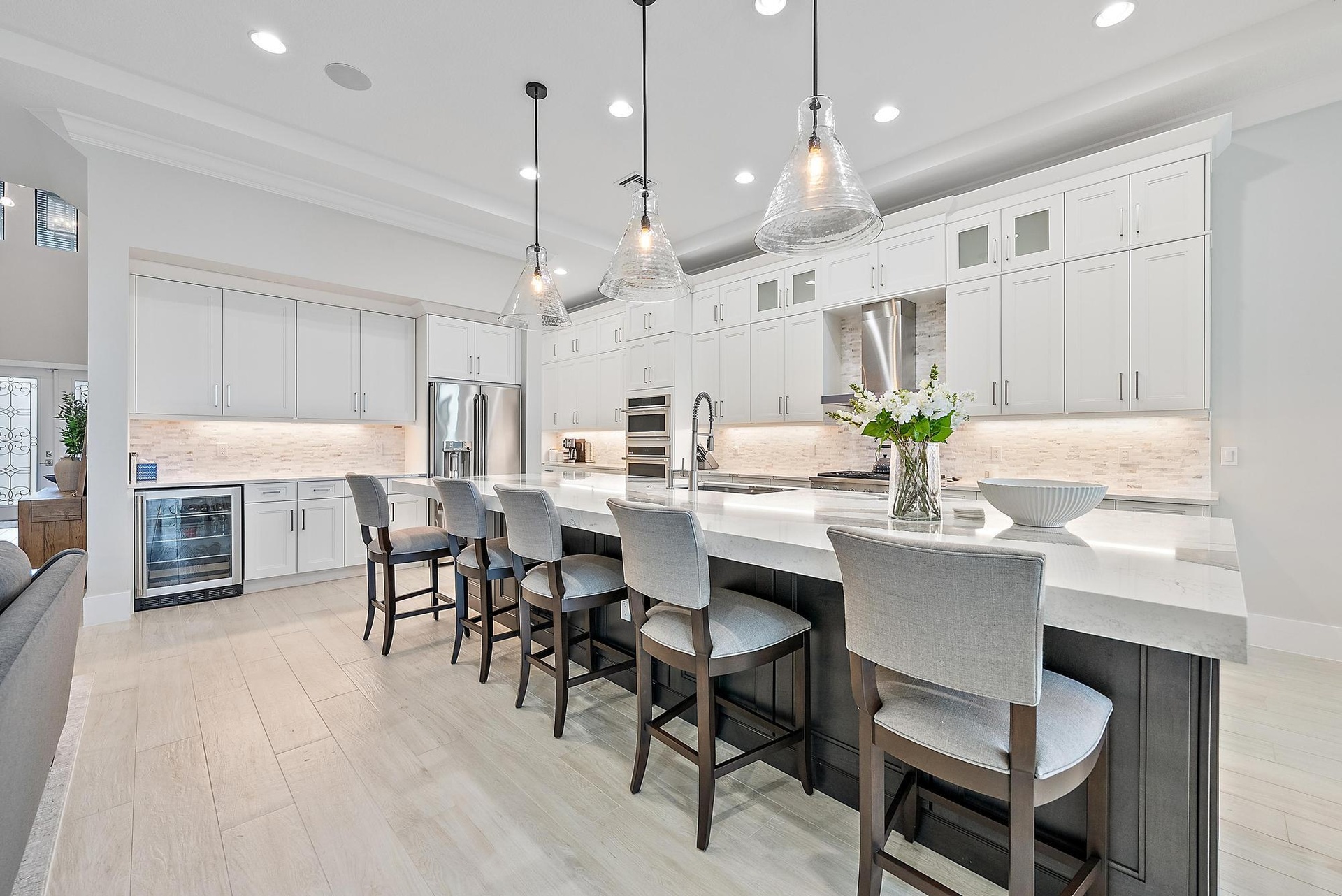 Built in 2023, this exceptional Vasari model is ideally situated on a rare long lakefront homesite, offering some of the most desirable and expansive water views in the community.