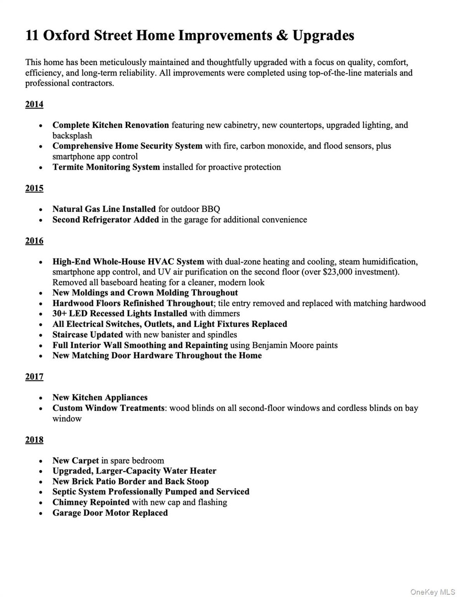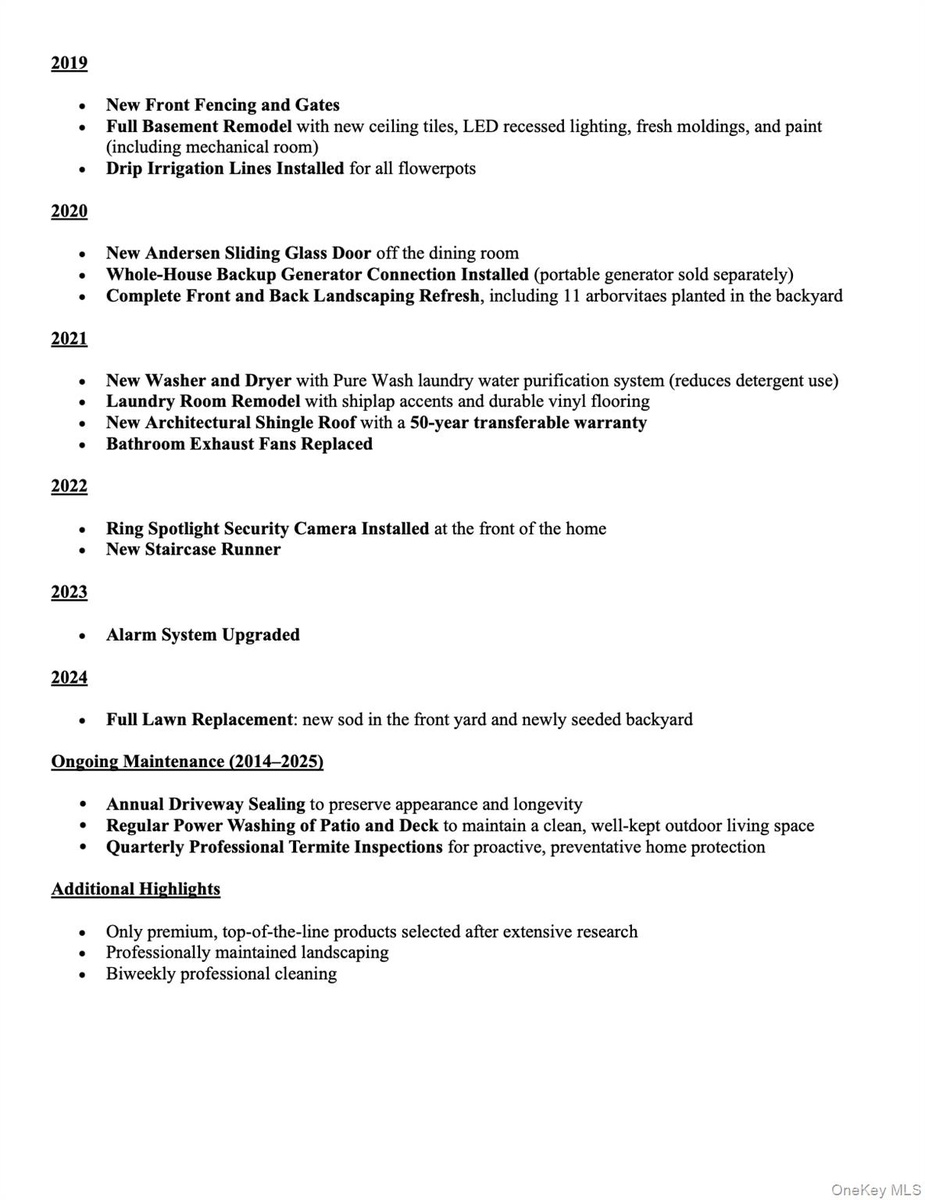 This beautifully maintained Mustapick Colonial has been extensively and thoughtfully renovated over the years, showcasing a true pride of ownership and a commitment to quality, comfort, and long-term reliability. Major upgrades include a fully renovated kitchen, high-end dual-zone HVAC system, refinished hardwood floors, updated electrical and lighting throughout, a remodeled basement, new architectural roof, whole-house generator connection, and a comprehensive smart security system. Nearly every interior surface has been refreshed, from moldings and doors to smooth walls and designer finishes, while the exterior features refreshed landscaping, patio improvements, fencing, and new lawn. All work was completed by professional contractors using premium, top-of-the-line materials, making this home truly move-in ready with peace of mind for years to come.