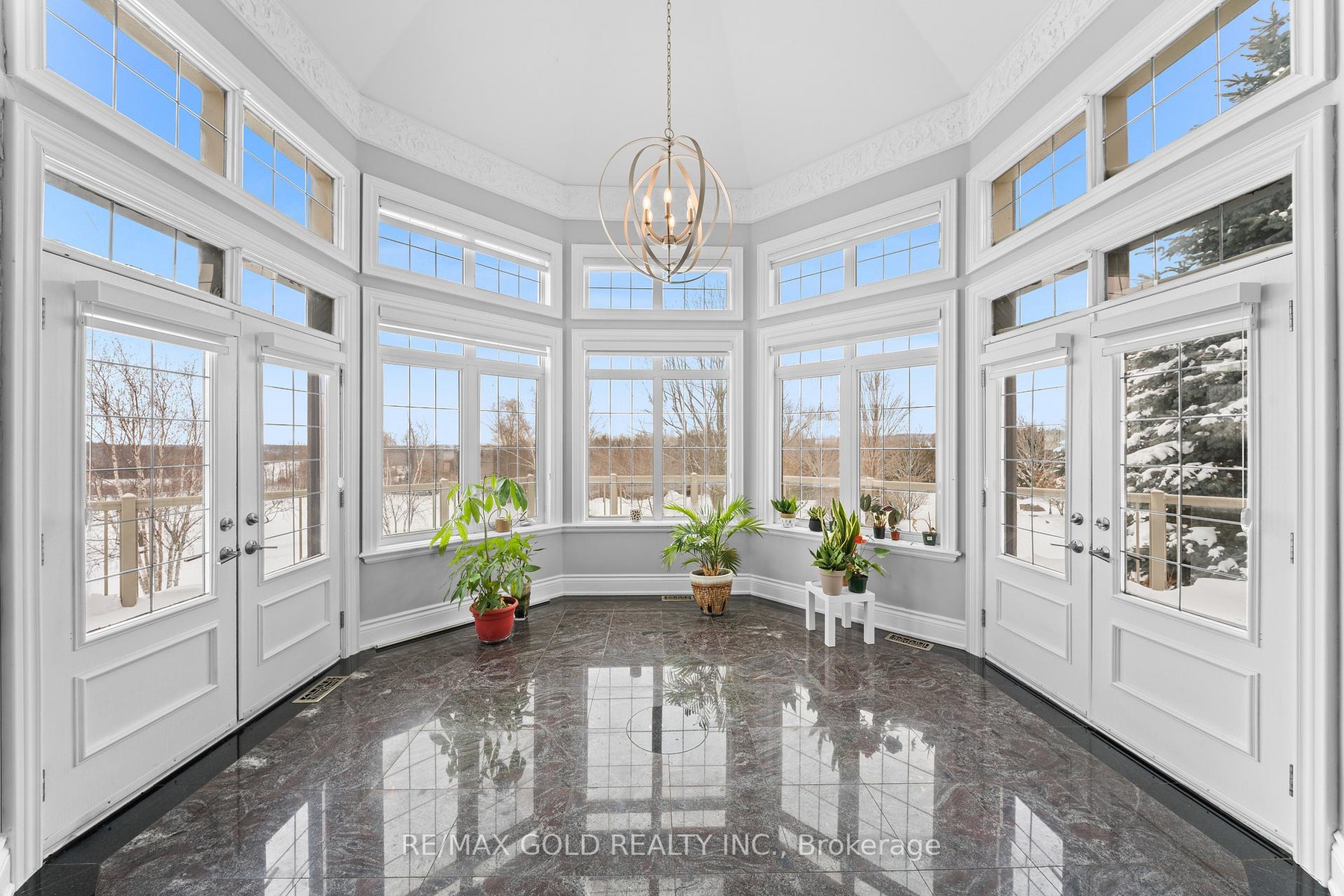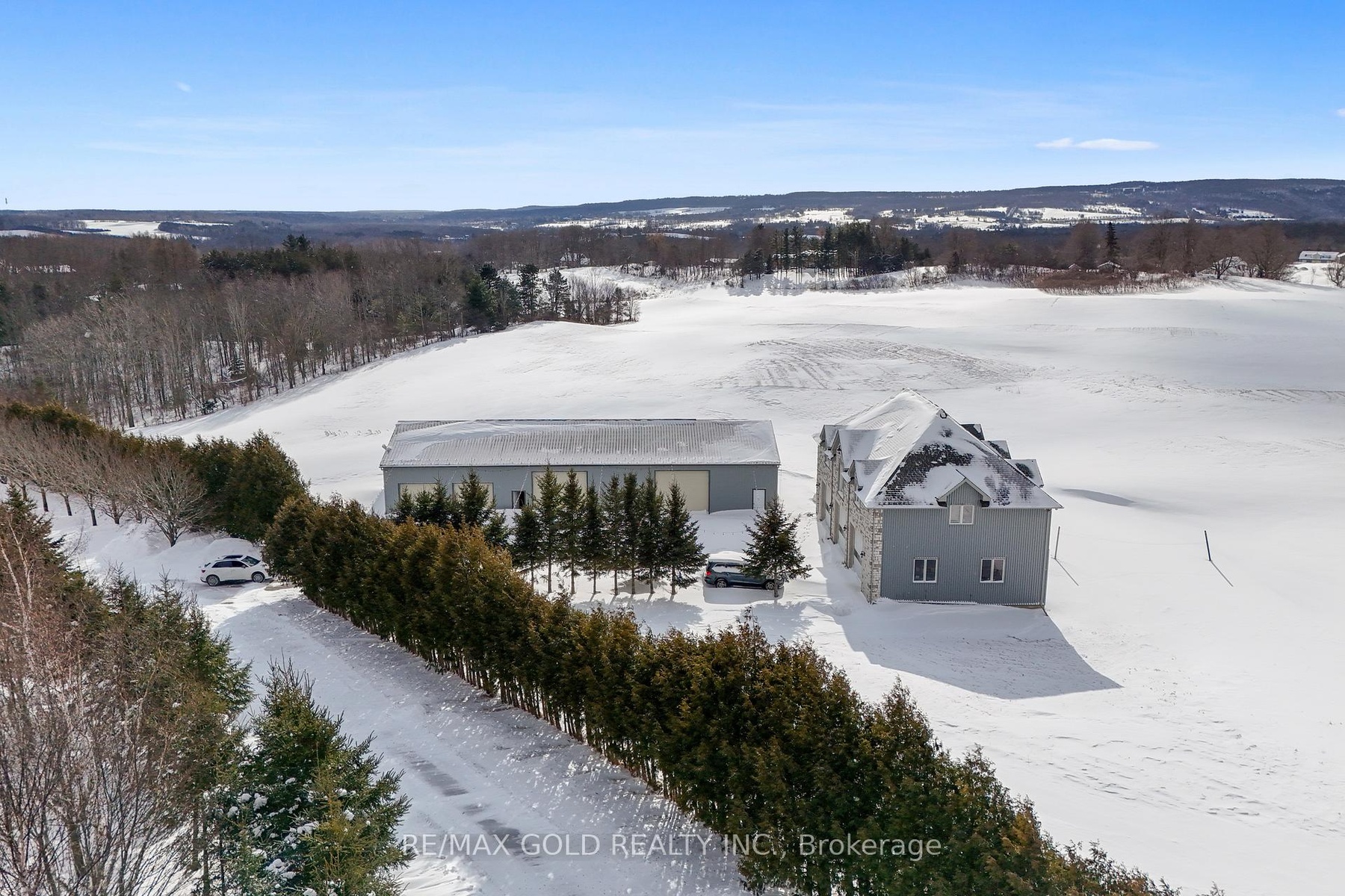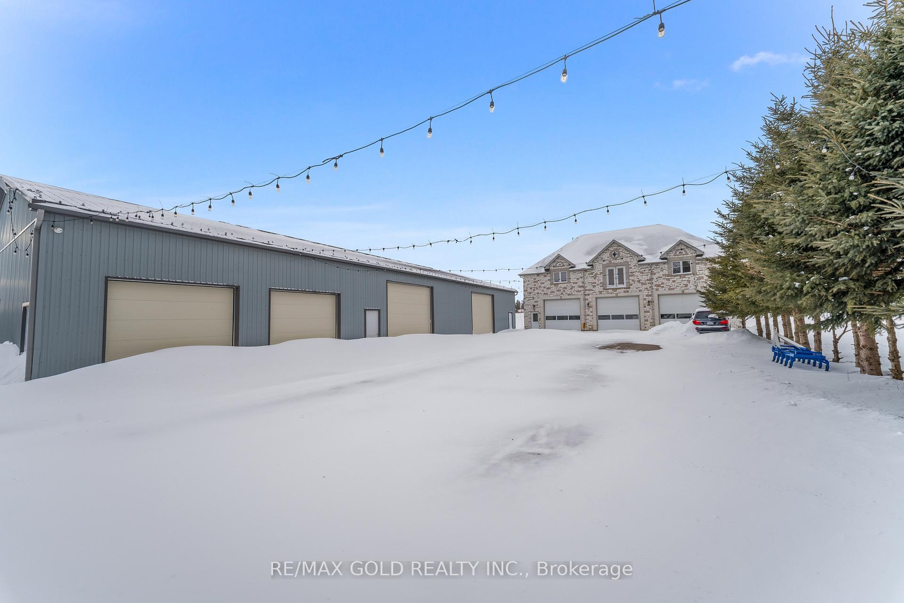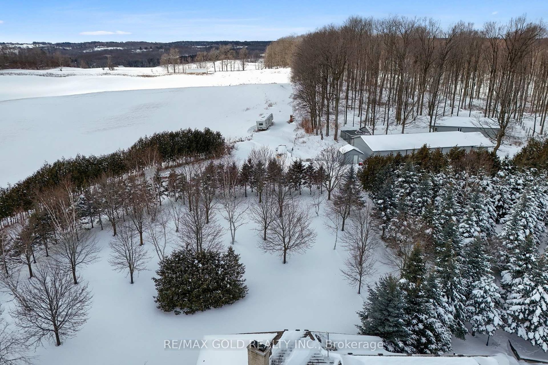 Welcome to 3722 The Grange Side Road, an exceptional 84-acre country estate offering a rare blend of privacy, natural beauty, and outstanding versatility. A long, tree-lined driveway winds through picturesque farmland, leading to an impressive natural stone bungalow perfectly positioned to capture sweeping rural views. The property comprises approximately 84 acres, including about 55 workable acres of gently rolling land, complemented by a tranquil pond near the entrance. This setting is ideal for agriculture, a home-based business, or multigenerational living. The main residence showcases quality craftsmanship with spacious, well-appointed interiors and a flexible layout offering three potential living areas, making it well suited for extended family arrangements or adaptable use. A standout feature is the detached stone-fronted, steel-clad workshop/garage, complete with three oversized 12-foot bay doors, a full four-piece bathroom, and an expansive 2,200 sq ft upper-level loft featuring three additional bedrooms and two bathrooms. An additional steel garage with four oversized doors and a secondary workshop/shed further enhance the property's functionality. Whether you are an entrepreneur seeking space for a business, a hobbyist requiring ample storage, or a family looking for room to grow, this estate offers unmatched flexibility. The land presents endless opportunities for farming, recreation, or future expansion. Set in a peaceful rural location while remaining within a convenient drive to nearby towns and amenities, this is a truly signature property that seamlessly combines natural beauty with practical, adaptable living.