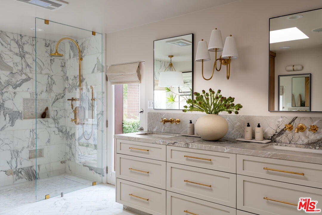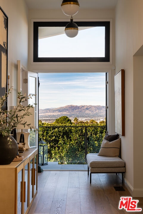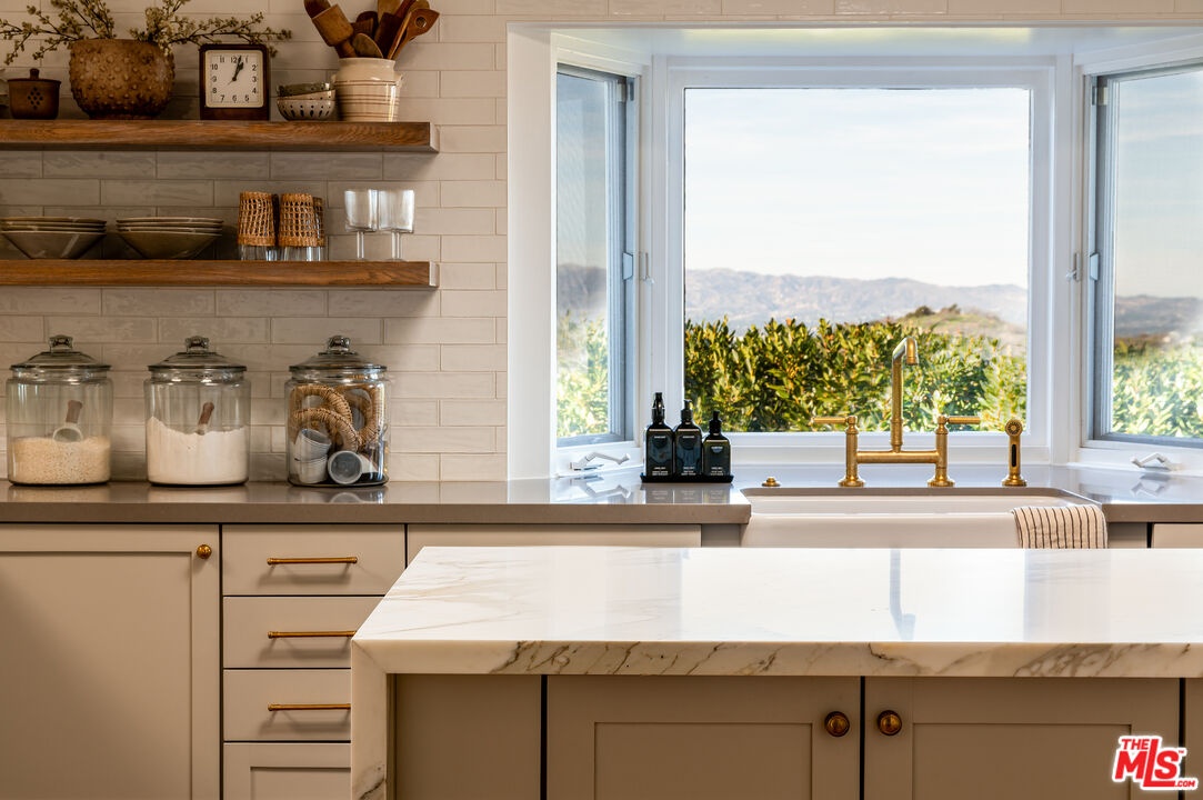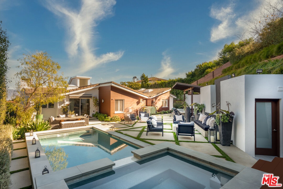 Tucked behind the gates of The Summit, one of Beverly Hills Post Office's most exclusive enclaves, this quietly spectacular residence feels like a private resort perched above the city. Thoughtfully redesigned with an eye toward serenity and elevated California living, the home unfolds with soft natural light, generous scale, and seamless indoor-outdoor connection. The main living spaces capture panoramic canyon views, drawing your eye across treetops and evening sunsets. A soothing palette of warm woods, layered textures, and sculptural lighting creates an atmosphere that is both refined and deeply inviting. The kitchen, bright, airy, and beautifully appointed, features Calacatta Gold marble counters, unlacquered brass hardware from Rejuvenation, open shelving, and a sun-washed dining nook. It's a space that celebrates the simple joy of gathering, cooking, and lingering. The backyard is its own sanctuary: a resort-style pool framed by lush landscaping, multiple lounge terraces, and intimate moments of designcascading greenery, and a tree canopy draped in twinkle lights. It's a setting that feels worlds away, perfect for long summer afternoons or hosting unforgettable evenings. The private rooms continue the sense of calm. The spacious primary suite features vaulted, beamed ceilings, garden views, and a cozy sitting area that turns morning coffee into a ritual. A moody, bespoke office offers an entirely different energytailored, architectural, and ideal for focus. Every corner of this home has been considered. Every sightline curated. And every space designed to reflect what life in The Summit is meant to be: elevated, peaceful, timeless.A rare opportunity to own a residence that balances luxury with livabilityhigh design with heart.