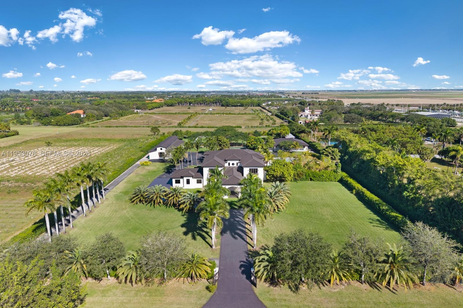 A distinguished five-acre estate offering an exceptional level of privacy, security, and space within Lindbergh’s Landing, a private, gated aviation and equestrian community. Designed for those who value discretion and tranquility, the property offers private aircraft and helicopter access via its own grass runway—an exceedingly rare amenity in South Florida. Thoughtfully positioned within this quiet and peaceful enclave, the estate provides a serene, highly secure environment with complete separation from neighboring properties. The approximately 10,000-square-foot main residence and 2,300-square-foot guest house have been comprehensively renovated with refined, contemporary finishes and are presented in impeccable, move-in-ready condition. The grounds are gracefully composed and newly enhanced with horse stables and a private spa, in addition to two pools, a racquetball court, a basketball court, and expansive manicured green space, allowing for both private recreation and future personalization. The scale, layout, and security of the property lend themselves naturally to a private family compound or a secluded retreat. Situated approximately 30 miles west of Downtown Miami, this exceptional offering is ideally suited for the discerning buyer who demands uncompromising privacy, security, and space in a quiet, serene setting, while remaining within reach of the city.