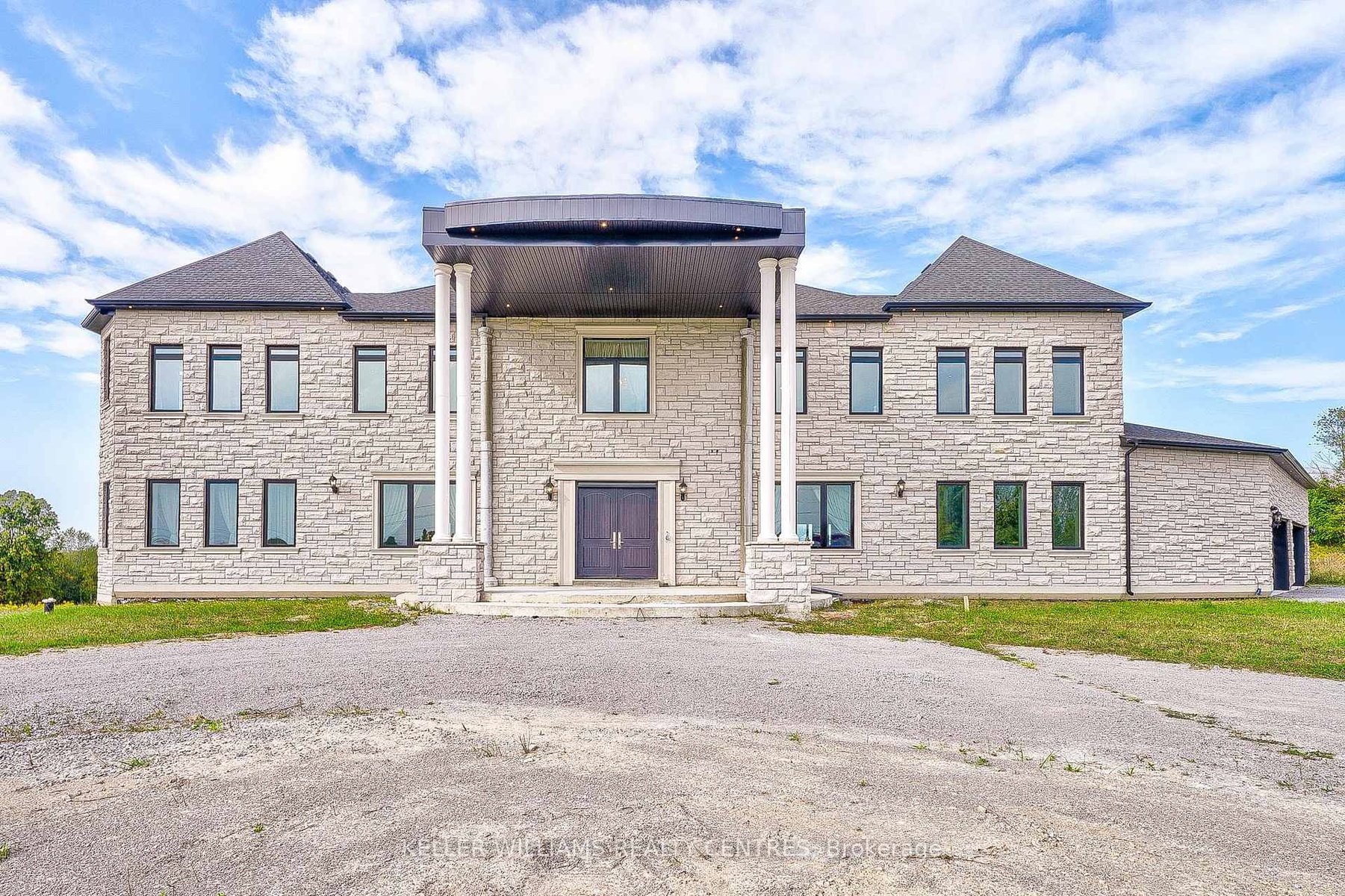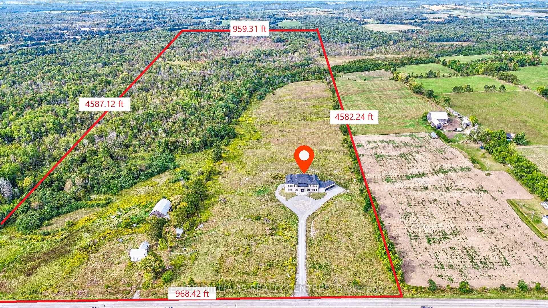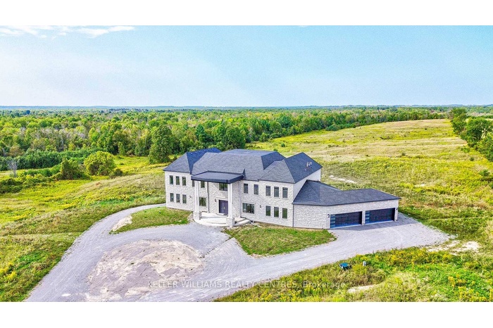 Enjoy Countryside living on this gorgeous 100 acres of gently rolling hills. Nestled in the lovely Hamlet of Brown Hill, with southern exposure & superb panoramic hilltop views. Conveniently located to Keswick, Sutton & just minutes to HWY 404. This unique opportunity offers 2 homes including a 5 year new 9400 Sq' ft custom built Stone & Brick 17 room residence set far from the road with a long circular driveway leading to the main entry & 4 car garage; a separate Century Home circa 1870 (needs reno) which could be perfect for extended family, staff or a potential rental income & a Large Barn & Drive Shed that provides plenty of room for storage, equipment or hobbies. Inside, the open concept design includes expansive living areas, 11' pot lit ceilings, large bright windows that overlook the surrounding country side & a mix of 2 x 4 ceramic tiles & hardwood floors throughout. The impressive kitchen is well suited for those who love to cook, featuring a 9' x 5' center island, Quartz countertops & backsplash, 2 full sinks, abundant cupboard space, pantries & a Juliette Balcony. The alternate entry from the 4 car garage leads to a spacious utility area offering main level laundry facilities, a separate shower & extra Pantry storage all with a separate entry to the side yard. The 6 grand bedrooms, one of which is on the main level feature generous private retreats for everyone, personal ensuite baths, hardwood floors, 11' Pot lit Ceilings & large spacious Walk-in closets. Additional laundry & utility rooms are on the second floor with a rough in elevator available to all 3 levels. The custom floating staircase leads to a bright open walkout lower level that is waiting for you to unleash your imagination & personalize its finishing. This property is perfect for those seeking privacy & space in a scenic country setting.