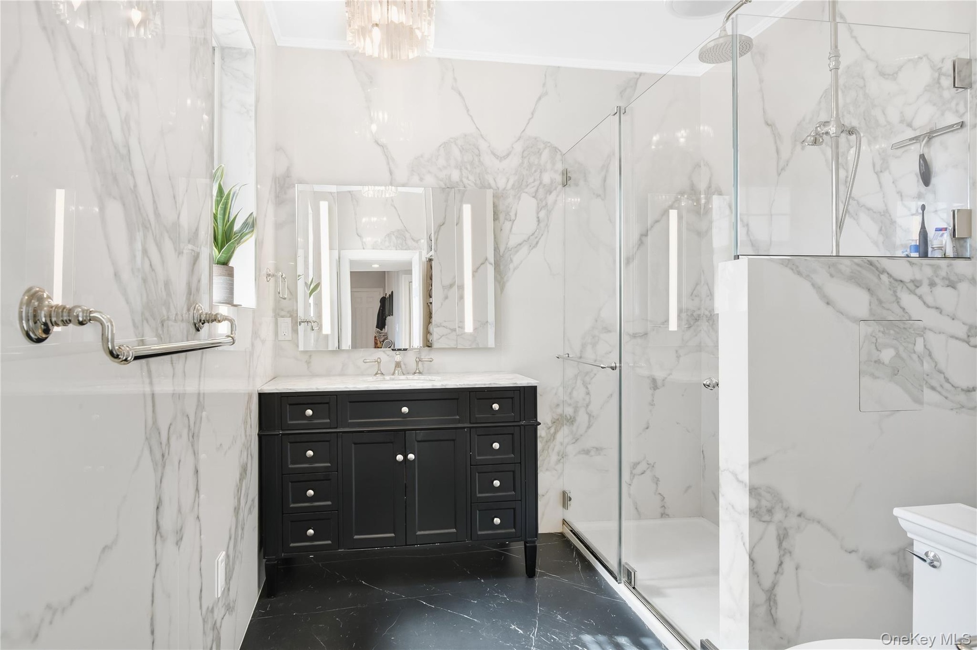 Welcome to this beautifully designed first-floor rental home in a timeless Victorian architecture, where classic charm meets modern luxury. Meticulously crafted for comfort and style, this residence offers an exceptional living experience with no expense spared. Step inside the elegant foyer which welcomes you with snow-white marble flooring, offering a striking first impression.The home features a grand, custom-built kitchen equipped with top-of-the-line stainless steel appliances which includes a stove, refrigerator, dishwasher, washer and dryer, complemented by a farmhouse sink and custom designed cabinetry with ample drawers and storage. The kitchen has an array of natural light from the large windows, and beautiful lighting fixtures to complement the space.