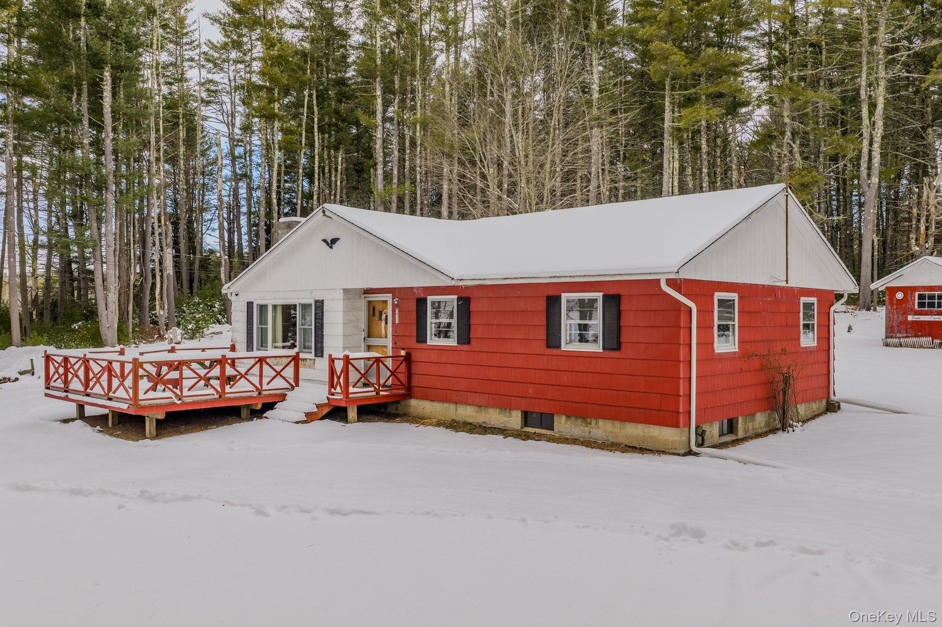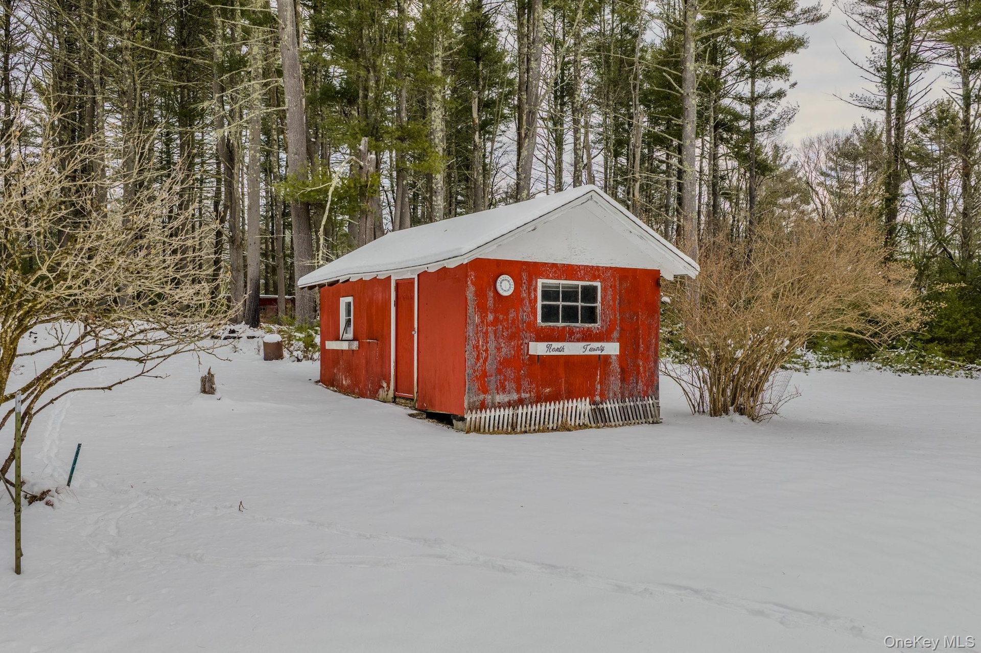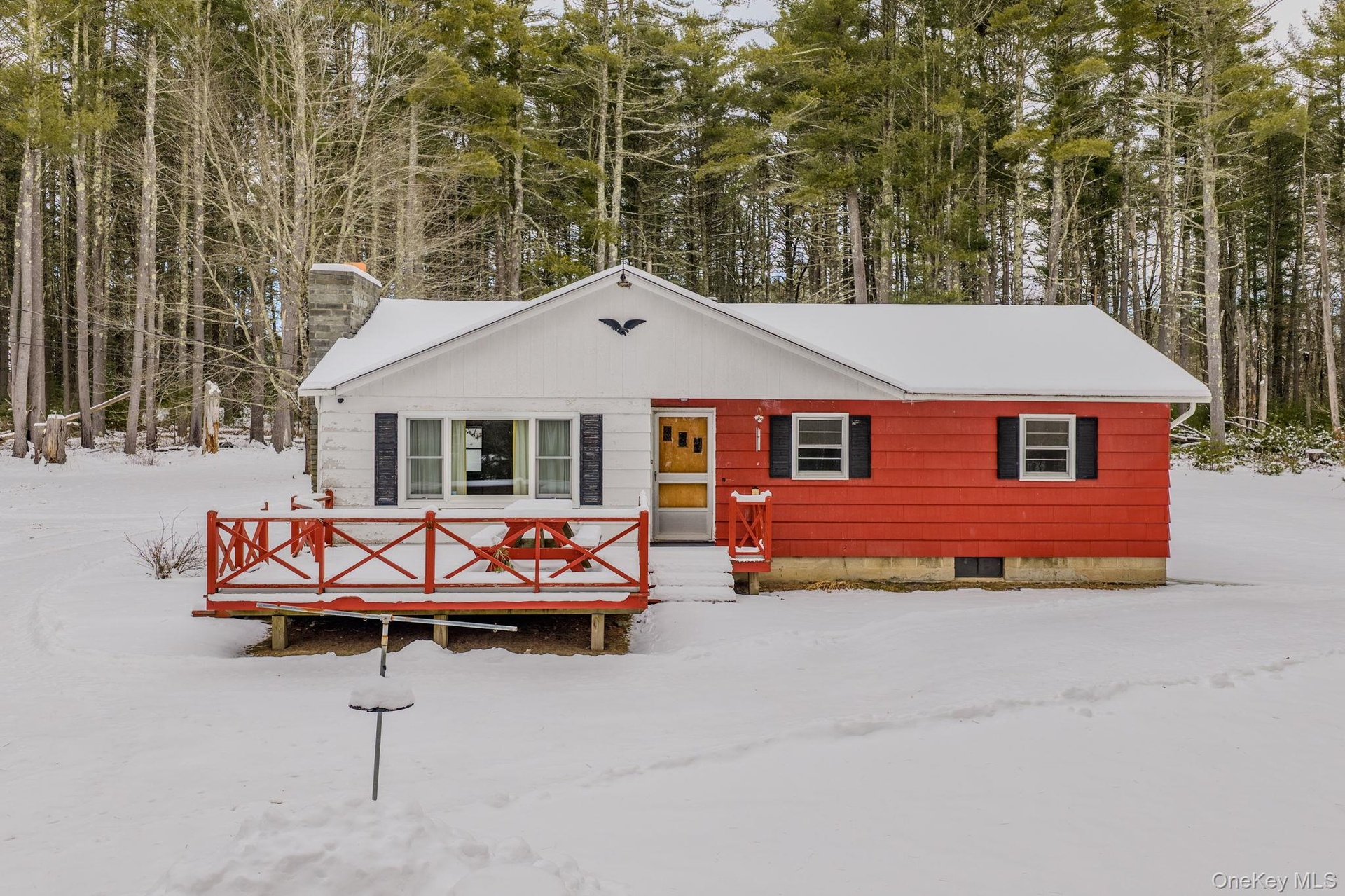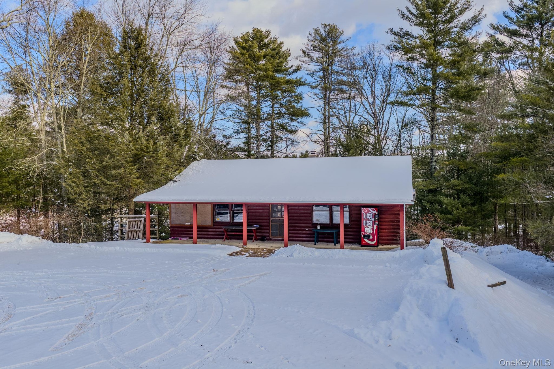 Continue along Route 42 to discover the long, wraparound driveway leading to the quaint 1,100 sq ft ranch-style home, built in the late 1960s and well cared for throughout the years. The covered back porch offers a private, peaceful view of the forest and leads into a charming kitchen with classic 1970s flair. The main front entrance welcomes you onto an oversized deck with picturesque views of the pond just to the left of the home. Inside, the home features hardwood floors throughout, a bright new picture window in the living room, and two stone-faced fireplaces with wood-burning stove inserts—one on the main level and one in the basement—perfect for supplementing the oil heat. The layout includes three bedrooms and one full bath, ready to be revitalized with light cosmetic updates. A full walk-out basement houses the washer and dryer and includes roughed-in plumbing for a future bathroom. The pond gently separates the residence from the store at the road, yet a carefully carved woodland path winds around the pond, offering a scenic, tranquil walk. An additional outdoor shed provides the perfect space for gardening tools, hobby storage, or the exciting possibility of a future chicken coop for those dreaming of a more self-sufficient lifestyle. The potential here is truly endless—an upstate retreat with income-producing possibilities, a small business owner’s dream with a short walk to work, or a private compound surrounded by nature. While the setting feels secluded and peaceful, the location is prime: just a 15 minute drive to the nearest town with access to a train to NYC. Beyond the property, enjoy everything the Catskills and Hudson Valley have to offer, including the Delaware and Neversink Rivers, wineries and distilleries, hiking and biking trails, dining and specialty shops, Bethel Woods Arts Center, and so much more. If you’re ready to slow down, spread out, and settle into a place that supports both lifestyle and opportunity, 1124 NY-Route 42 is waiting to welcome its next chapter.