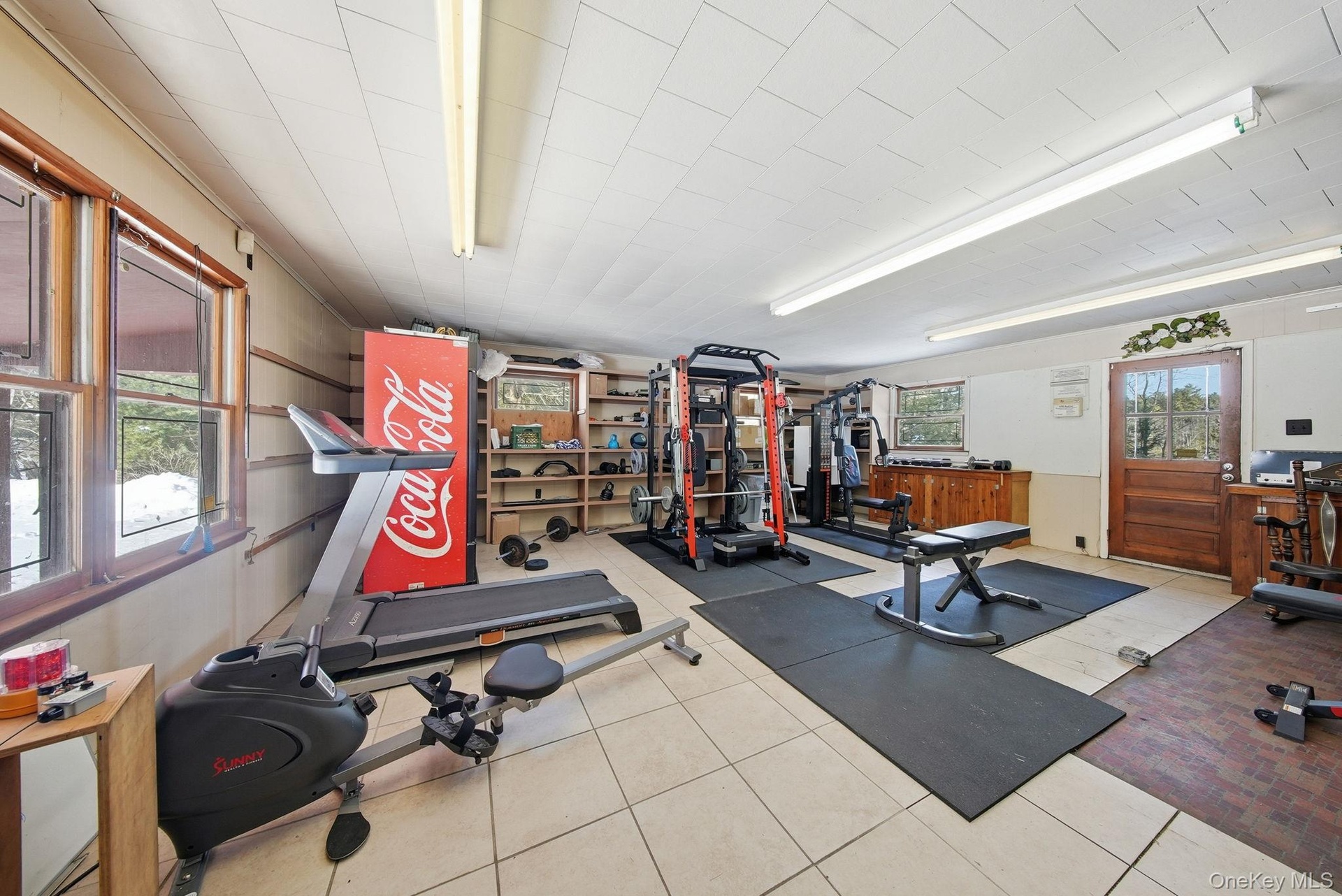 A Once-in-a-Generation Opportunity on Nearly 25 Acres in Sparrowbush, NY - Family-owned and lovingly developed over generations, this remarkable nearly 25-acre property is a rare offering—one that blends history, privacy, natural beauty, and endless possibility. Once a dream come true lifestyle for its owners, the land features a large pond at the front of the property, a peaceful stream bordering the rear, and mature trees that have been thoughtfully pruned and manicured over the years. The result is an open, welcoming front and backyard, while the surrounding acreage provides a serene, private nature retreat. Fronting NY-Route 42, the first feature you’ll encounter is a 1,000 sq ft commercial building, historically operated as a thriving general store for many years. Though not currently in operation, this building is brimming with potential. It includes its own parking lot, a cozy covered front patio, a basement level with garage access and ample storage, a full bathroom, and an industrial kitchen. The building is equipped with separate electric, heating, well, and septic systems from the residence, allowing for flexibility and independence. Whether you envision reopening a general store, creating a studio, office, cafe, or pursuing another business or creative venture, this space offers a unique opportunity with just a little TLC.
